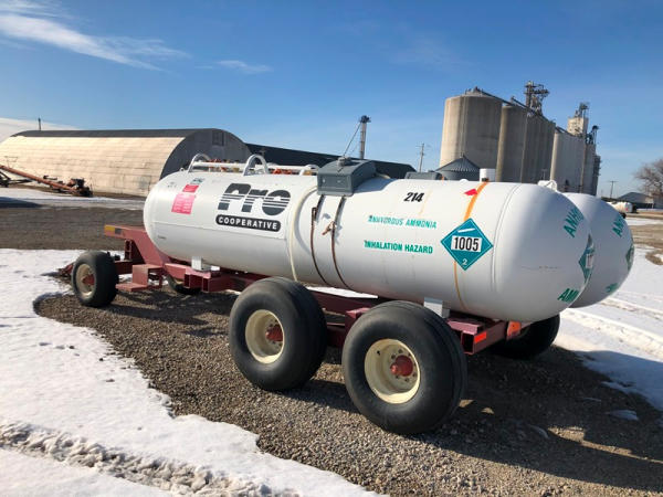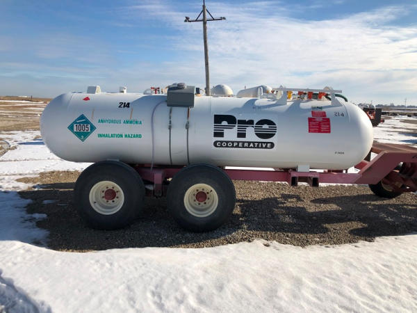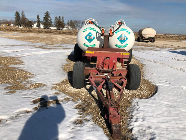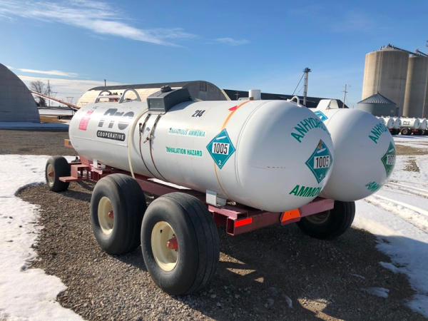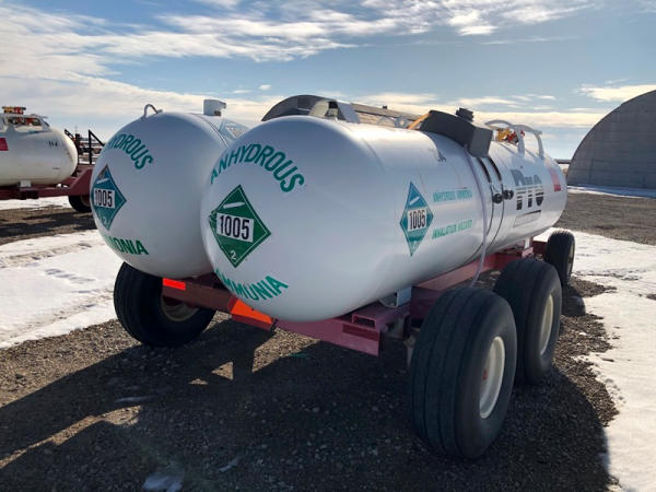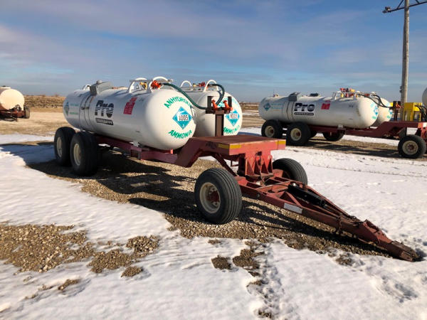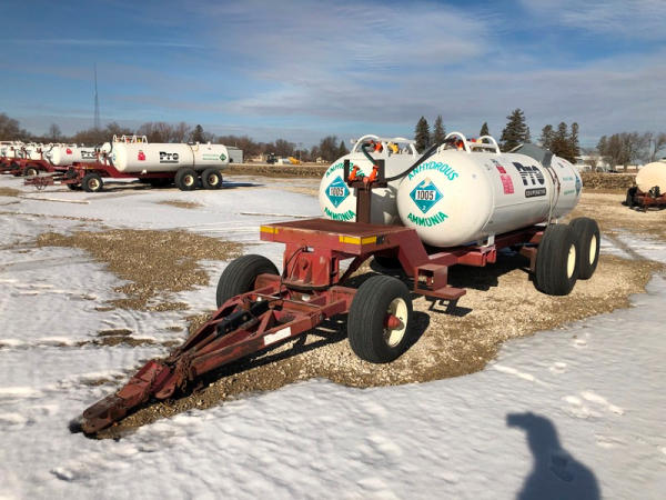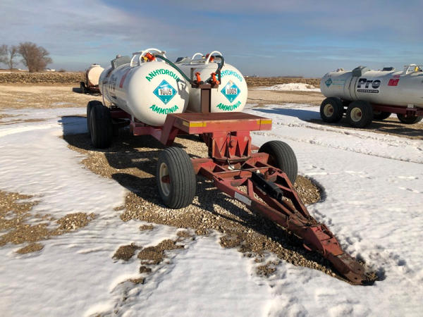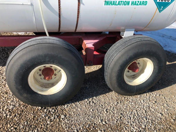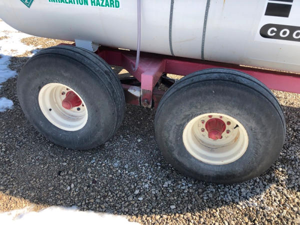 Double NH3 Nurse Tanks (NP1404, Unit 214), (2) 1,000 gallon NH3 nurse tanks, top front fill, water tanks, Tank 1 - NTIP No: 148333, data plate, Tank 2 - NTIP No: 148337, data plate, Dalton Ag WNDT1000 6 wheel running gear (S/N 0390), 11L-15 front tires, 14L-16.1 rear tires.