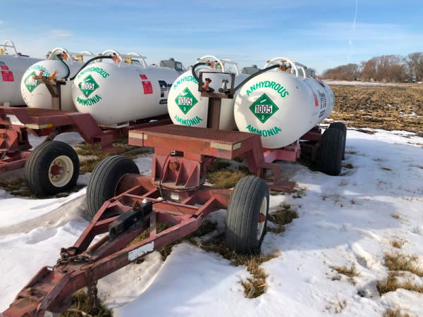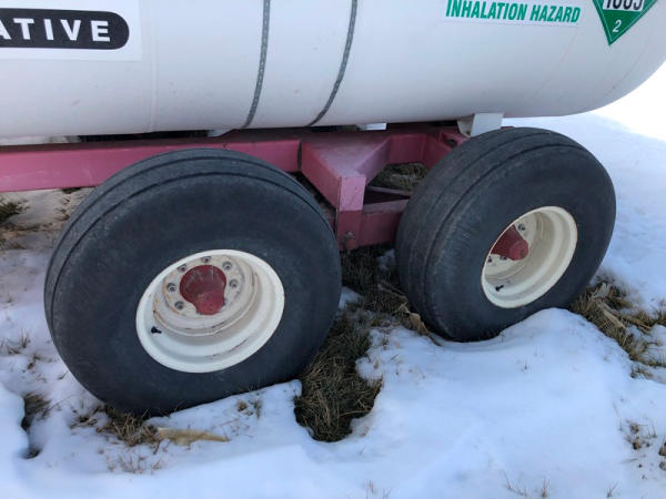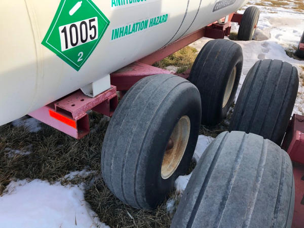 Double NH3 Nurse Tanks (NP1409, Unit 228), (2) 1,000 gallon NH3 nurse tanks, top front fill, water tanks, Tank 1 - NTIP No: 148276, NO data plate, Tank 2 - NTIP No: 148253, data plate, Dalton Ag WNDT1000 6 wheel running gear (S/N 0396), 11L-15 front tires, 14L-16.1 rear tires.
