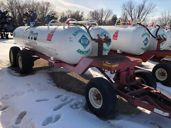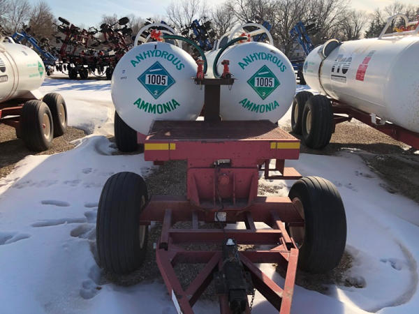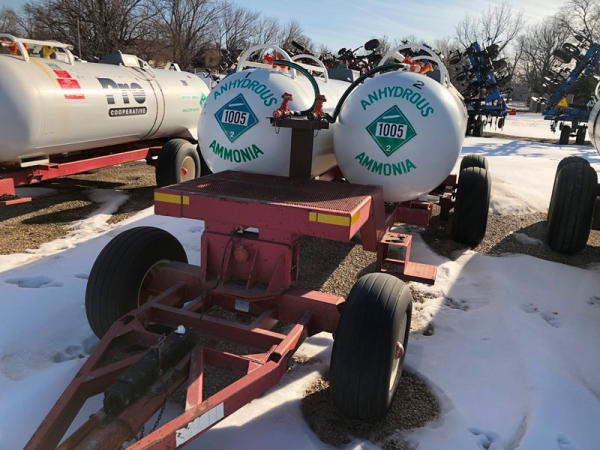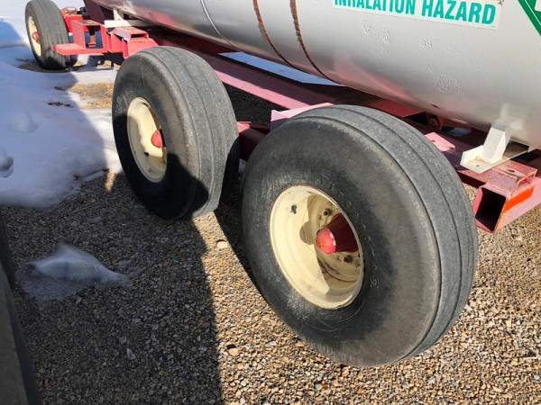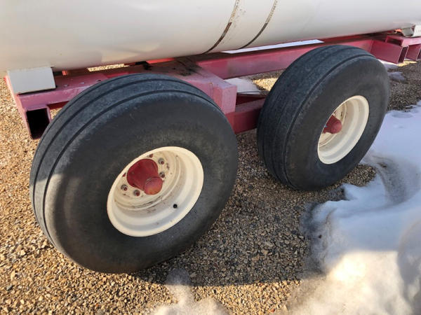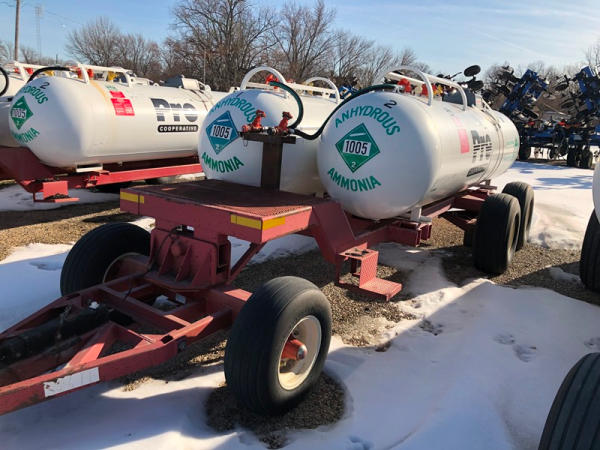 Double NH3 Nurse Tanks (NP1417, Unit 268), (2) 1,000 gallon NH3 nurse tanks, top front fill, water tanks, Tank 1 - NTIP No: 148297, data plate, Tank 2 - NTIP No: 148298, data plate, Dalton Ag WNDT1000 6 wheel running gear (S/N 101825), 11L-15 front tires, 14L-16.1 rear tires.