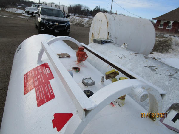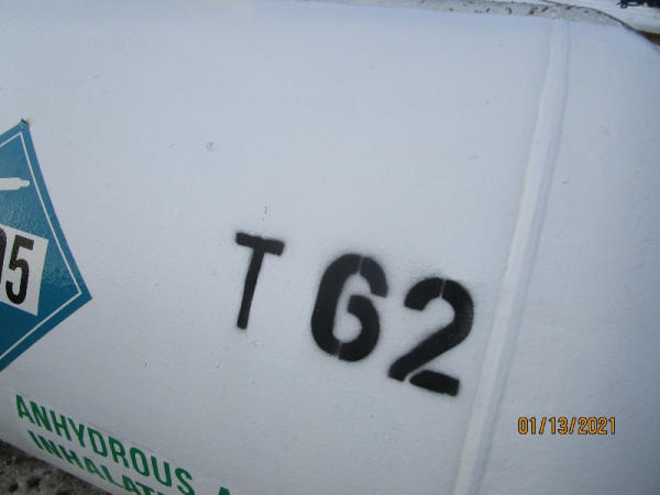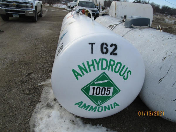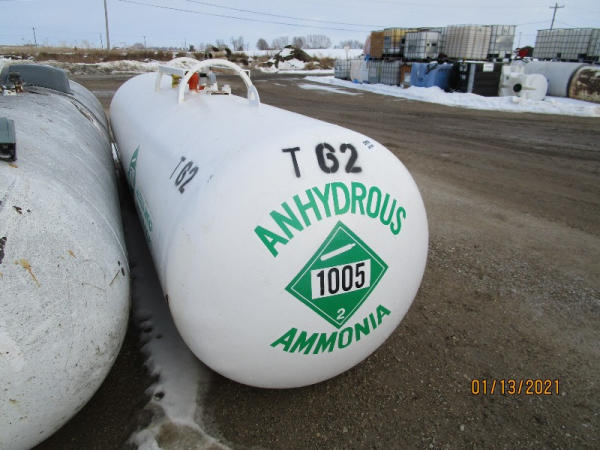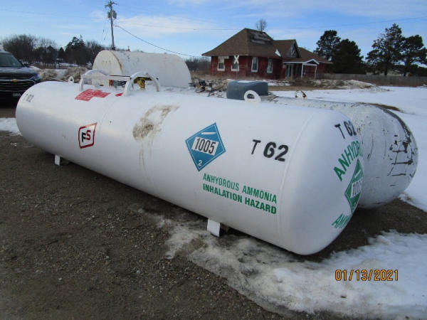 NH3 Tank (DR7589, Unit T62), 1000 gallon NH3 tank, center fill, data plate.