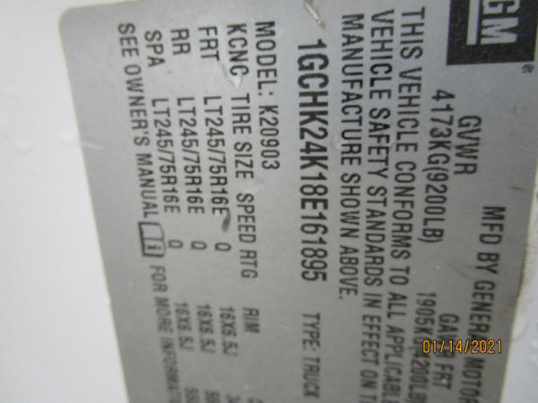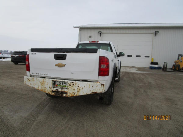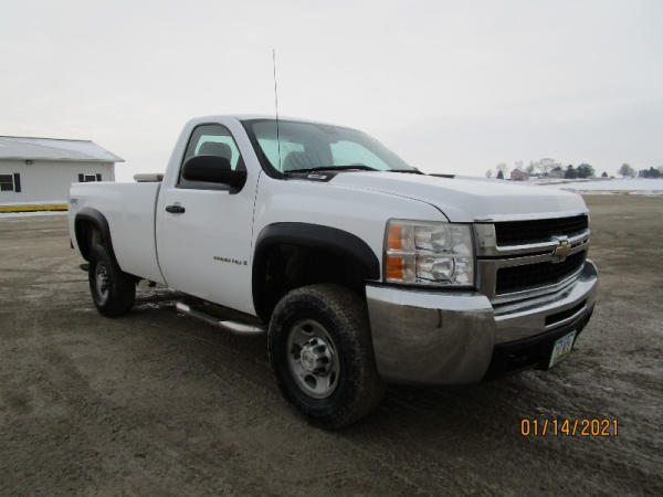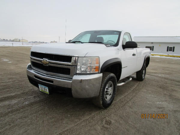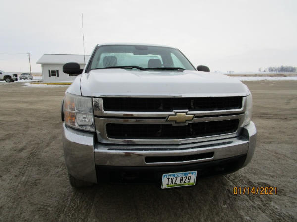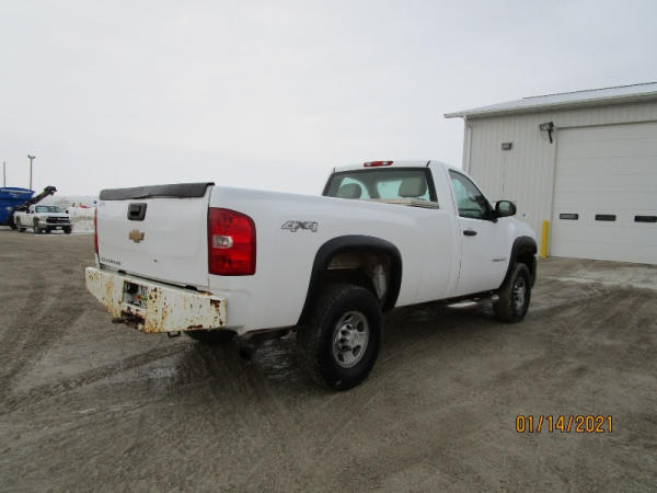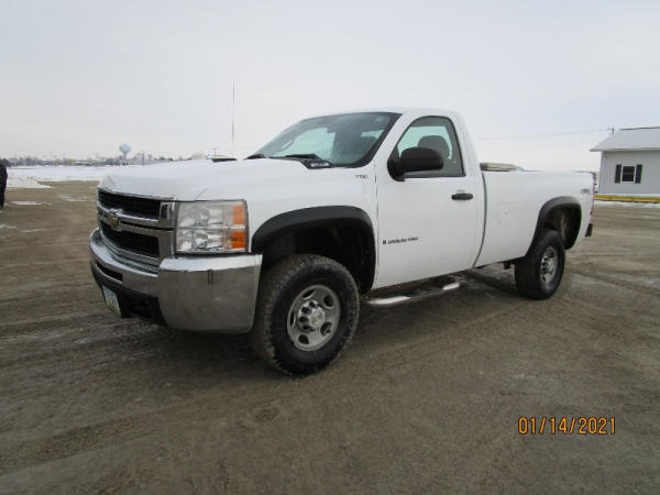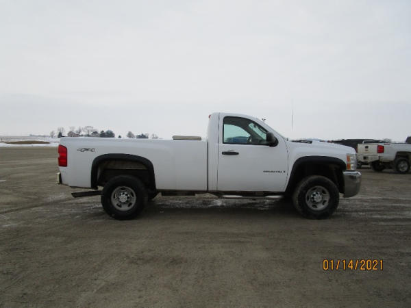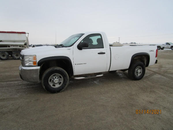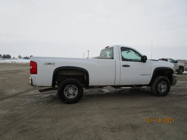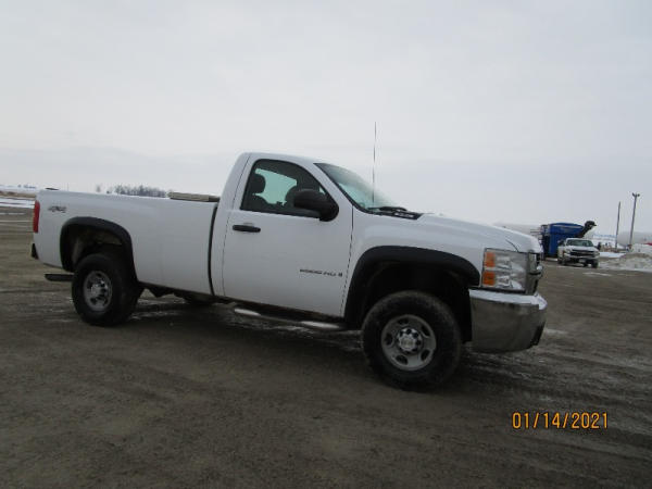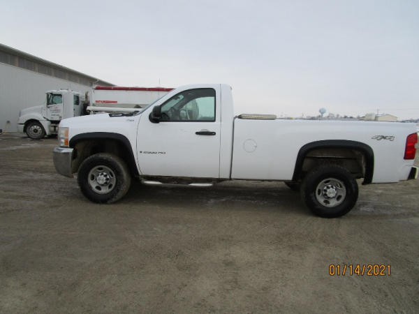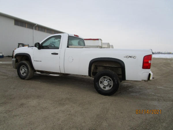 2008 Chevrolet 2500HD Pickup (DR7605, Unit 179081), 4x4, Vortec gas engine, automatic transmission, air conditioning, heat, Am/Fm CD radio, cruise control, running boards, rear hitch, LT265/75R16 tires, shows 176,553 miles.