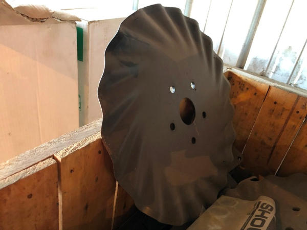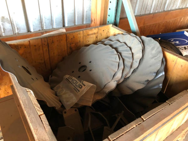 Coulters/Brackets (NP1391), box of approx. 16" ribbed coulters and brackets.