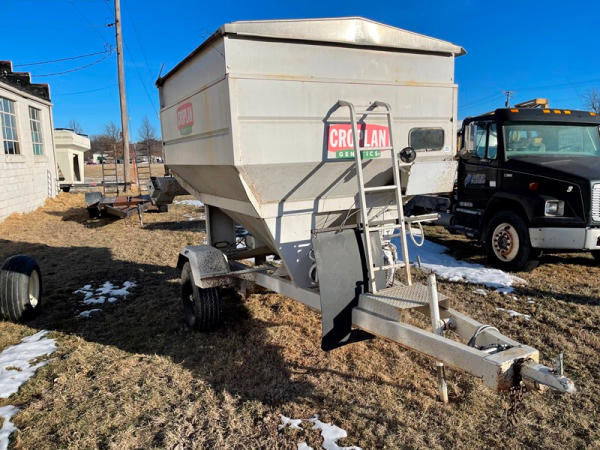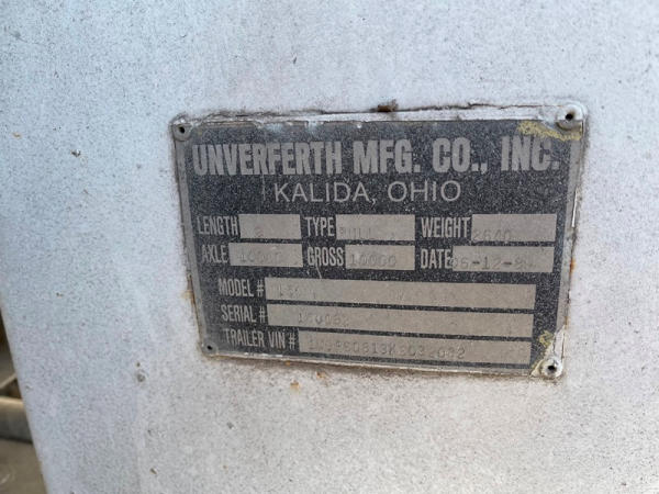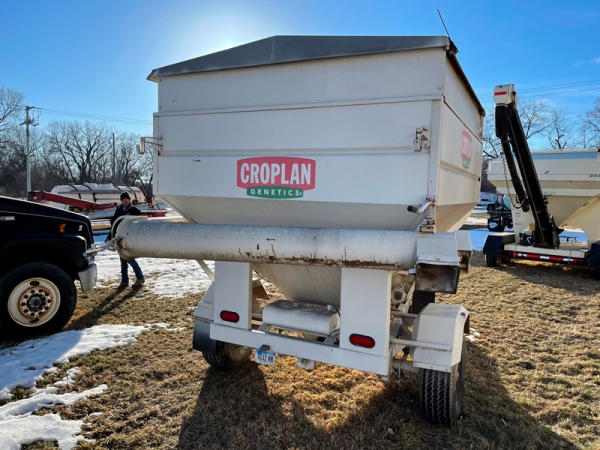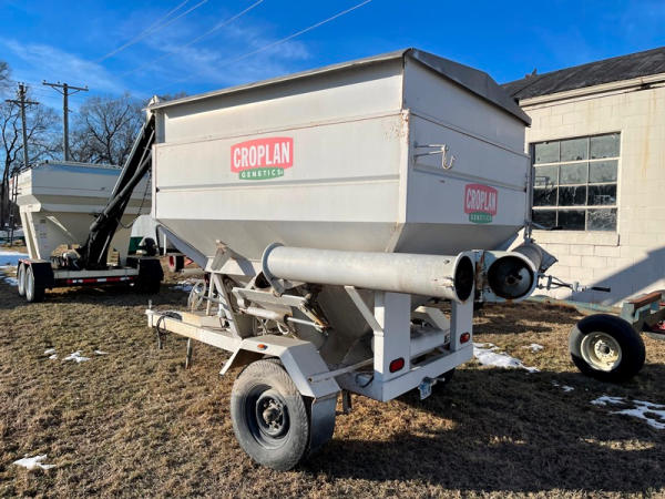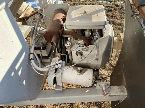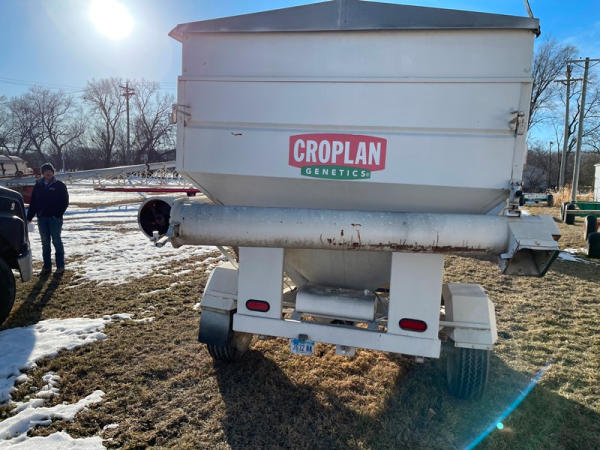 1989 Unverferth Weigh Wagon (DPA0526), 1989 Unverferth model 150 weigh wagon, side discharge auger, gas engine, single axle, 9.50-16.5 tires.