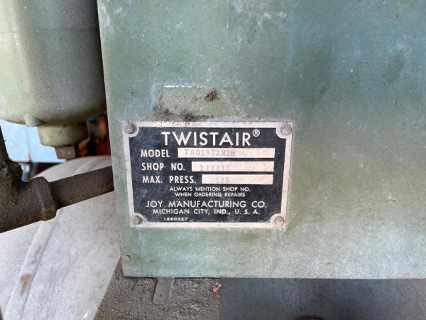 Air Compressor (DPA0506), Twistair model TA015TAN2B air compressor, shows 836 hours.