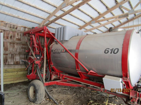 CaseIH Liquid System (DR7562), CaseIH 1800 gallon stainless steel liquid system, missing boom on one side, top poly rinse tank.