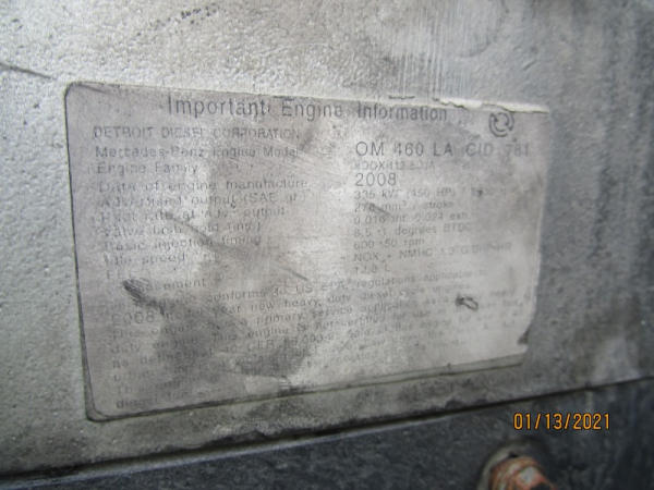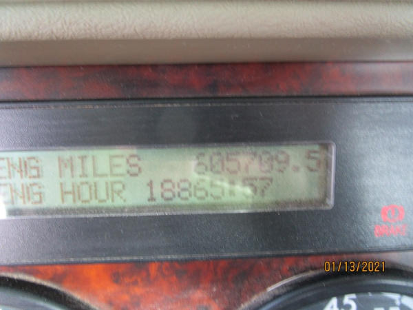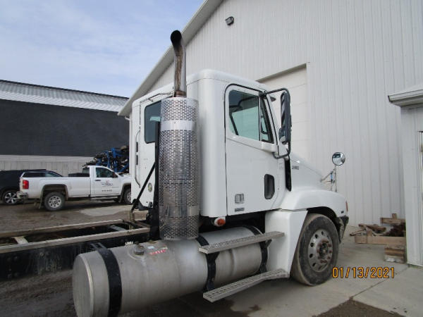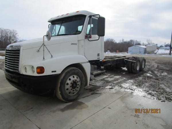 2009 Freightliner Century Class Truck (DR7557, Unit 289092), Mercedes - Benz diesel engine, Eaton Fuller 10 speed transmission, air conditioning, heat, Am/Fm CD radio, cruise control, engine brake, tandem axle, full screw, air ride suspension, 11R22.5 tires, shows 605,709 miles.