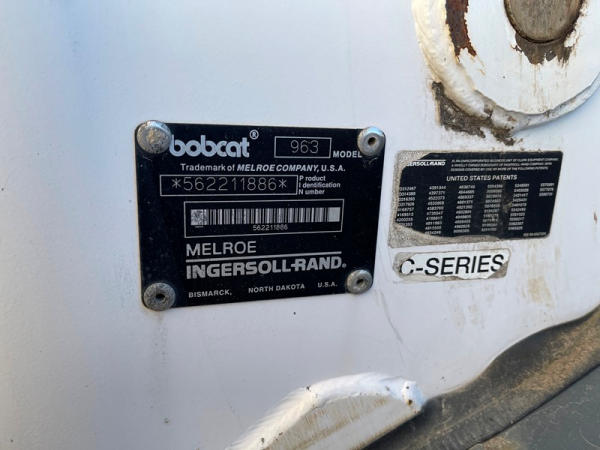 Bobcat 963 Skid Steer (DPA0516), diesel engine, hydrostatic transmission, canopy, lights, NO bucket, 14-17.5 tires.