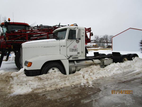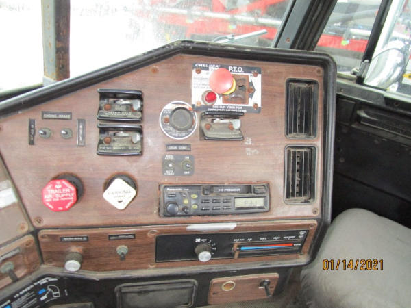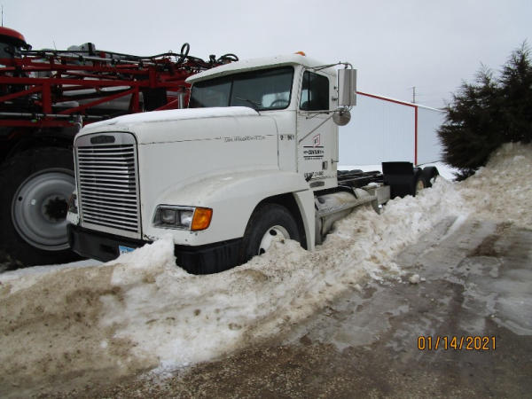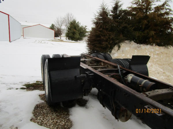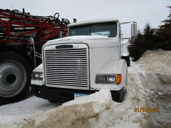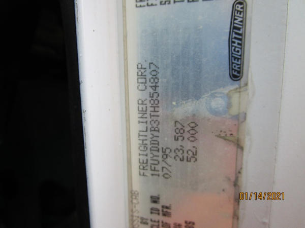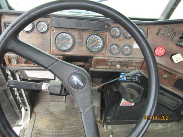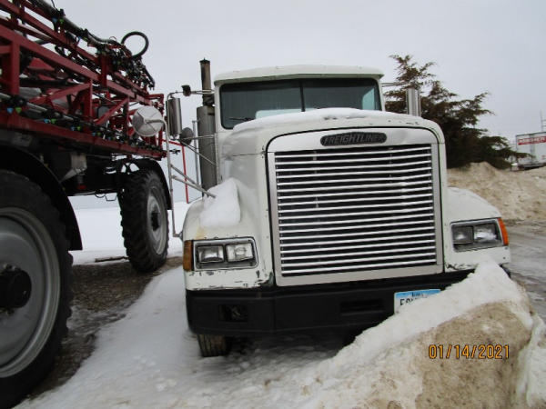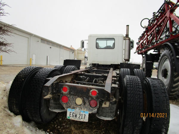 1996 Freightliner Truck (DR7619, Unit 288961), diesel engine, Rockwell 10 speed transmission, air conditioning, heat, Am/Fm cassette radio, cruise control, engine brake, tandem axle, full screw, air ride suspension, 11R22.5 tires, shows 711,486 miles.