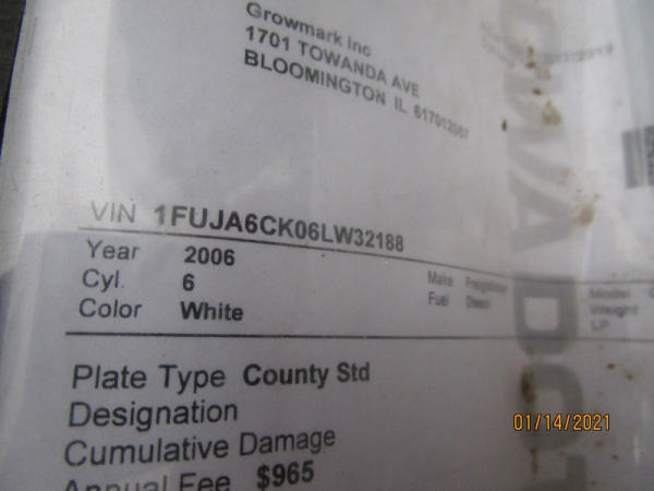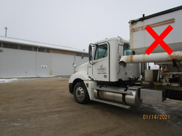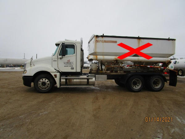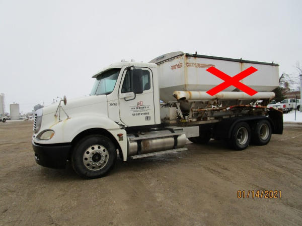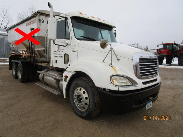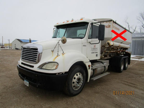 2006 Freightliner Columbia Truck (DR7620, Unit 20003), Detroit Series 60 diesel engine, 10 speed transmission, air conditioning, heat, Am/Fm CD radio, cruise control, engine brake, tandem axle, full screw, air ride suspension, 11R22.5 tires, (Dry tender box NOT included), shows 636,218 miles.