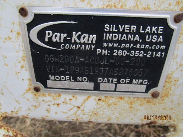 2010 Par-Kan Weigh Wagon (DR7546), 2010 Par-Kan model PK-346186 weigh wagon, side hydraulic discharge auger, Avery Weigh Tronix model 640 digital readout, hand controller, roll over tarp, tandem axle, ST235/80R16 tires.