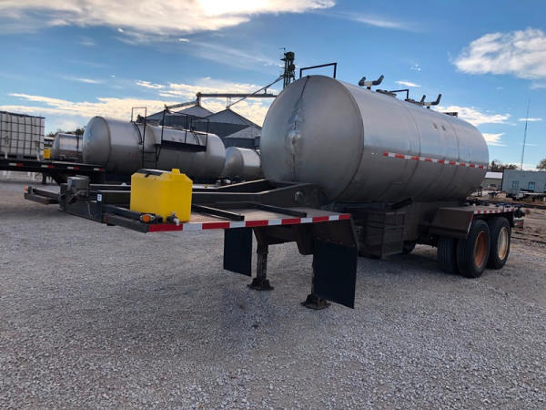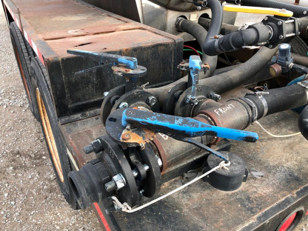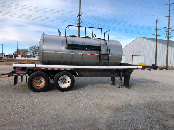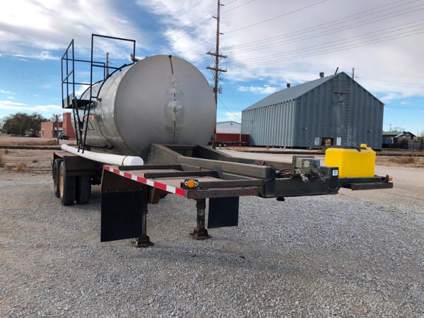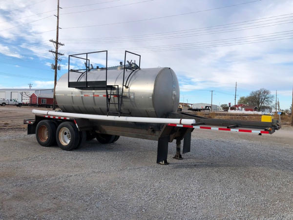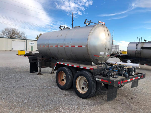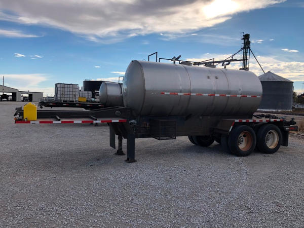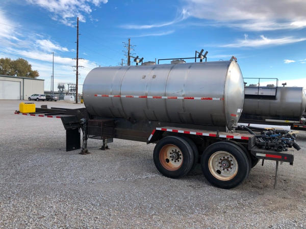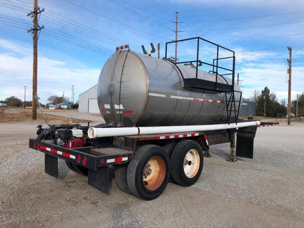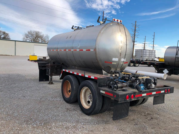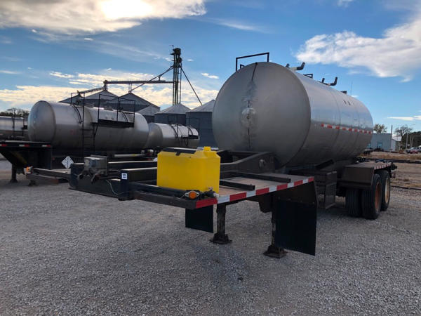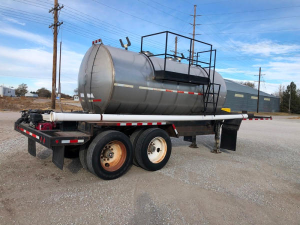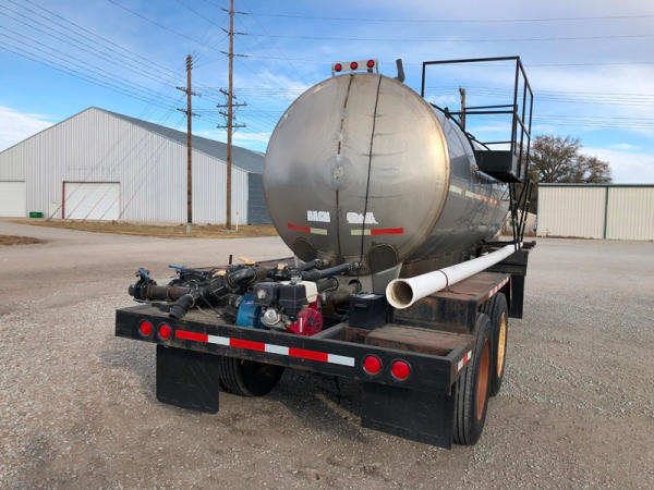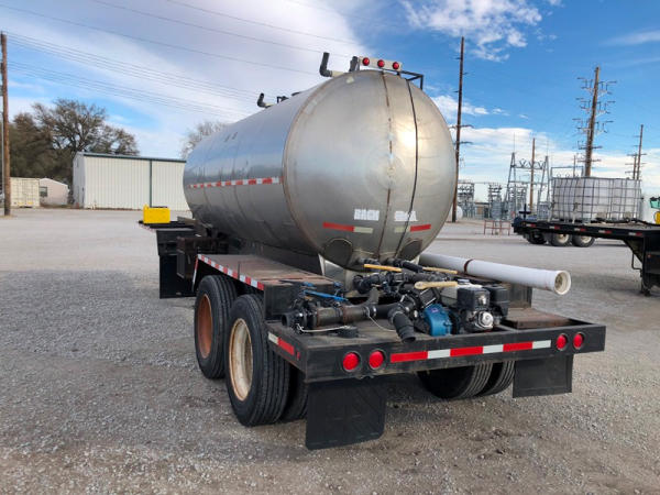 1995 Semi Liquid Trailer (NP1052, Unit 98080), tandem axle, spring suspension, 3,200 gallon split compartment (1,600 - 1,600) stainless steel liquid tank, John Blue pump, Honda GX 390 electric start gas motor, 285/75R24.5 tires, landing gear.