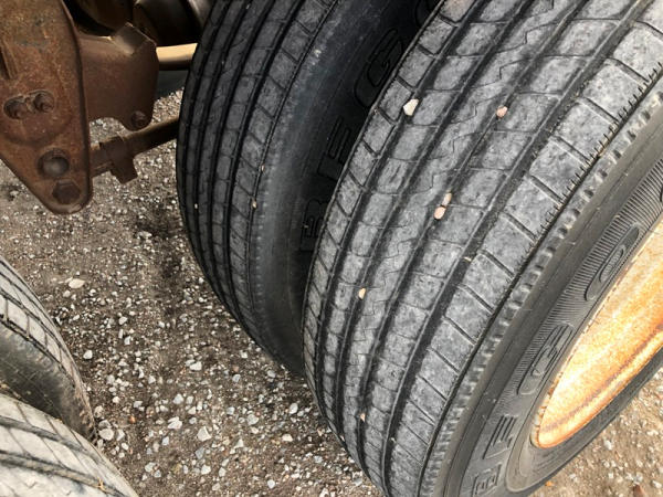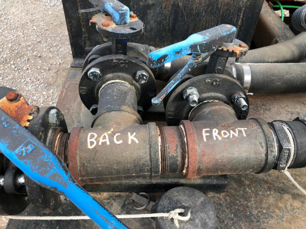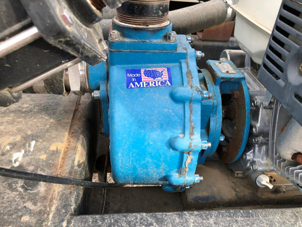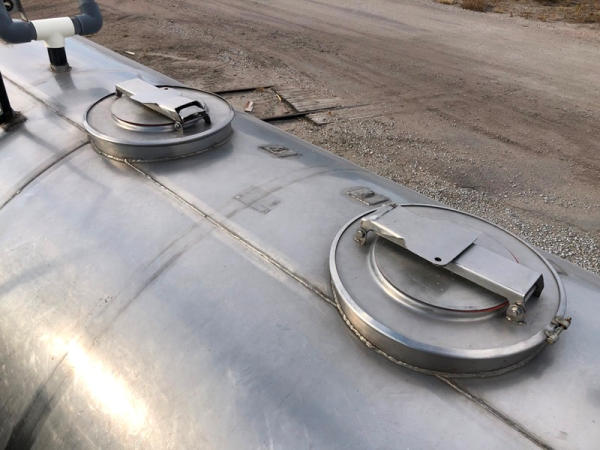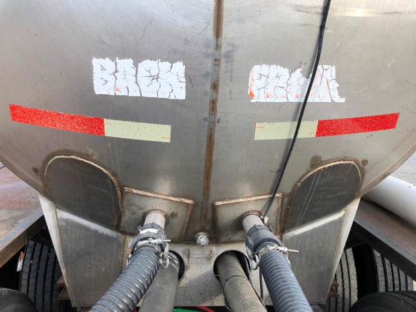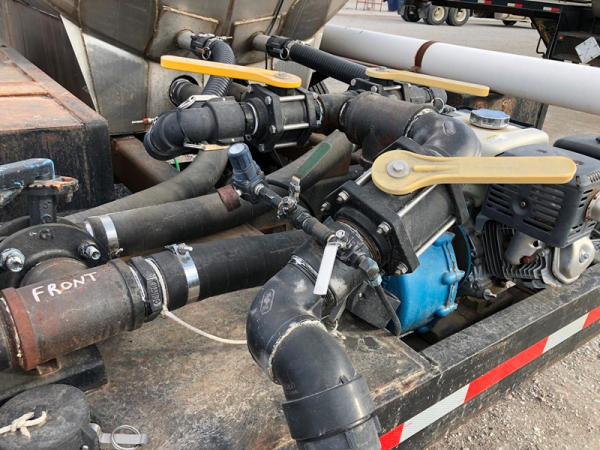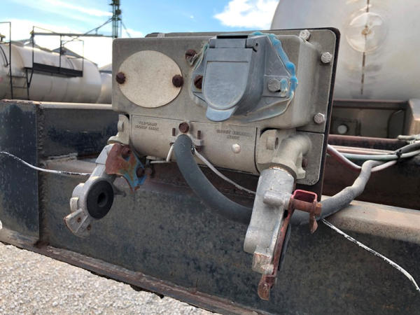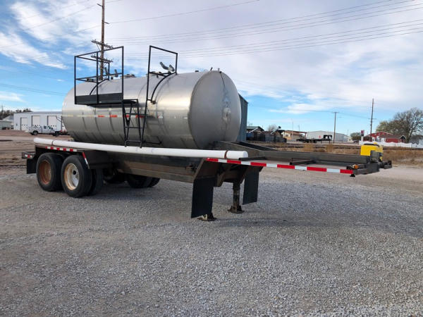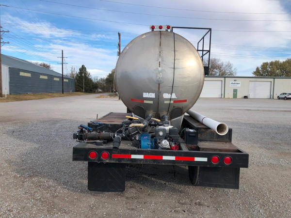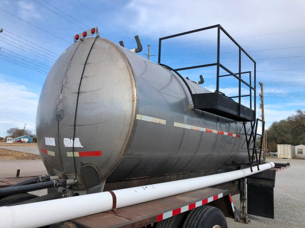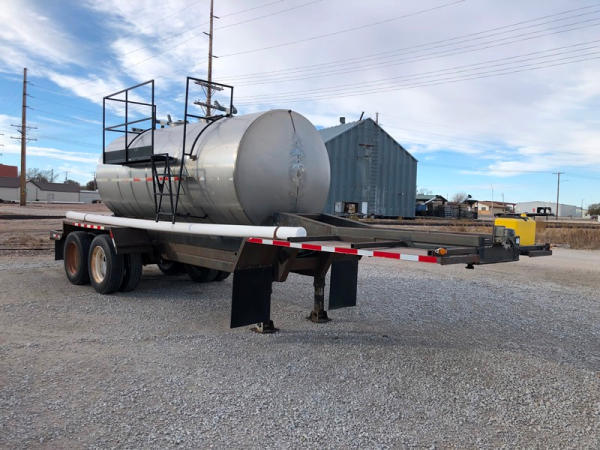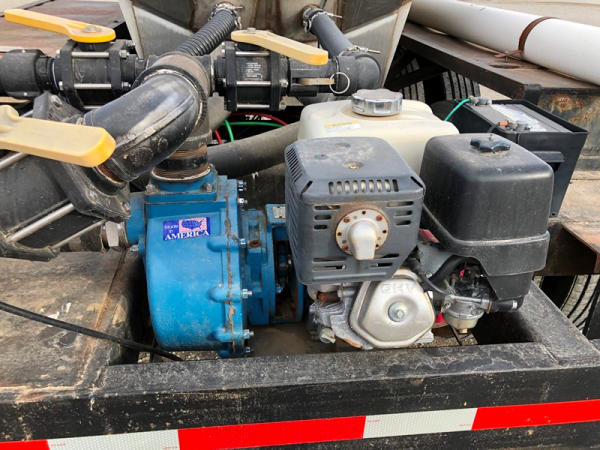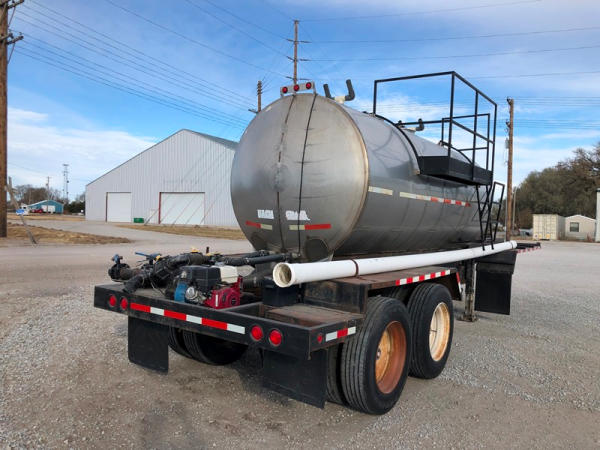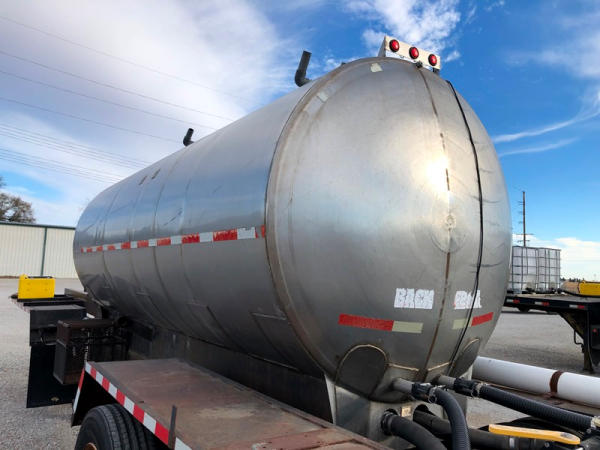 1995 Semi Liquid Trailer (NP1052, Unit 98080), tandem axle, spring suspension, 3,200 gallon split compartment (1,600 - 1,600) stainless steel liquid tank, John Blue pump, Honda GX 390 electric start gas motor, 285/75R24.5 tires, landing gear.