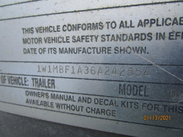 2006 Wilson Grain Trailer (DR7592 Unit 10927), model DWH-500 43' aluminum grain trailer, 66" sides, air ride suspension, roll tarp.