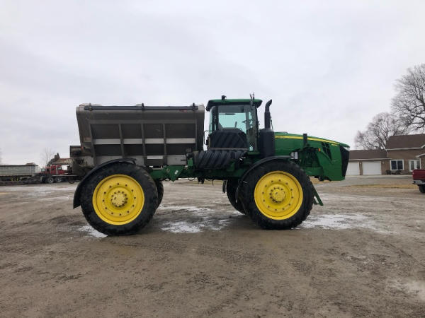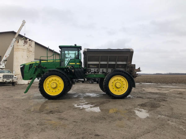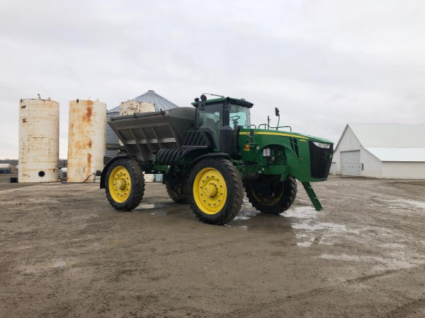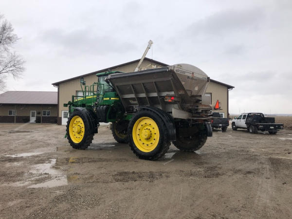 2014 John Deere 4940 Dry Machine (PD2602), John Deere diesel engine, hydrostatic transmission, air/heat, AM/FM, New Leader 3030 G4 stainless steel dry spreader box, all hydraulic, MultiApplier stainless steel insert, Firestone Radial tires, good tarp, John Deere Fertilizer controller, buddy seat, farmer owned, shows 3612 hours.
