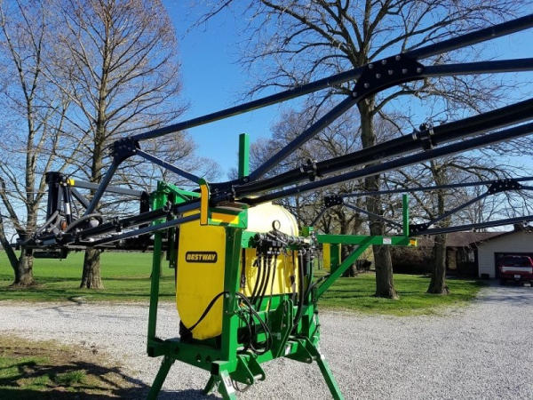2015 Bestway Pro-Mount 360 (DL1376), 300 gallon tank, 3 point sprayer, 60 foot fiberworks boom, Hypro 9203 hydraulic pump, 20 inch boom spacing with Teejet single nozzles, 42 inch vertical height range, electric-over-hydraulic switch box, chemical inductor, Cat III 3 point, 2350 pounds empty weight, Raven 440 controller, seller purchased off of auction, winterized and stored in shed.