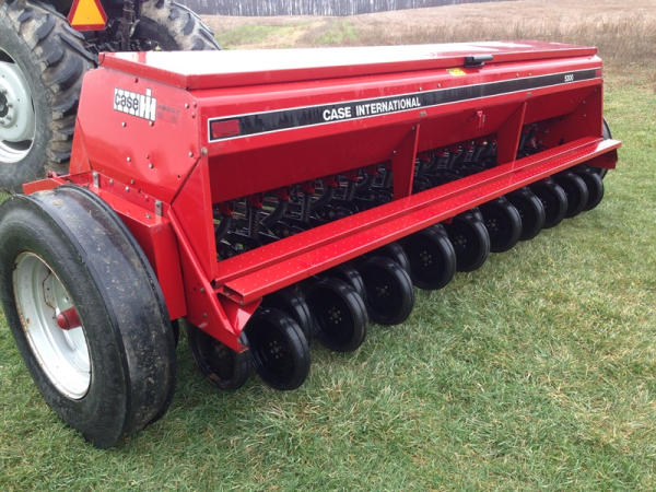 Case IH 5300 Grain Drill (LD724), 21 holes at 7.5" spacing, double disc openers, 7.50-20 press wheels, new hydraulic cylinder, no rust inside or out.
