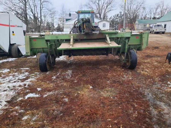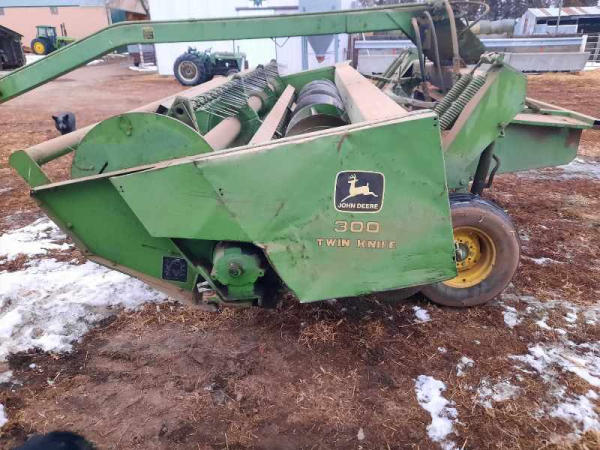 John Deere 300 Windrower (LD715), twin knife, 14ft wide, rubber crimpers.
