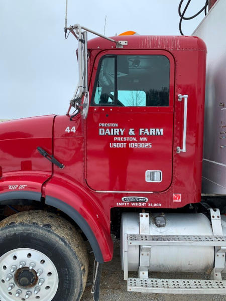 2002 Freightliner (DL1373), 355/370hp C12 Cat engine, rear tires are 80 percent, front tires are 25 percent, multi compartment convertible feed body, up to 16 compartment, very clean and everything works great, runs good.
