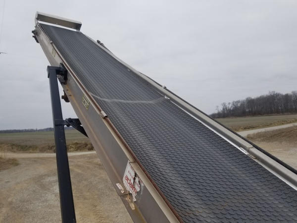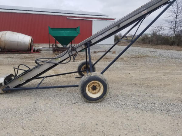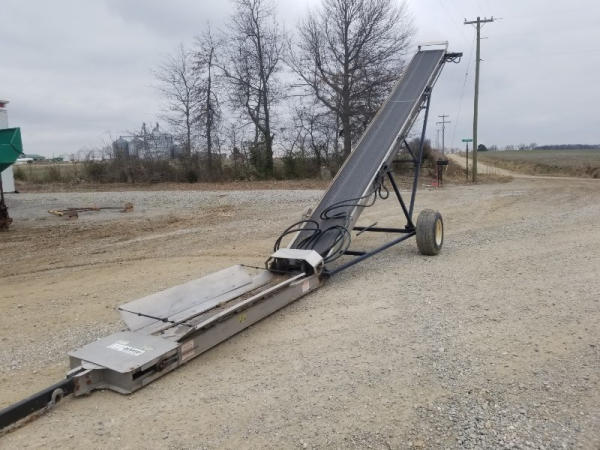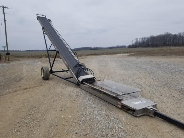 Adams Portable Belt Conveyor (LT187), stainless steel, field loader, 24 inch wide belt, hydraulic drive.