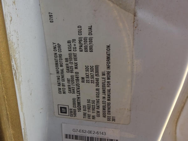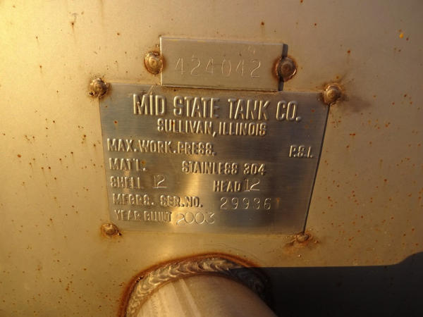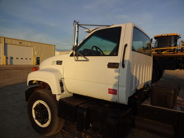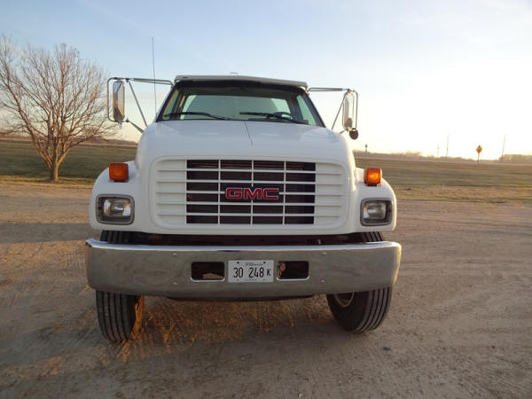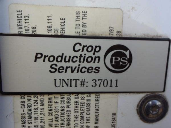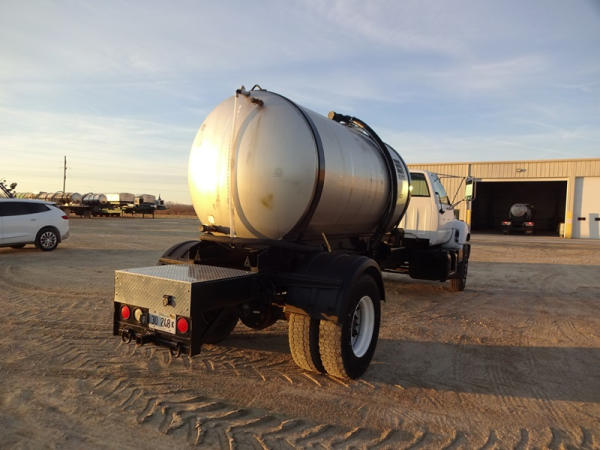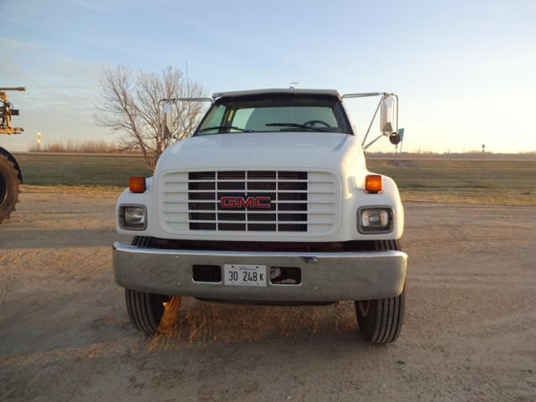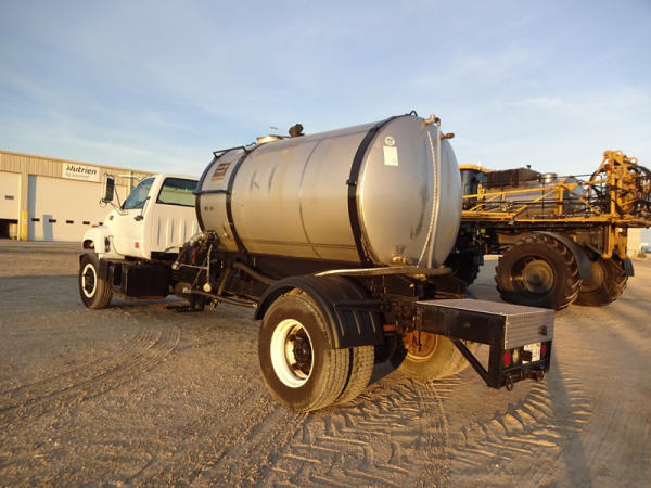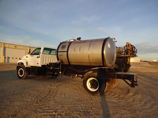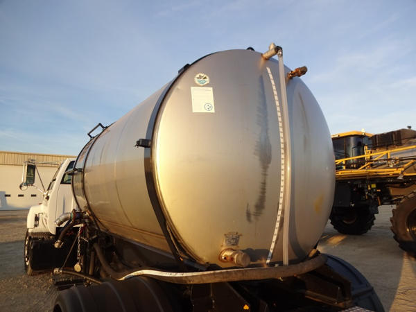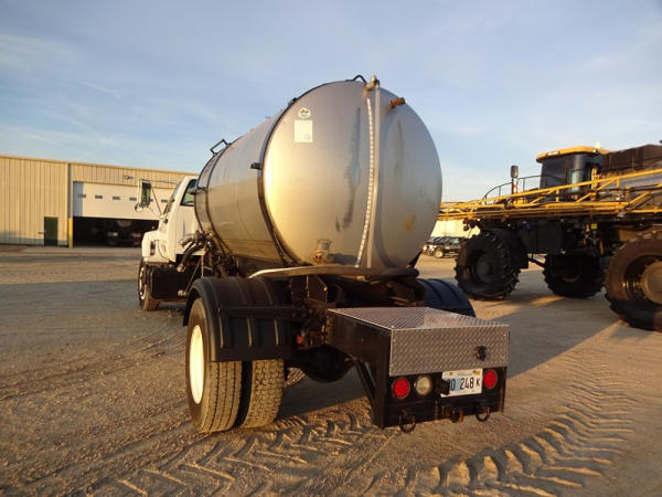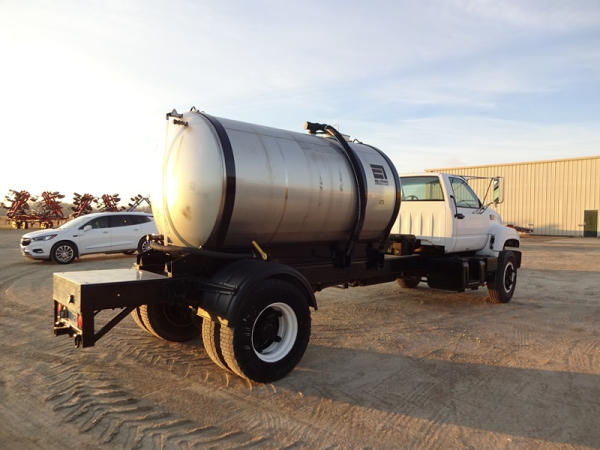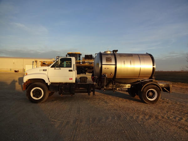 1997 GMC C7500 Liquid Nurse Truck (PZ6069, Unit 37011), Cat 3116 diesel engine, 6 speed transmission, air conditioning, heat, Am/Fm radio, single axle, 2003 Mid State Tank 1800 gallon stainless steel liquid nurse tank, Honda gas engine, Flomax pump, 11R22.5 tires, shows 71,399 miles.