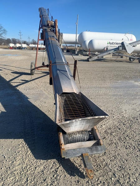 Belt Conveyor (PZ6394), 21" x 42' stainless steel belt conveyor, 3 phase 10 hp electric motor, control box, portable.