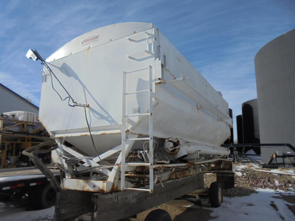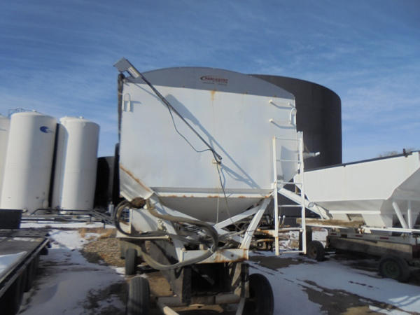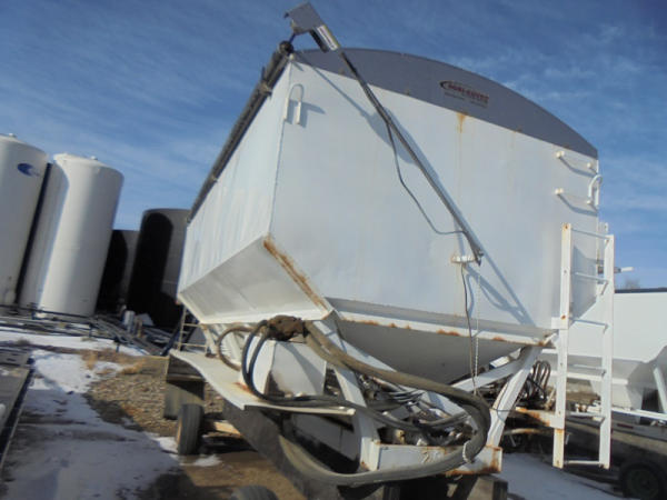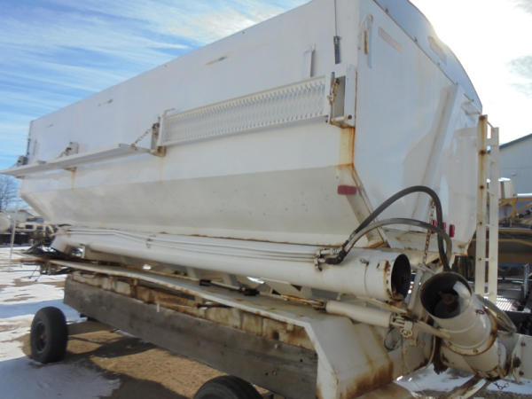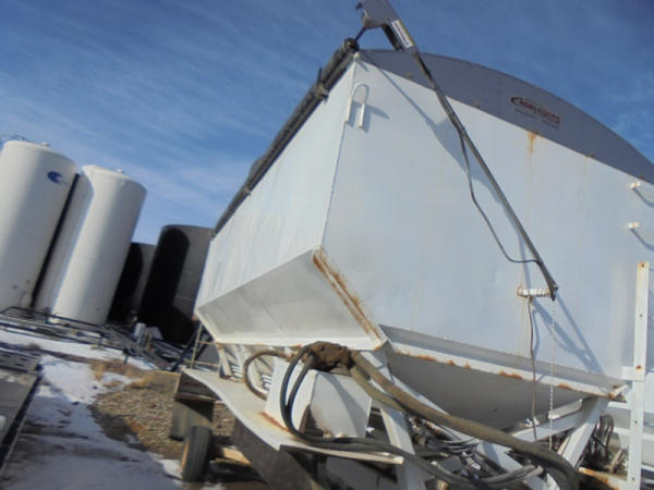 18 Ton Stainless Steel Box Unit #2018 (CP1779), side shooter ddischarge auger, 3 compartment, electric tarp, catwalk.