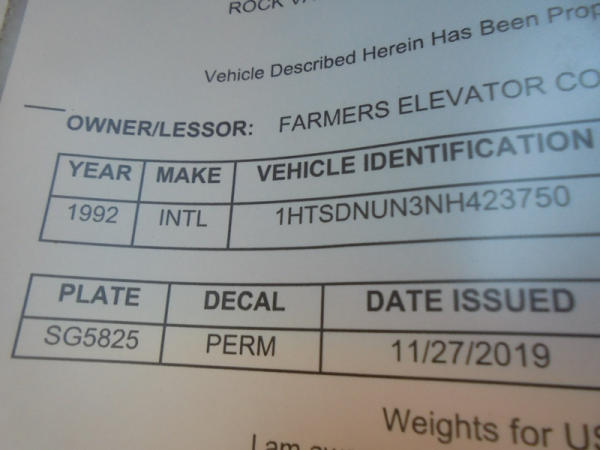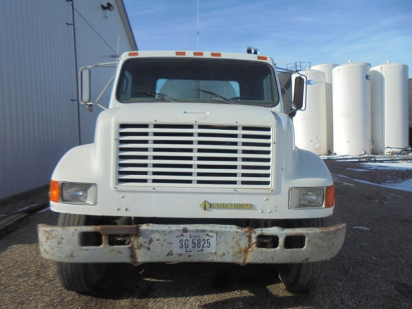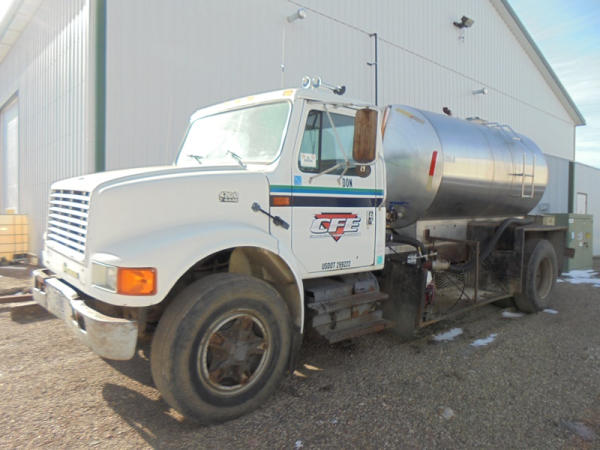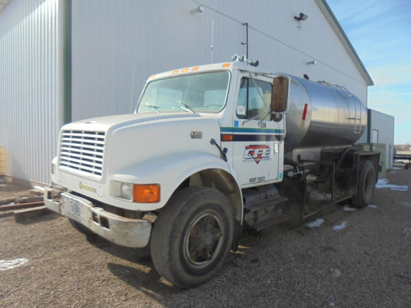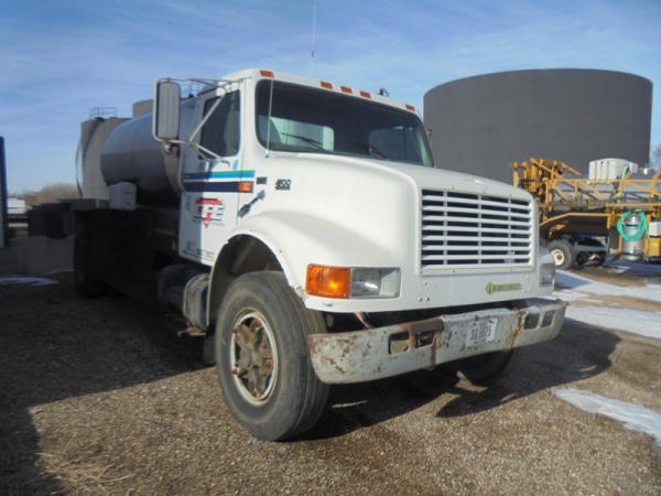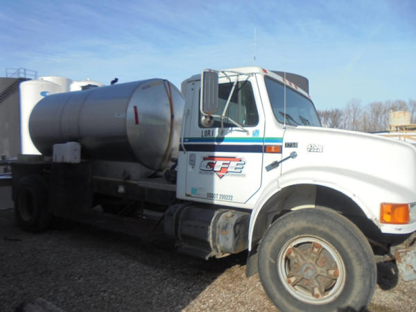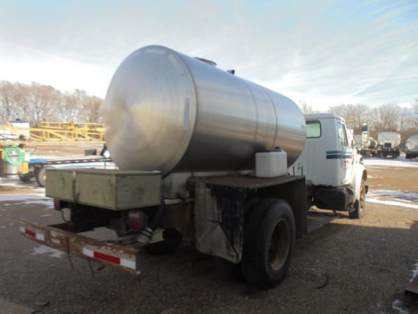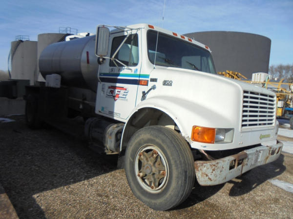 1992 IHC 4700 Liquid Truck (CP1777), International 44E diesel engine, 6 speed transmission, 1600 gallon stainless steel rinse tank, 11R22.5 tires, spring ride suspension, 166,325 miles.