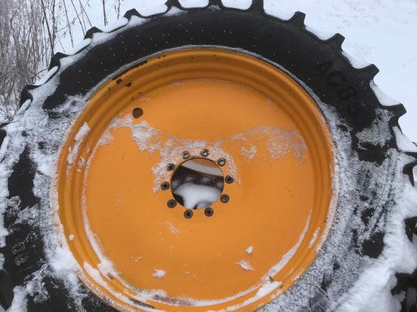 (4) Hagie Row Crop Tires/Rims (NP1500), (4) Hagie 480/80R50 row crop tires, 10 bolt rim pattern.