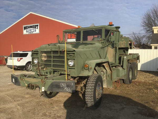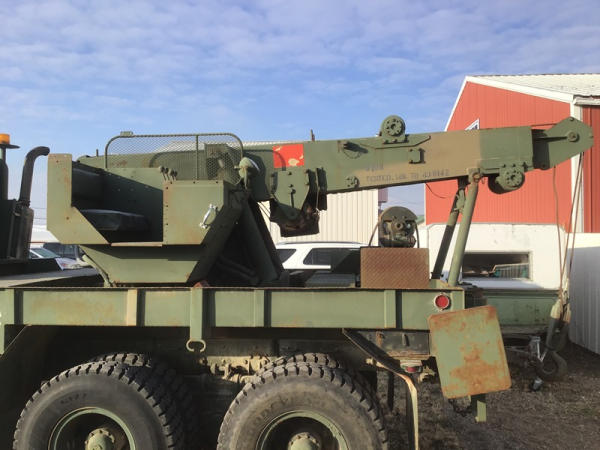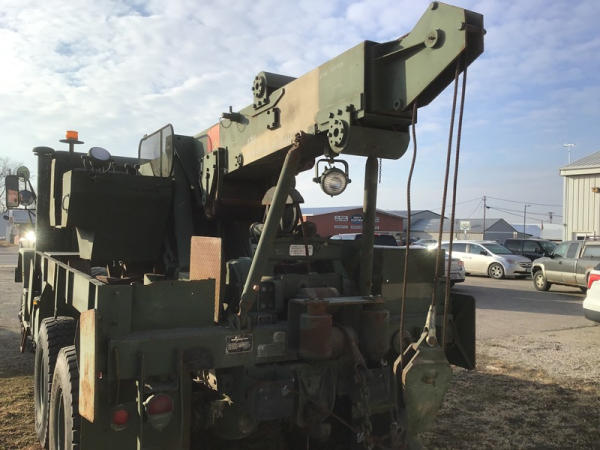 1984 American General M936 Wrecker (NP1501), 6 Wheel Drive, Cummins diesel engine, Allison automatic transmission, tandem axle, (6) chains for tires, air brakes, 40,000 pound winch on the rear, 25,000 pound winch rotation bomb - rotator, 25,000 pound front winch, shows 1,105 hours, shows 31,137 miles.