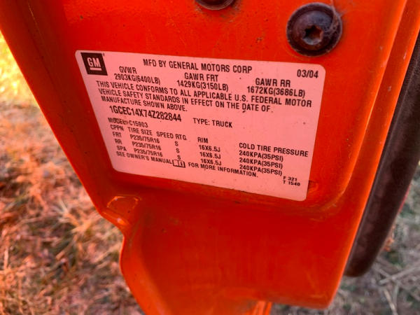 2004 Chevrolet Silverado 1500 Regular Cab (DPA0393), 5.3L V8 engine, automatic transmission, heat/ac, am/fm CD radio, automatic windows and locks.