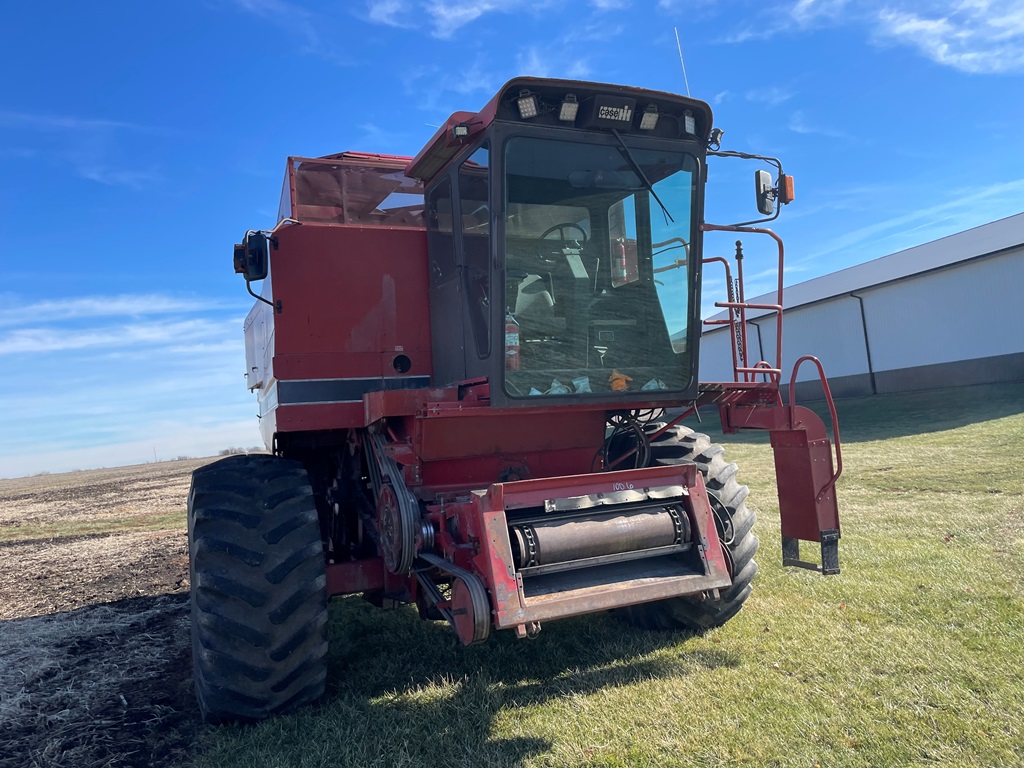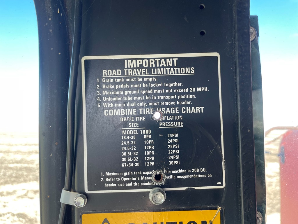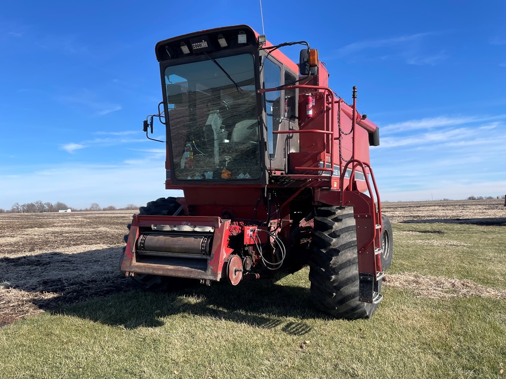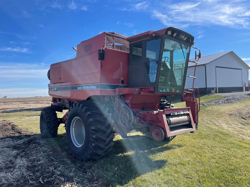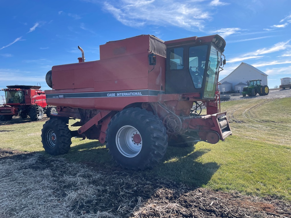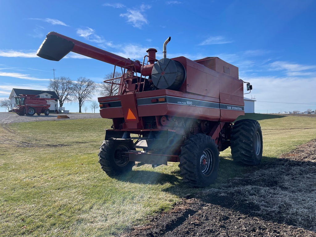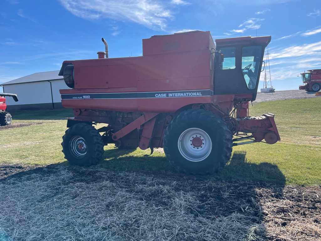 1990 CaseIH 1680 Axial-Flow 4WD Combine (GP2322), Cummins 6TA-830 - 6 cylinder diesel engine, hydrostatic transmission, 3 forward speeds, 3 reverse speeds, heat, ICE COLD air conditioning, Am/Fm radio, chopper, auto/manual reel speed, auto/manual header height, power guide wheel, Firestone 30.5L-32 front tires, Firestone 18.4-26 rear tires, 2388 ladder, approx. 5,700 engine hours.