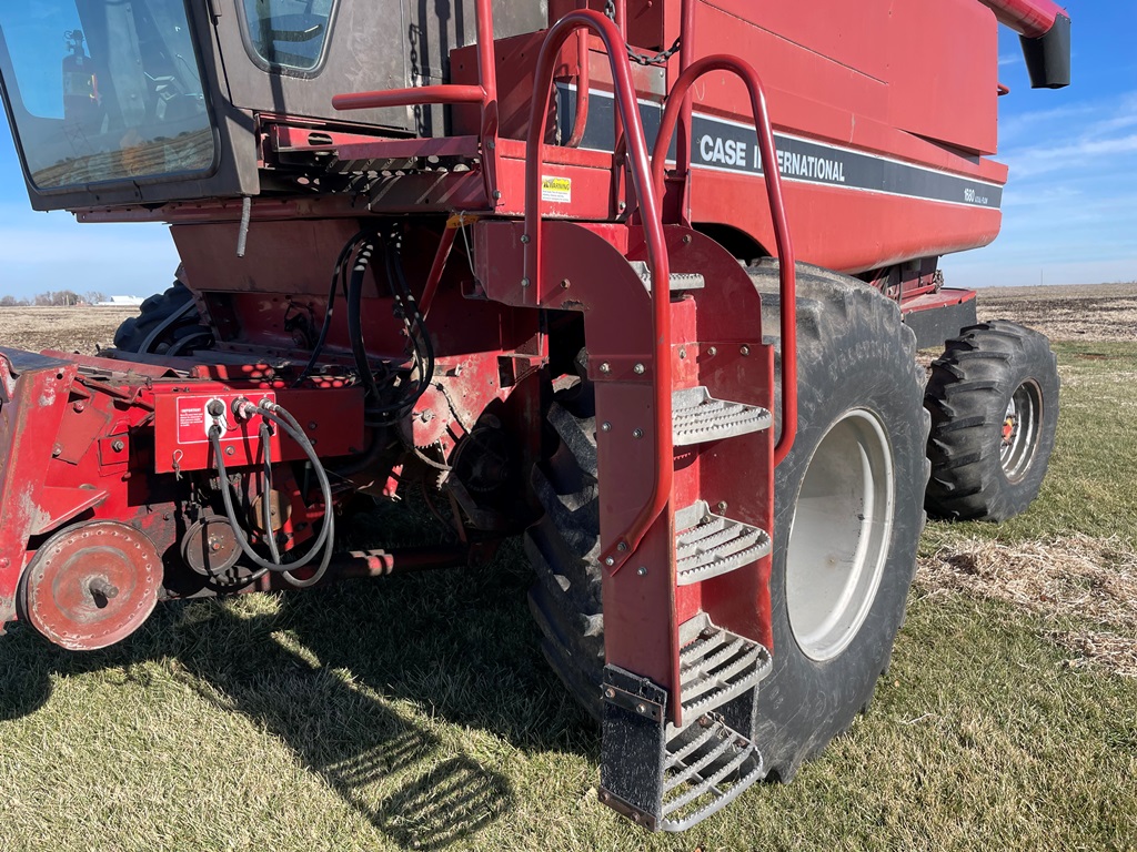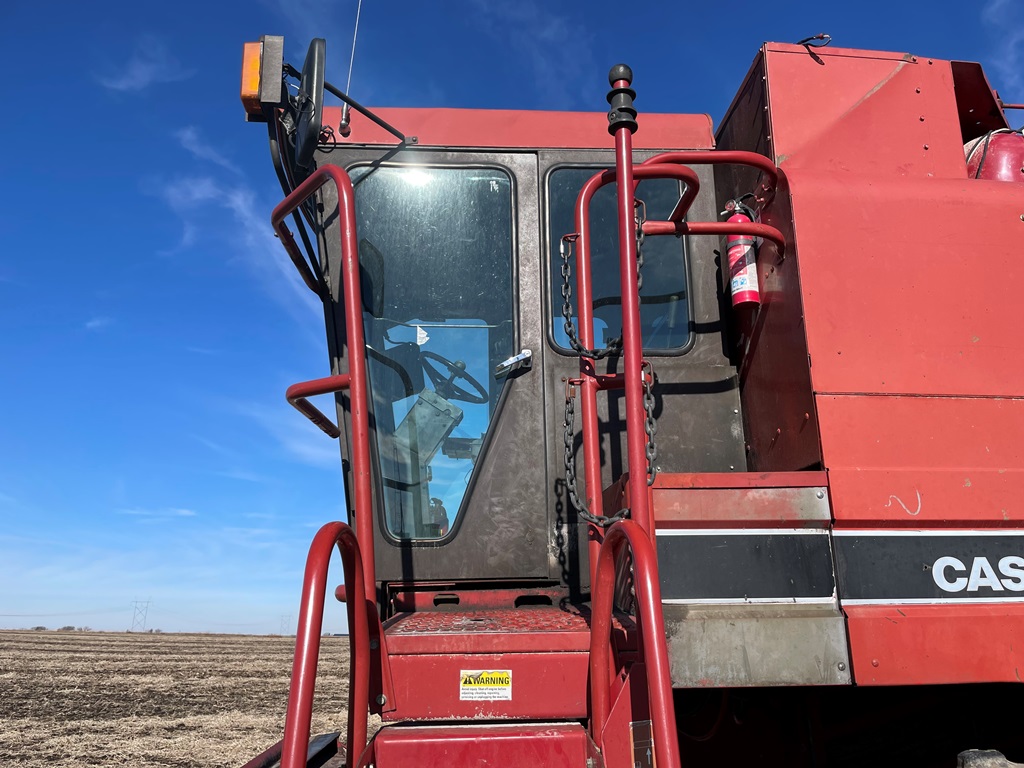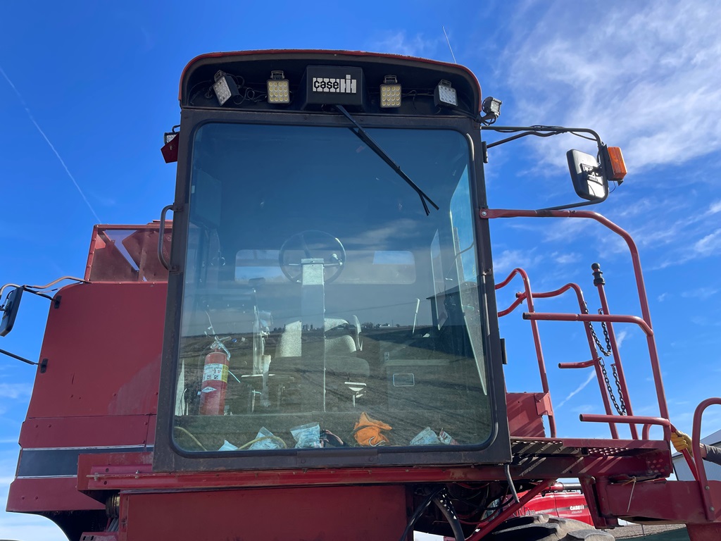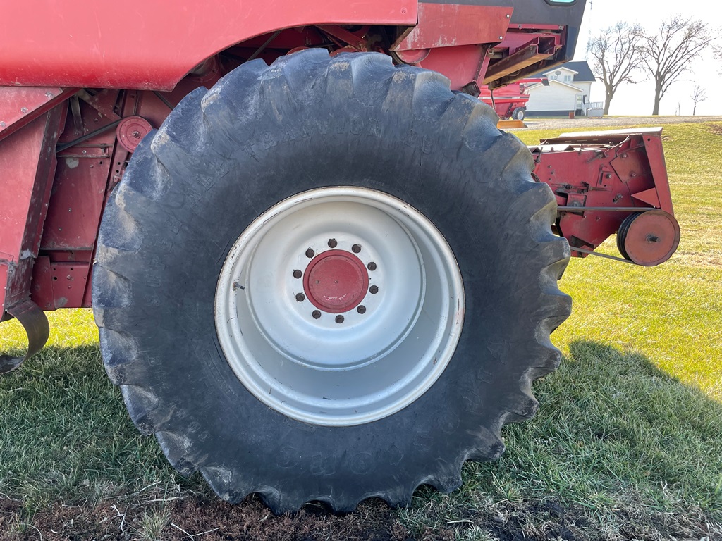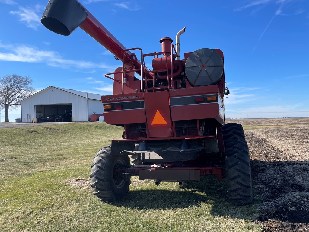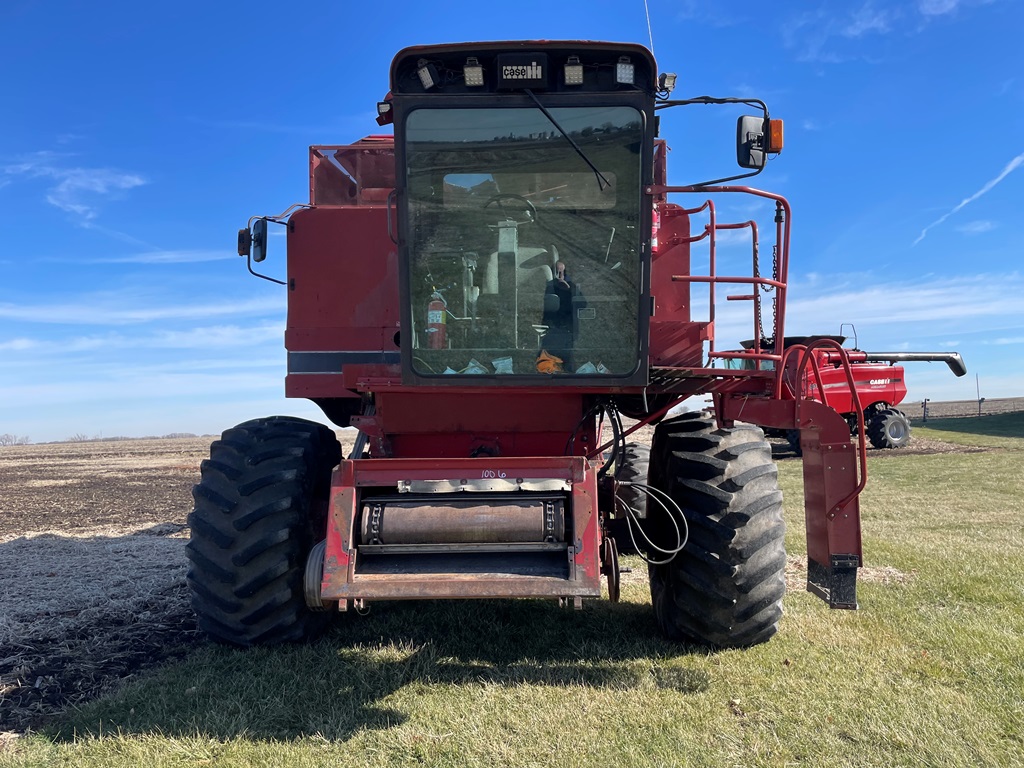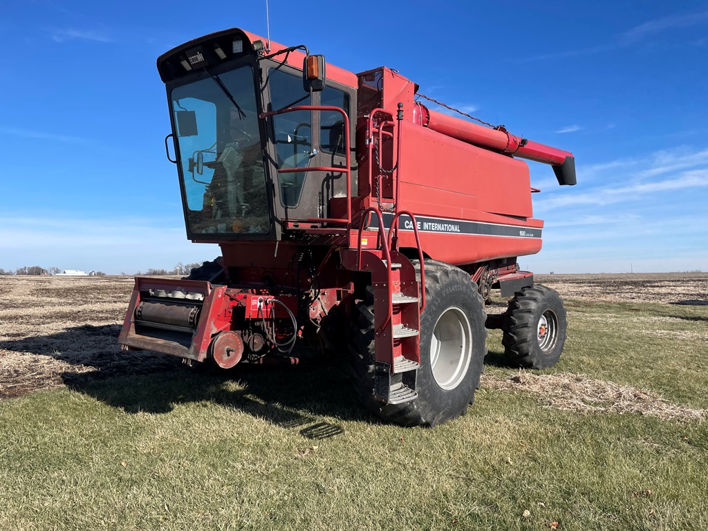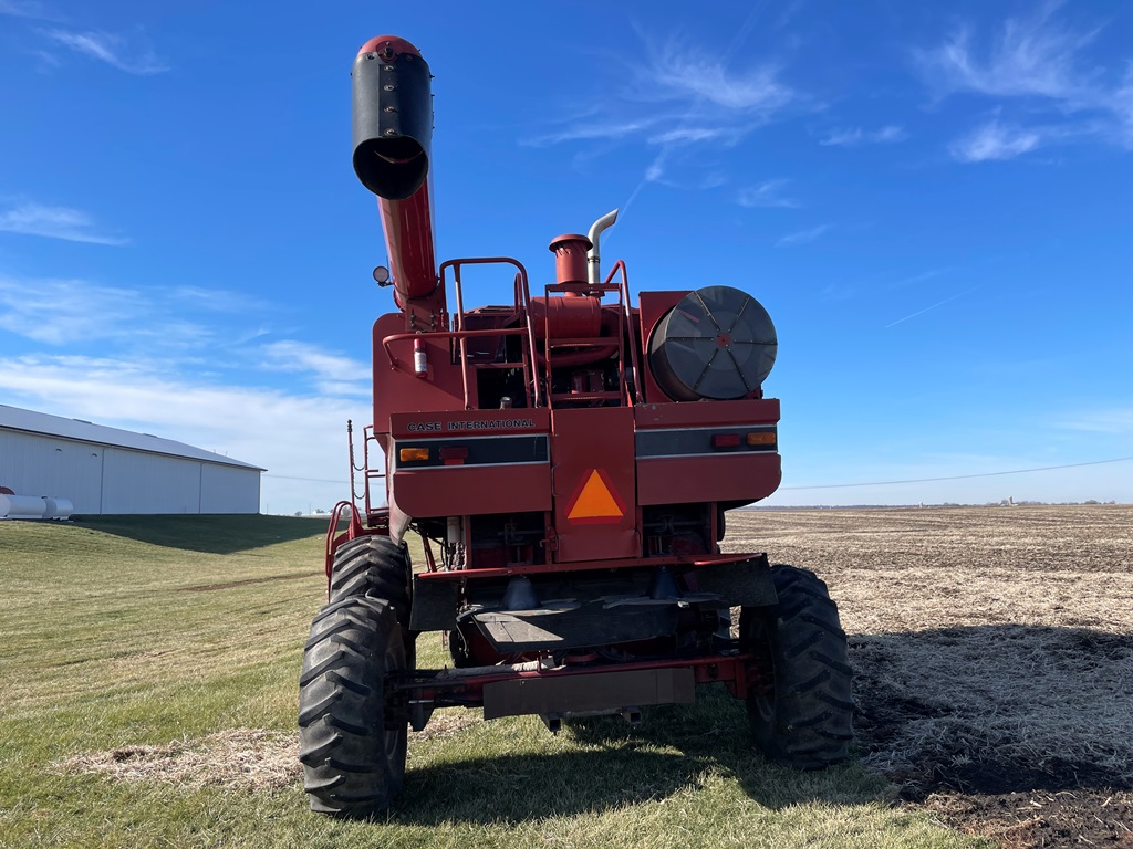1990 CaseIH 1680 Axial-Flow 4WD Combine (GP2322), Cummins 6TA-830 - 6 cylinder diesel engine, hydrostatic transmission, 3 forward speeds, 3 reverse speeds, heat, ICE COLD air conditioning, Am/Fm radio, chopper, auto/manual reel speed, auto/manual header height, power guide wheel, Firestone 30.5L-32 front tires, Firestone 18.4-26 rear tires, 2388 ladder, approx. 5,700 engine hours.