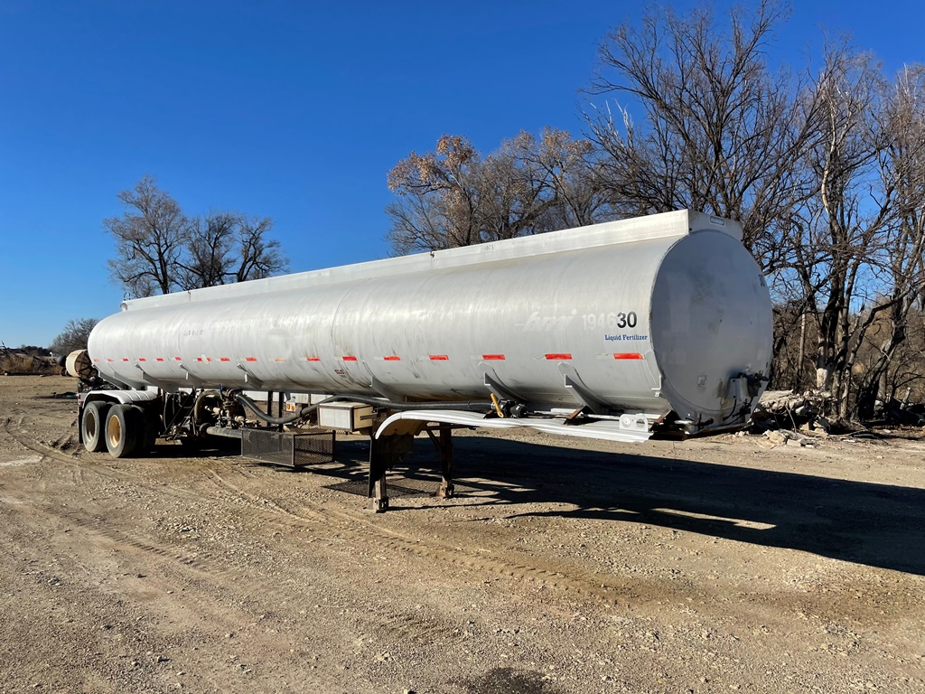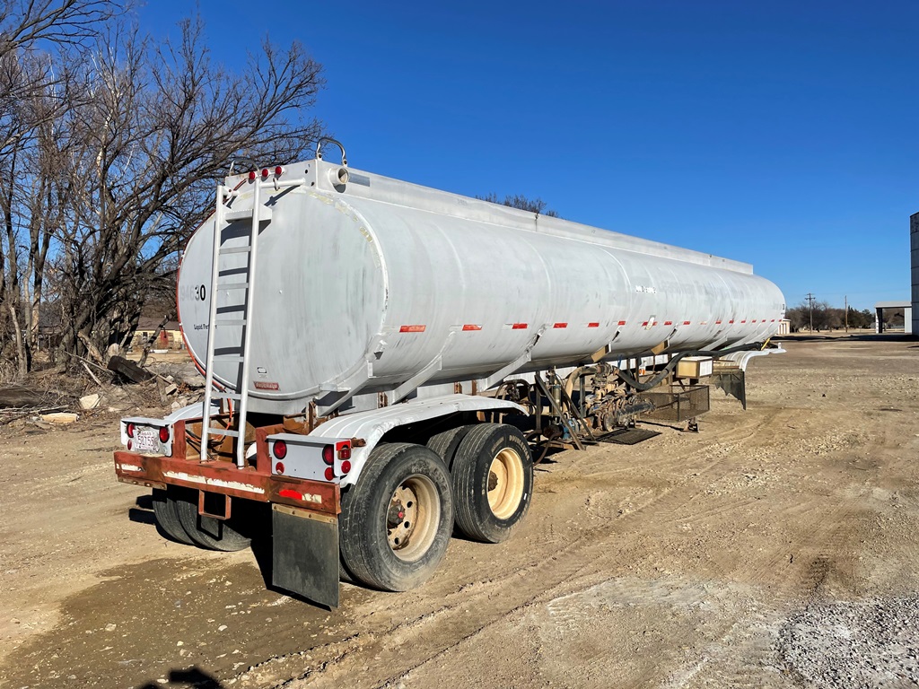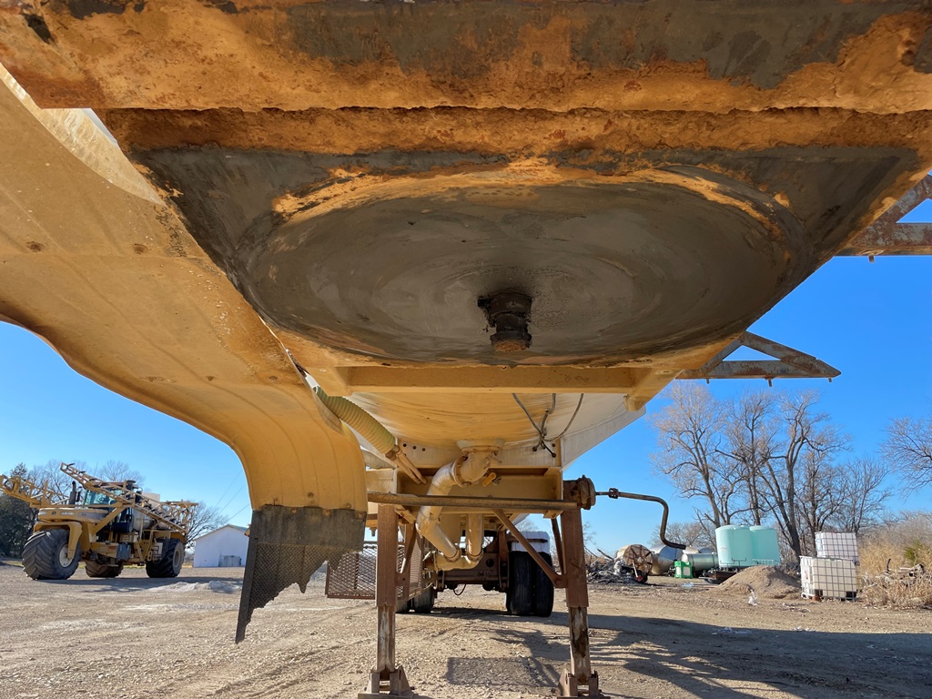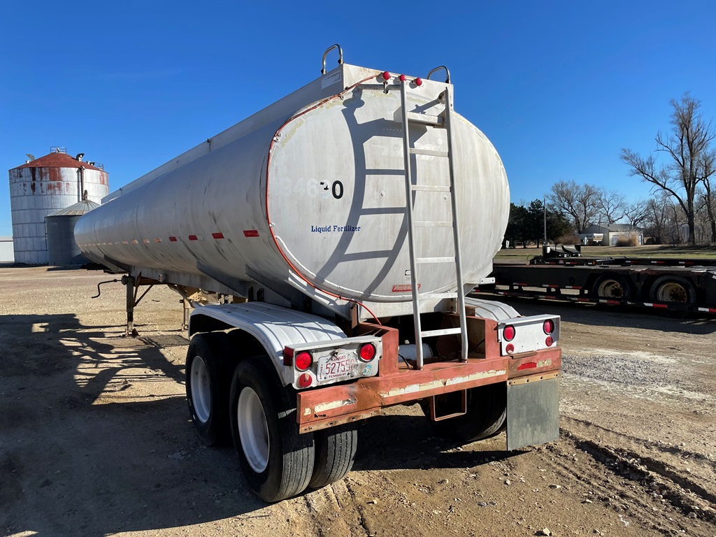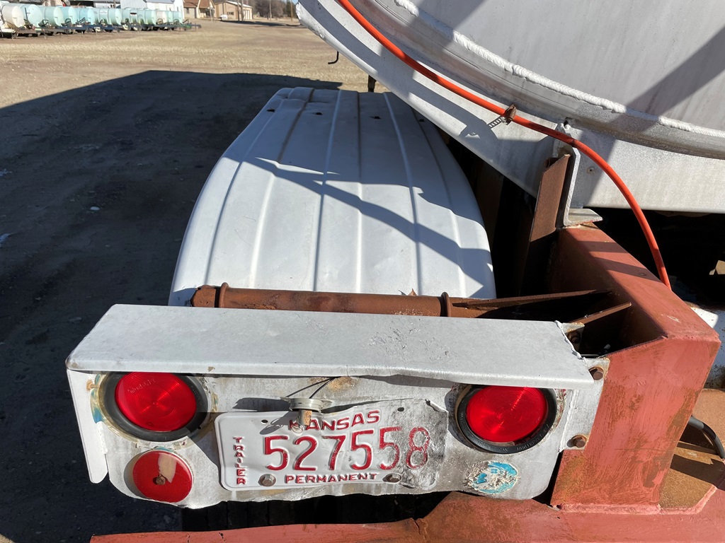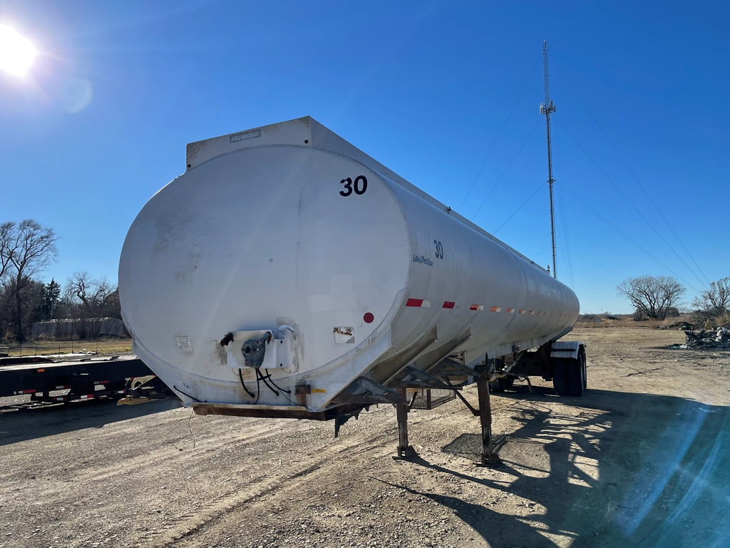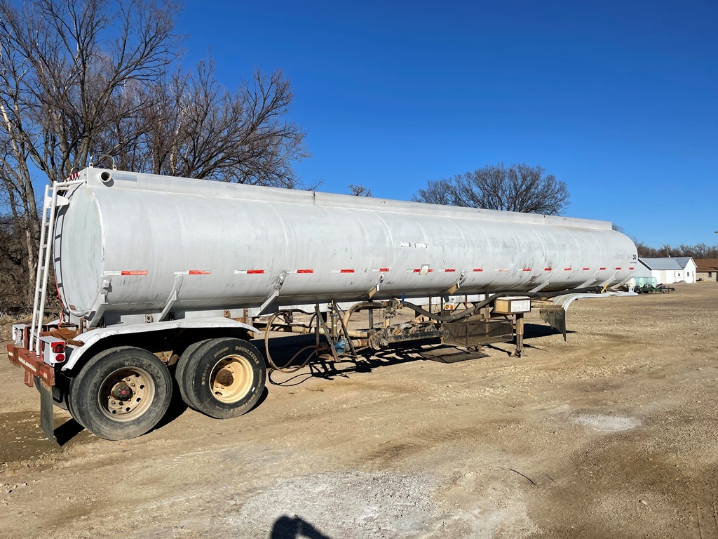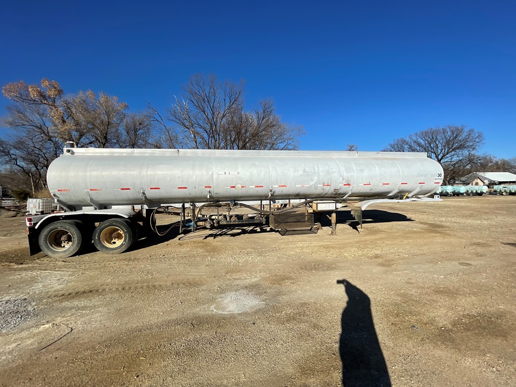 1985 Fruehauf Aluminum Liquid Transport Trailer (GP2344), Model TAG-F2-ESF-9400, 4 compartment - 9,400 gallon capacity (3075 - 1625 - 1625 - 3075), tandem axle, SHELL MATL 306-AL, Scot hydraulic pump, 295/75R22.5 tires, GVWR 68,000 pounds.
