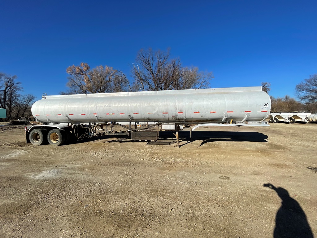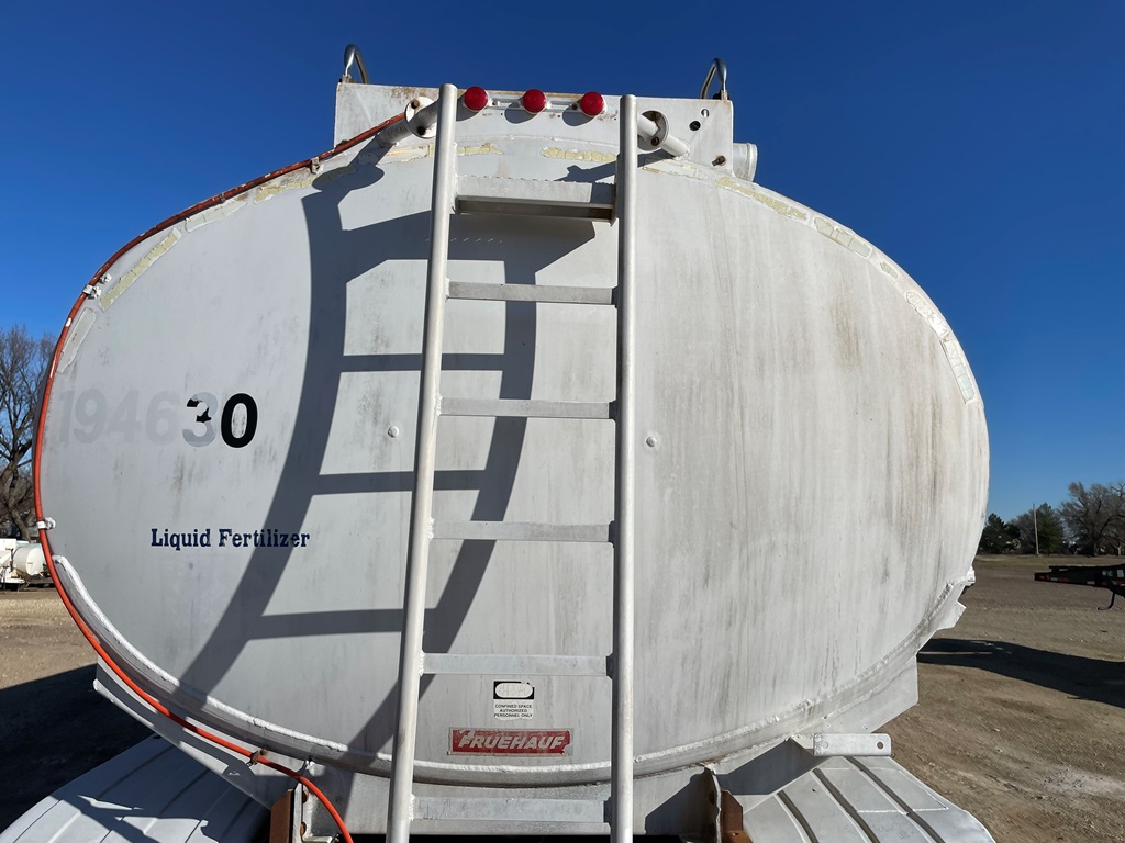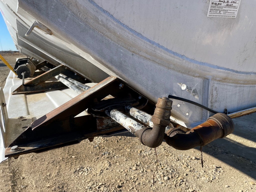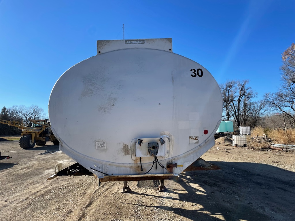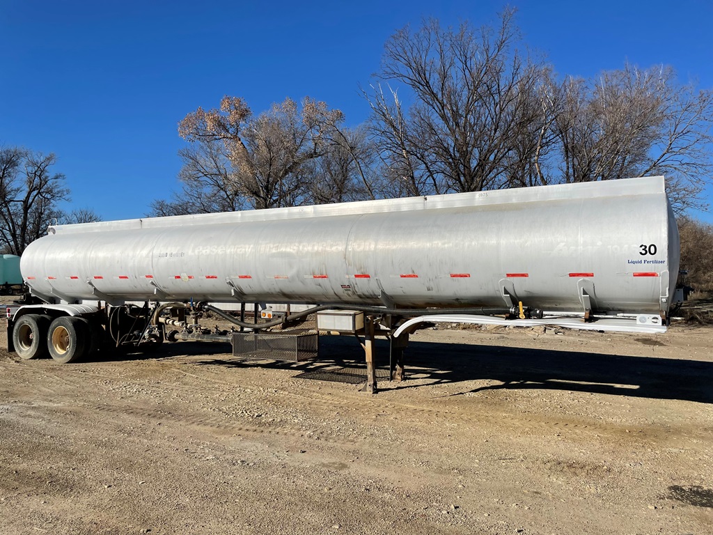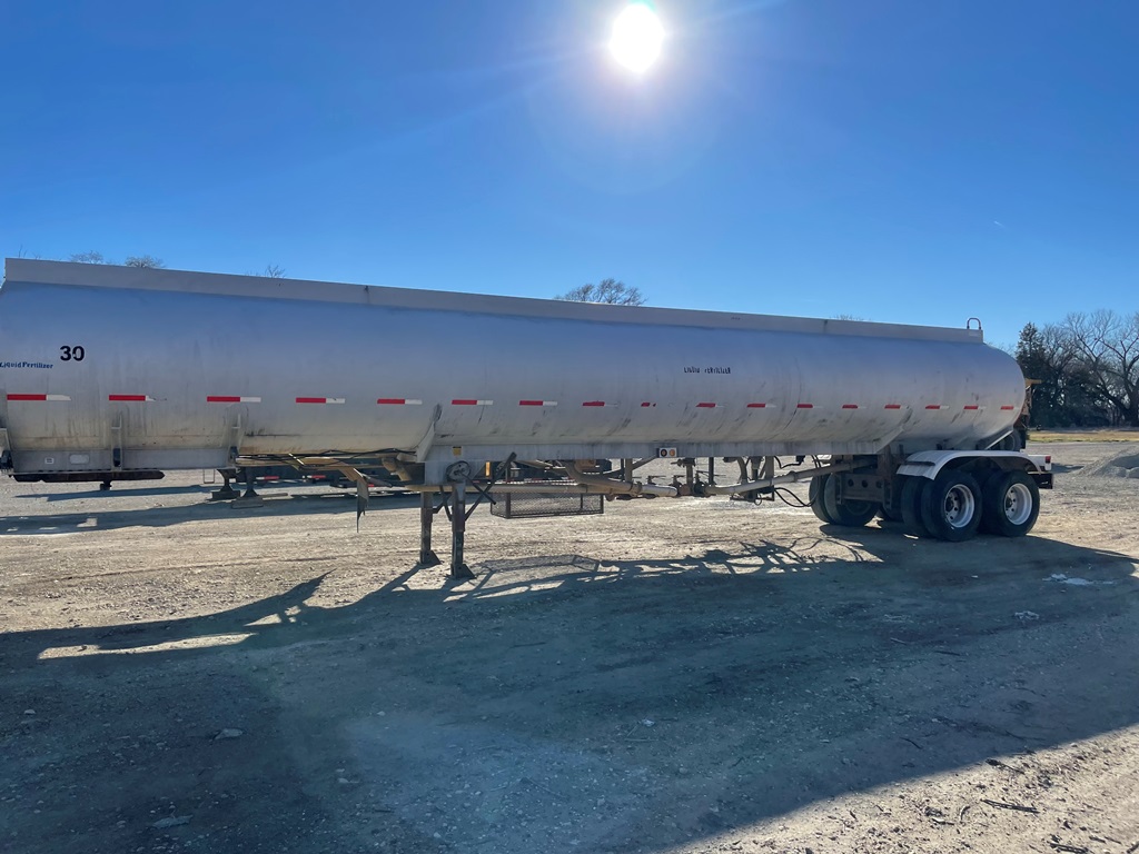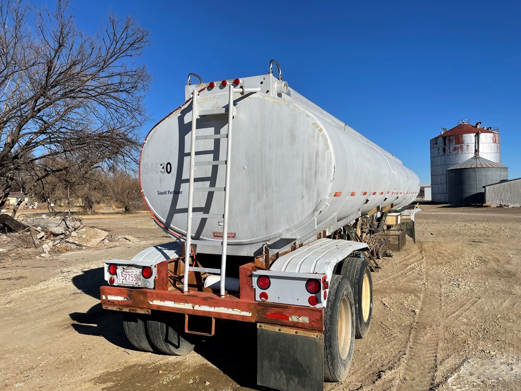 1985 Fruehauf Aluminum Liquid Transport Trailer (GP2344), Model TAG-F2-ESF-9400, 4 compartment - 9,400 gallon capacity (3075 - 1625 - 1625 - 3075), tandem axle, SHELL MATL 306-AL, Scot hydraulic pump, 295/75R22.5 tires, GVWR 68,000 pounds.