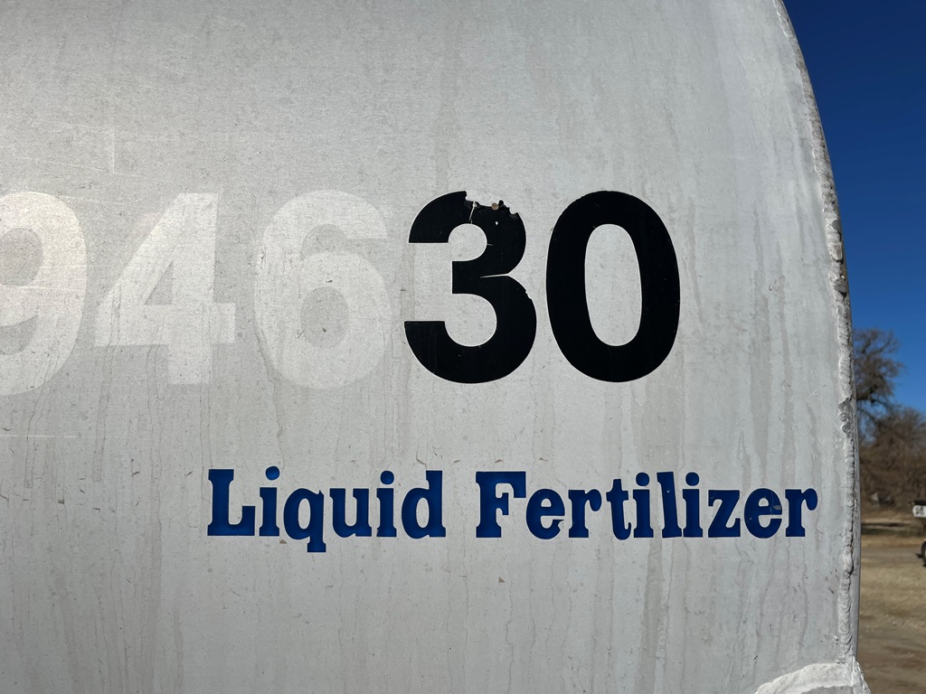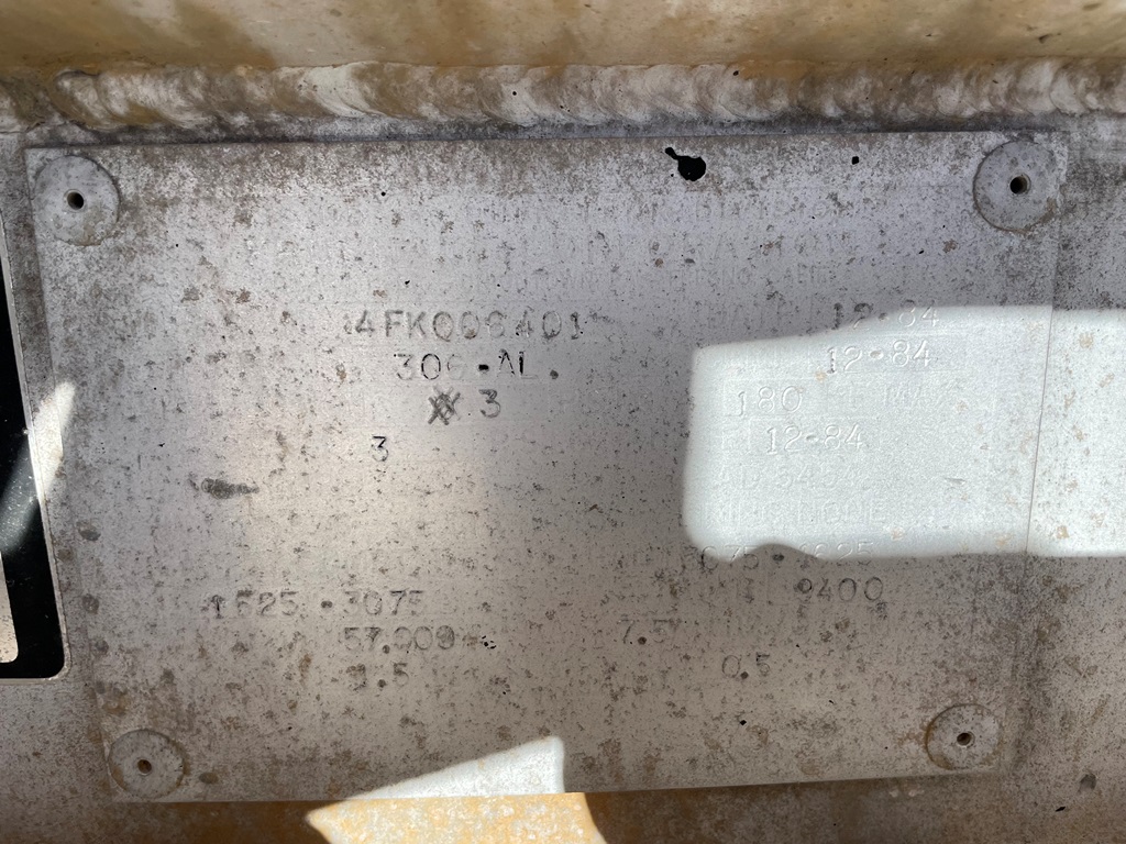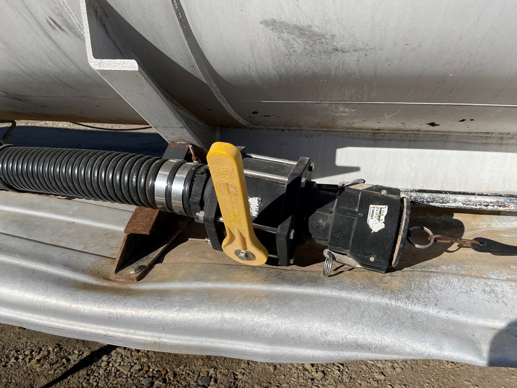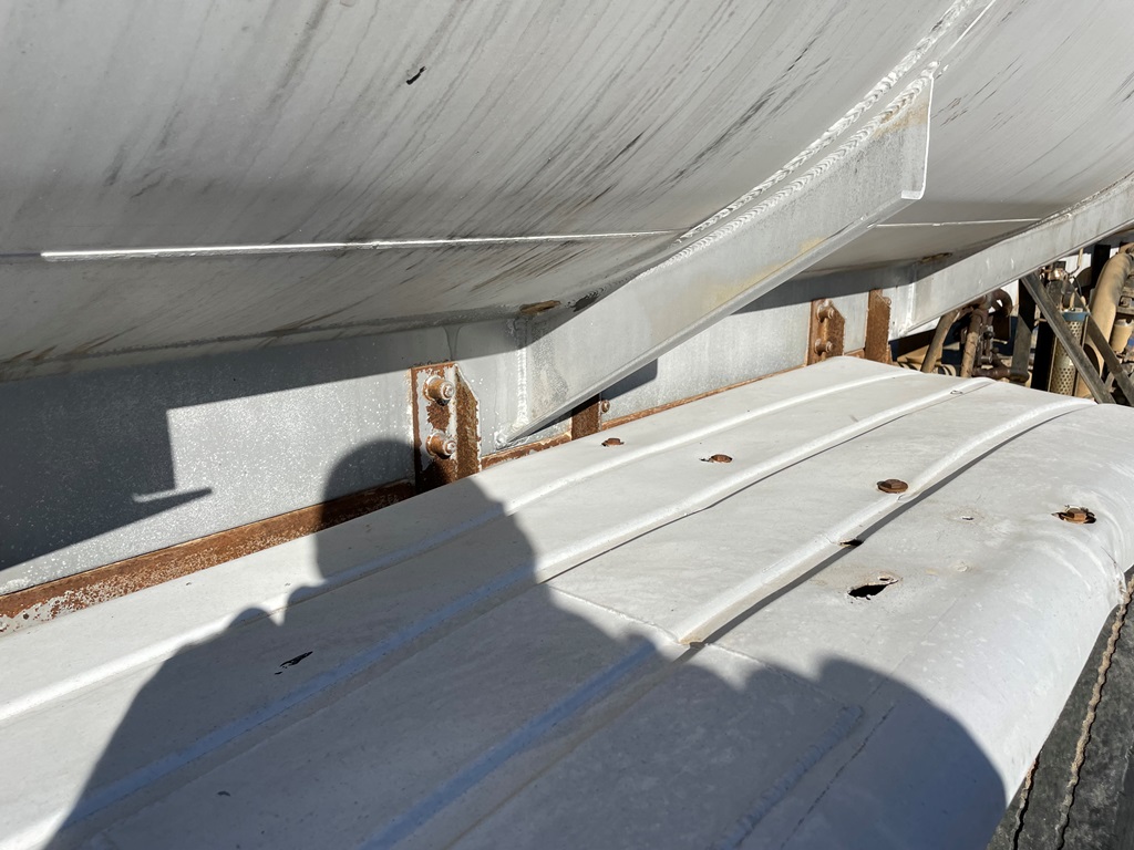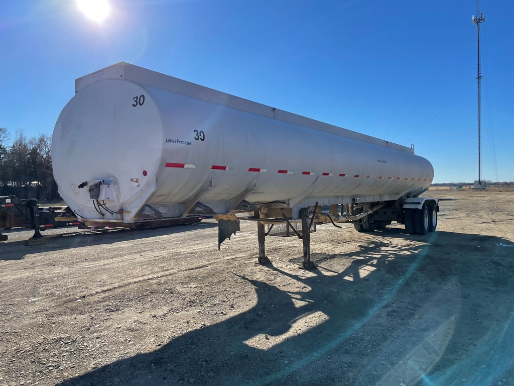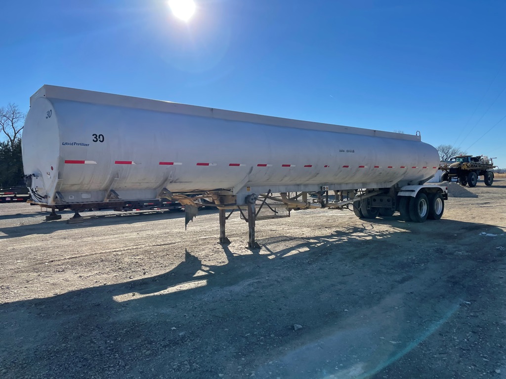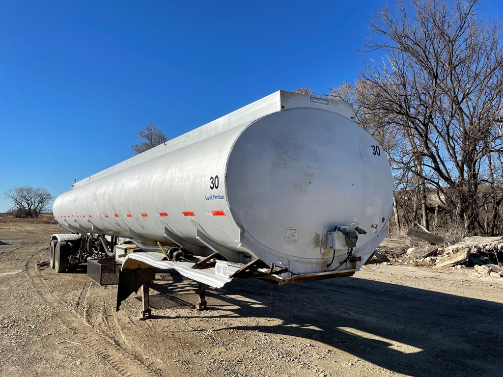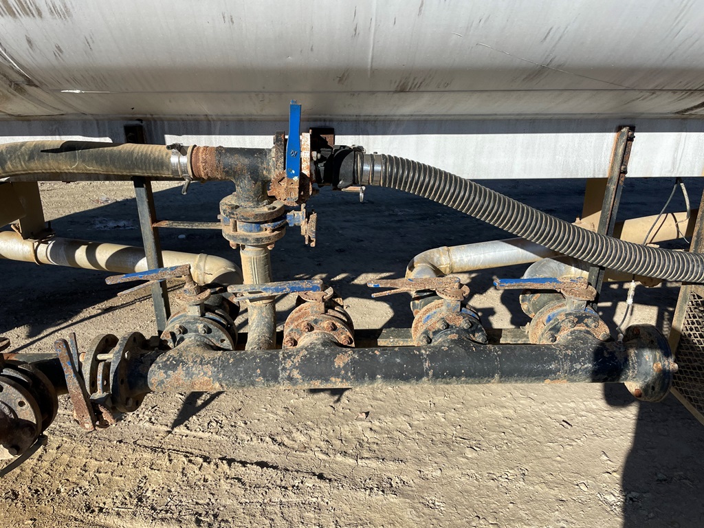 1985 Fruehauf Aluminum Liquid Transport Trailer (GP2344), Model TAG-F2-ESF-9400, 4 compartment - 9,400 gallon capacity (3075 - 1625 - 1625 - 3075), tandem axle, SHELL MATL 306-AL, Scot hydraulic pump, 295/75R22.5 tires, GVWR 68,000 pounds.