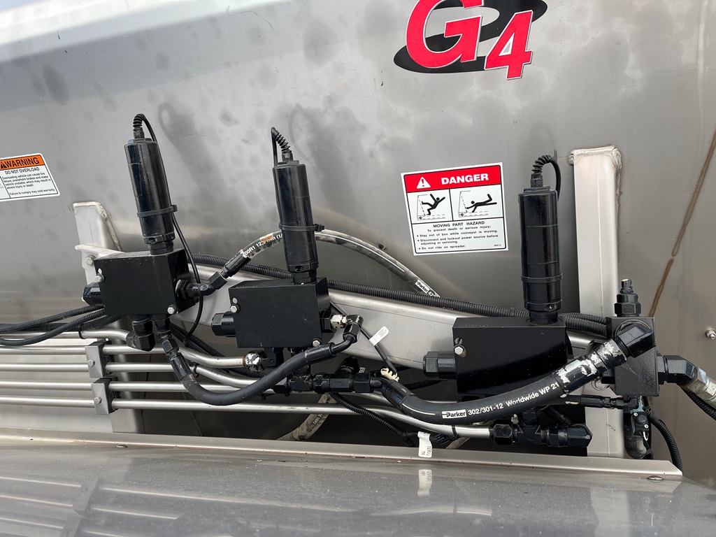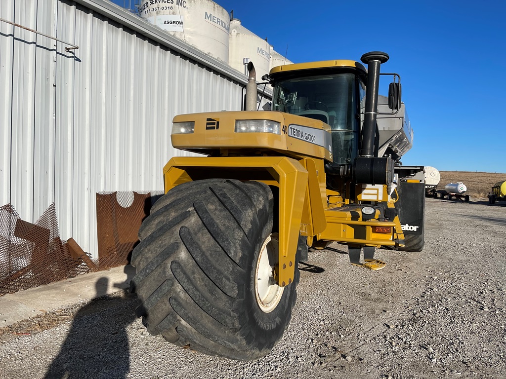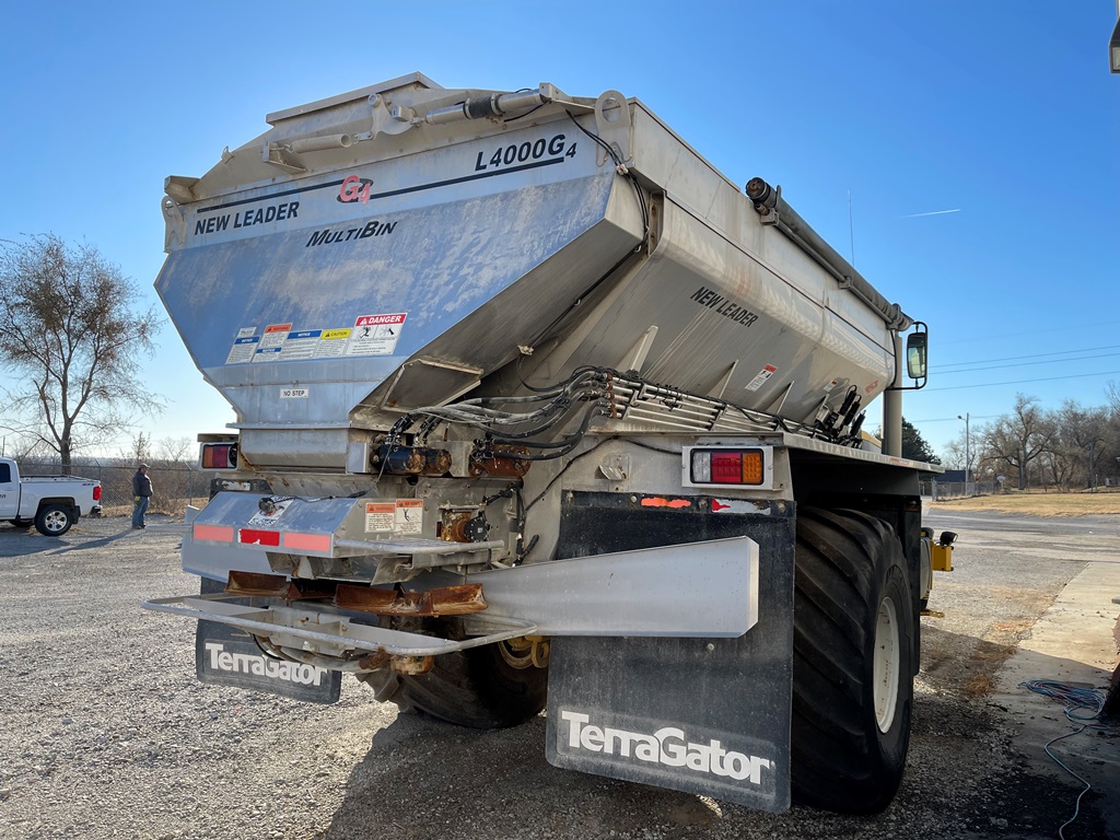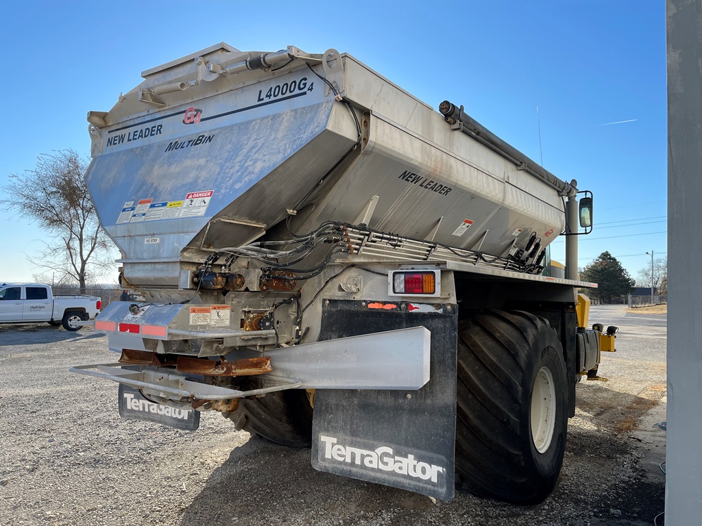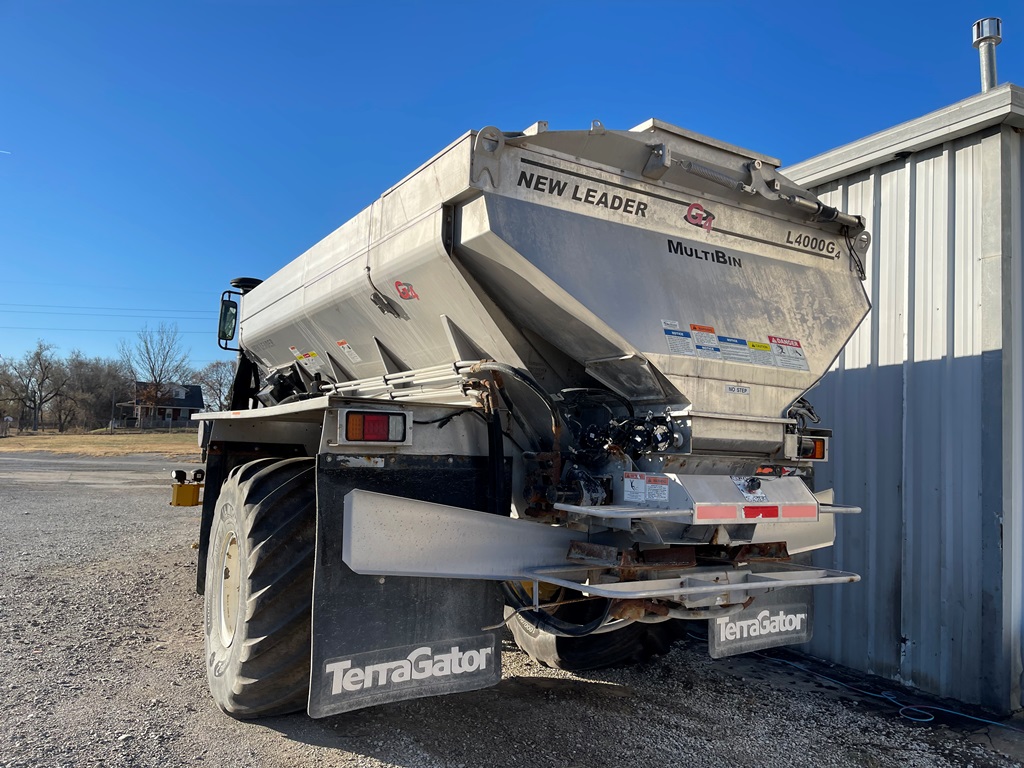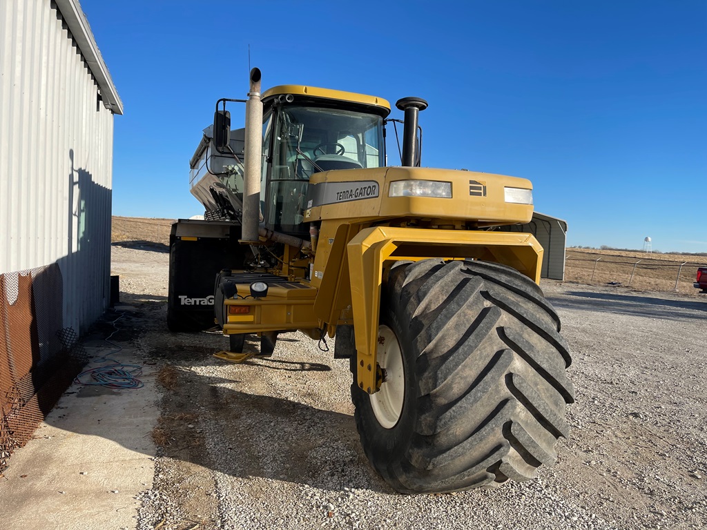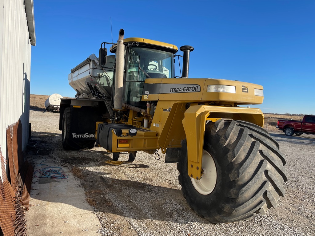 2009 Terra Gator 8203 Dry Floater (NP3354, Unit 115131), Cat C9 Acert diesel engine, Terra Shift transmission, heat, air conditioning, Am/Fm radio, air ride cab, New Leader Model 147630 - 14' stainless steel dry spreader box (S/N 411120), New Leader stainless steel MultApplier insert, New Leader L4000 G4 MultiBin - 8' (S/N 411122), dual spinners, hydraulic, Agri-Cover electric roll tarp, 1000/50R25 tires, OverView backup camera, Raven GPS, Raven Viper 4 monitor, shows 2,813 hours.