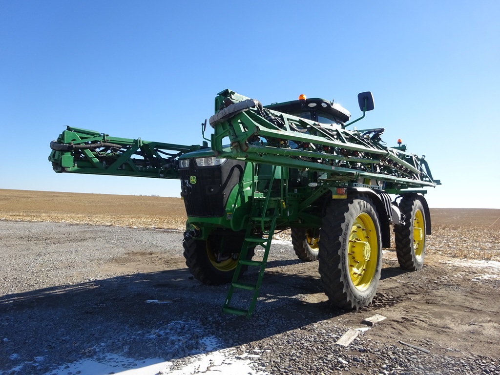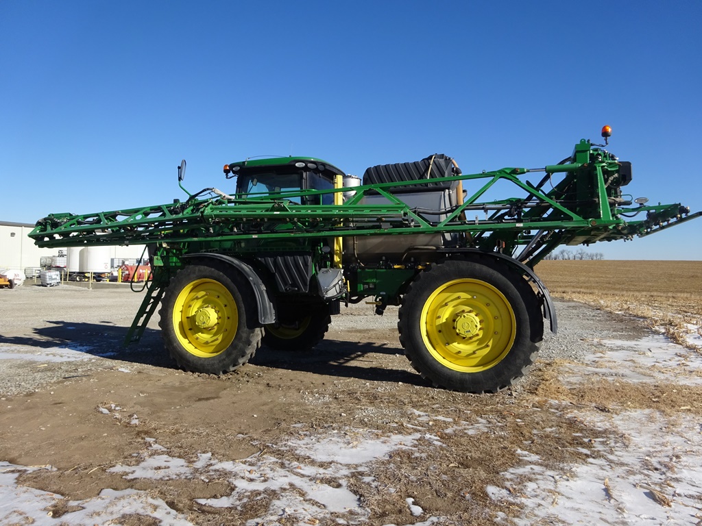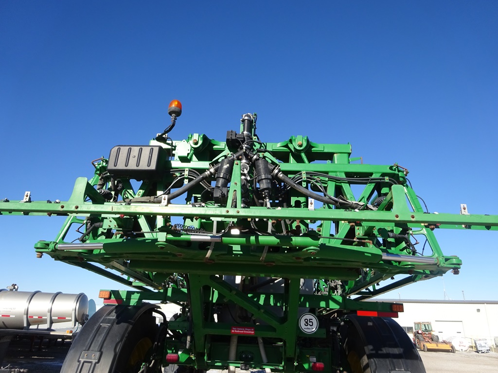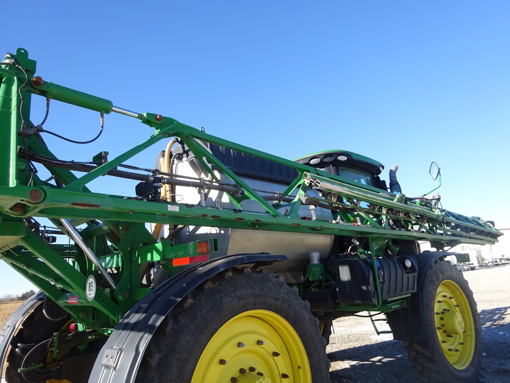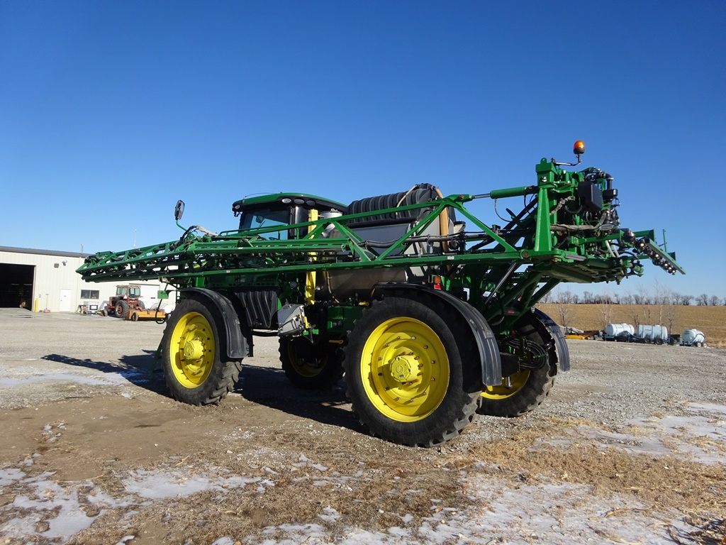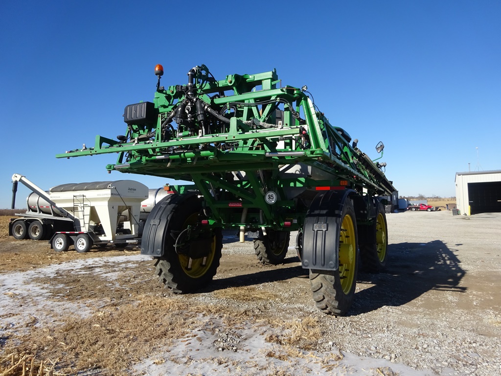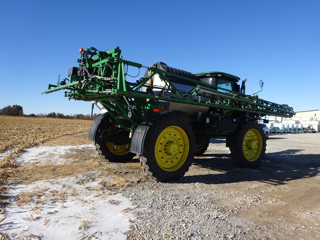 2019 John Deere R4045 Sprayer (PZ10073, Unit 112198), John Deere diesel engine (S/N RG6090U069340), hydrostatic transmission, air conditioning, heat, Am/Fm radio, leather seat, beacon lights, 1200 gallon stainless steel liquid system, 120' boom, automatic solution control, stainless steel chemical inductor, top poly rinse tank, front fill, Firestone Radial All Traction RC IF380/105R50 tires, fenders, shows 2,018 hours.