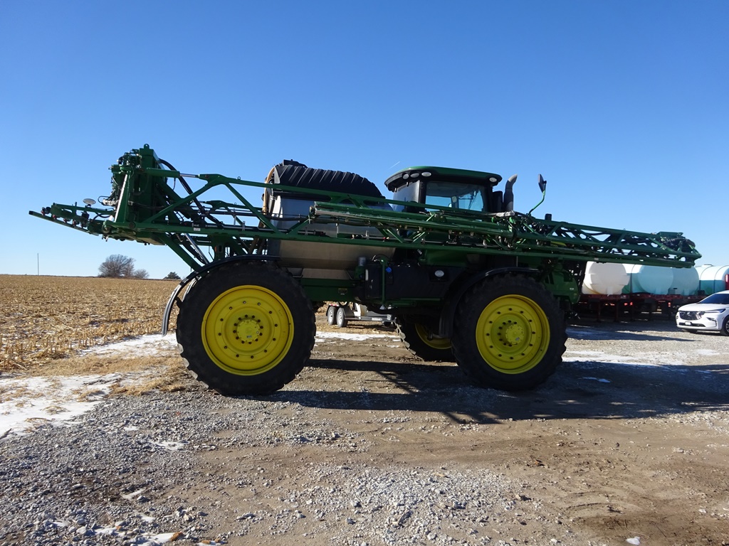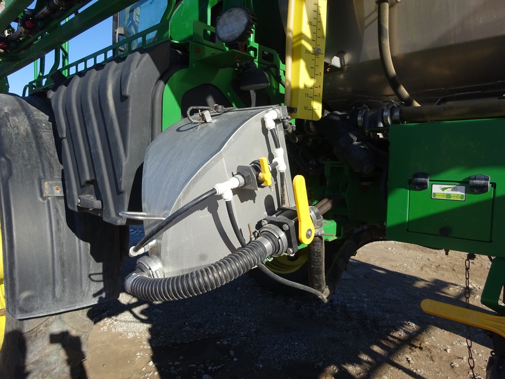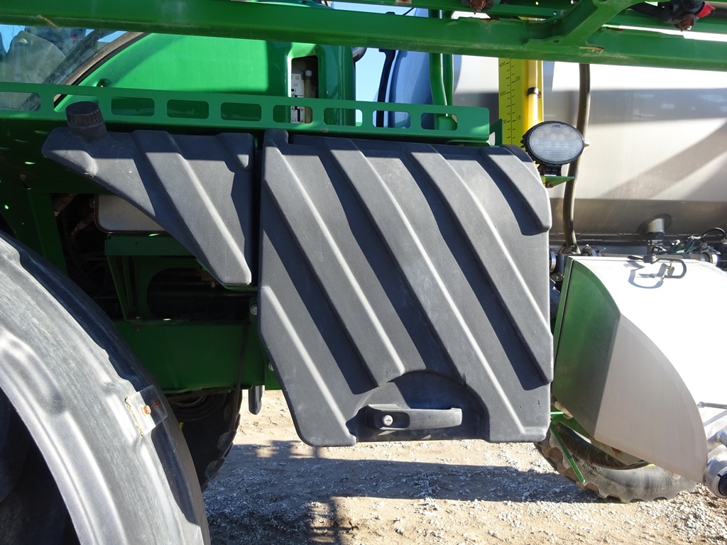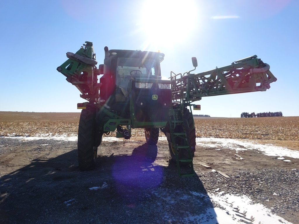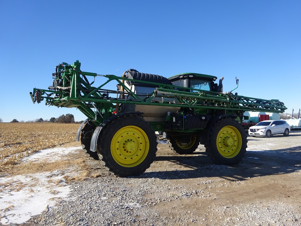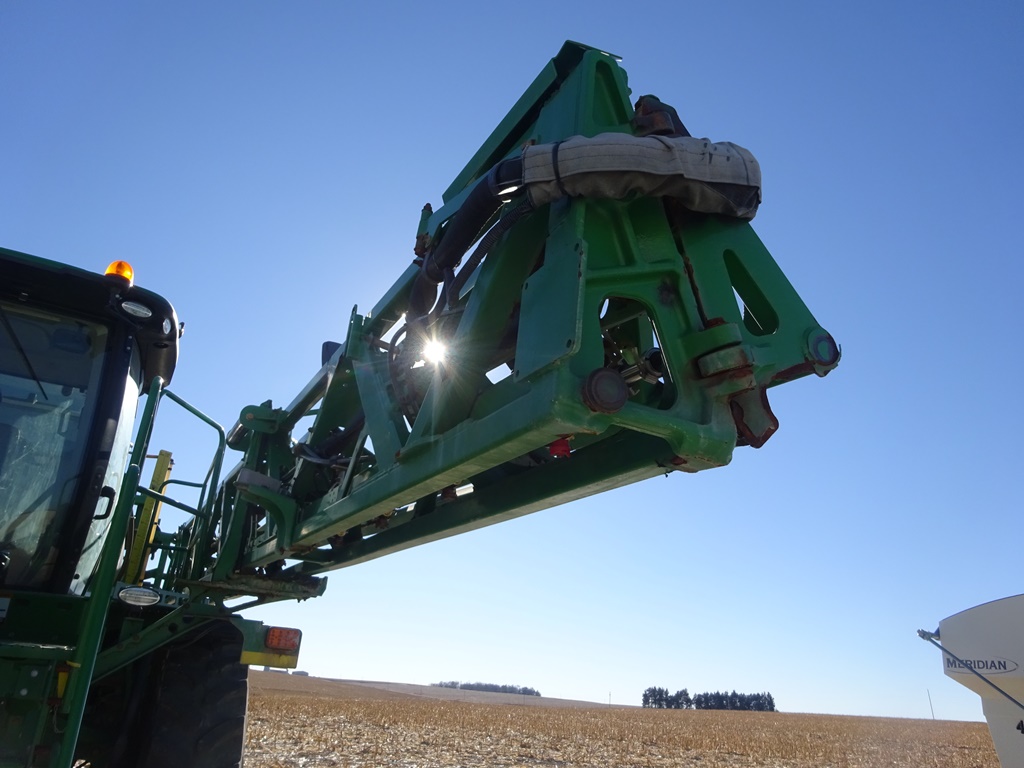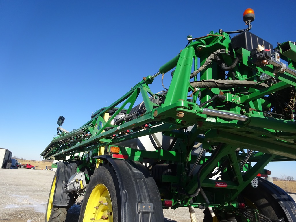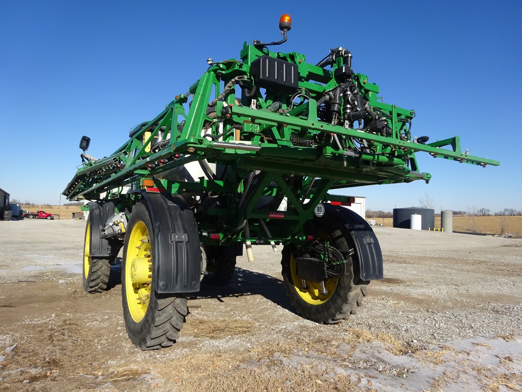 2019 John Deere R4045 Sprayer (PZ10073, Unit 112198), John Deere diesel engine (S/N RG6090U069340), hydrostatic transmission, air conditioning, heat, Am/Fm radio, leather seat, beacon lights, 1200 gallon stainless steel liquid system, 120' boom, automatic solution control, stainless steel chemical inductor, top poly rinse tank, front fill, Firestone Radial All Traction RC IF380/105R50 tires, fenders, shows 2,018 hours.