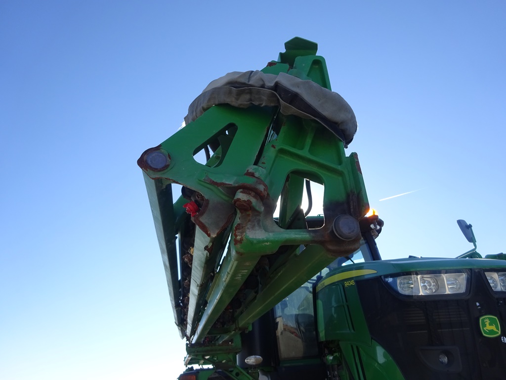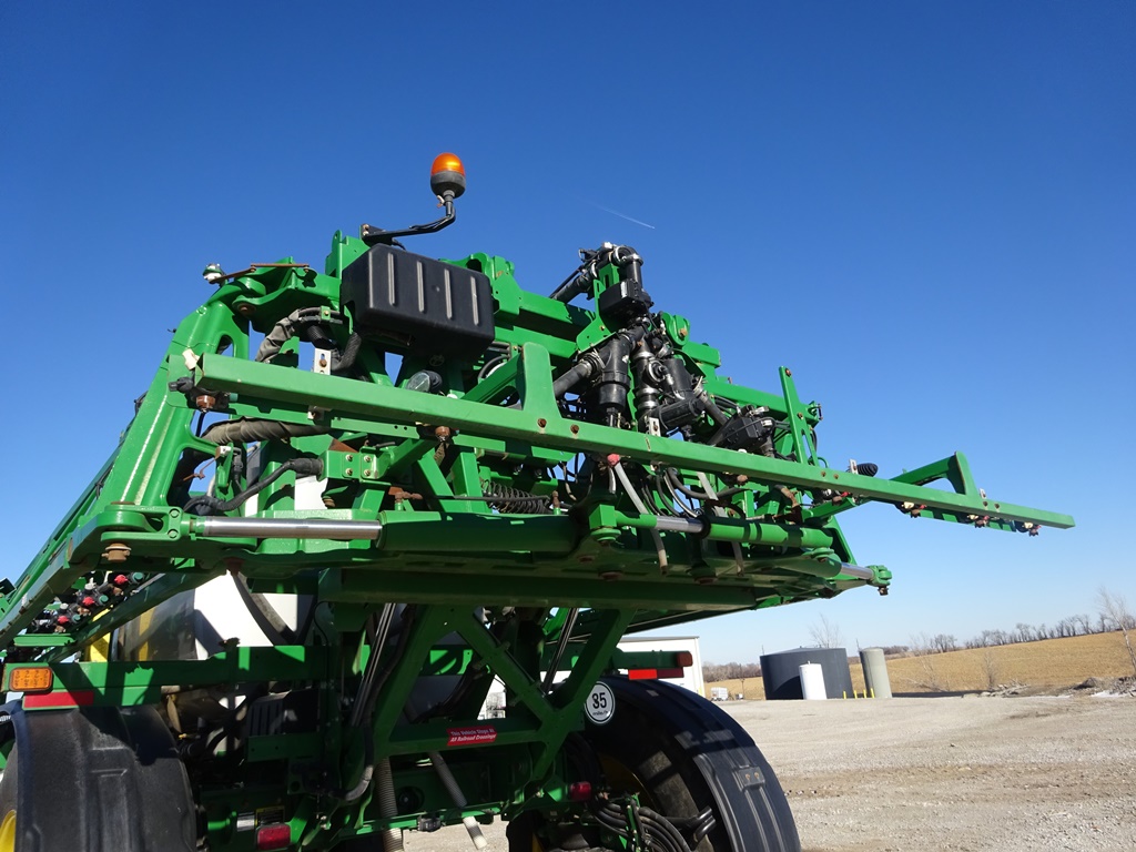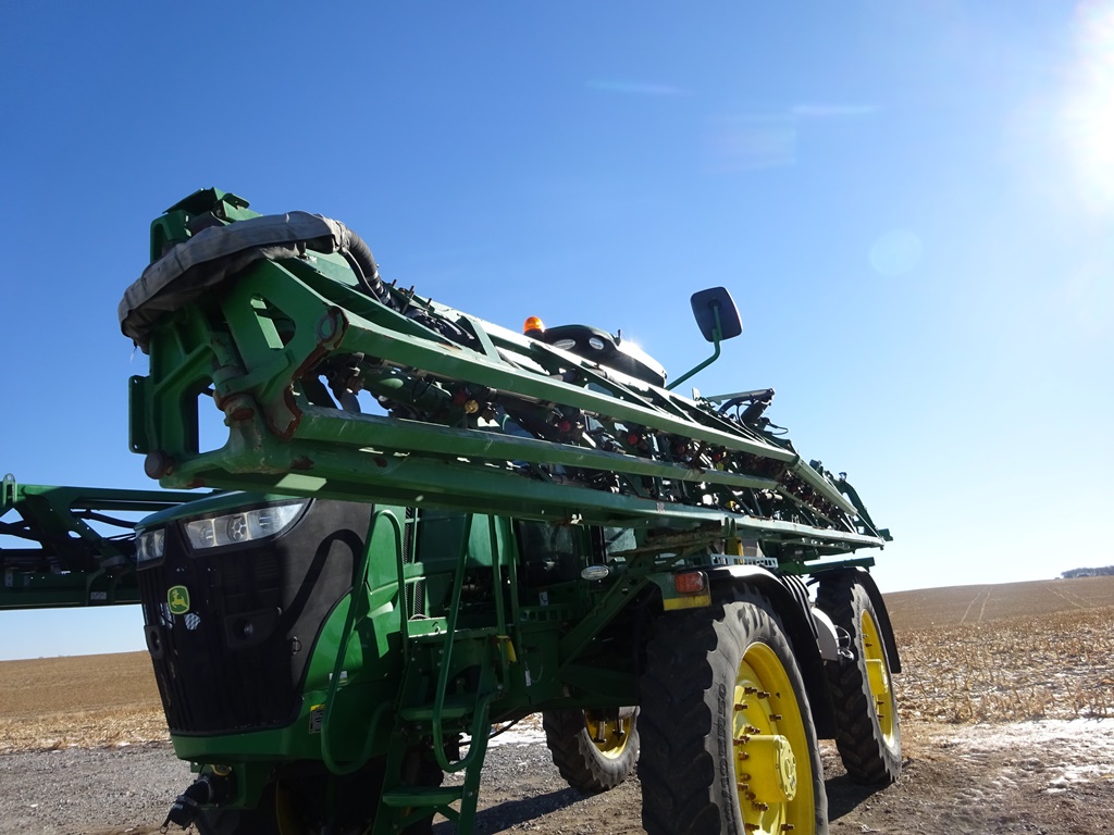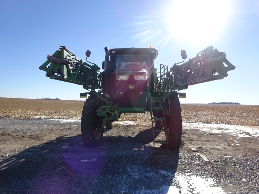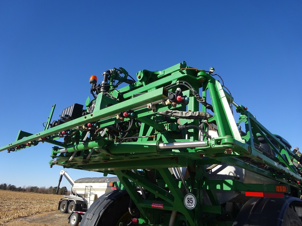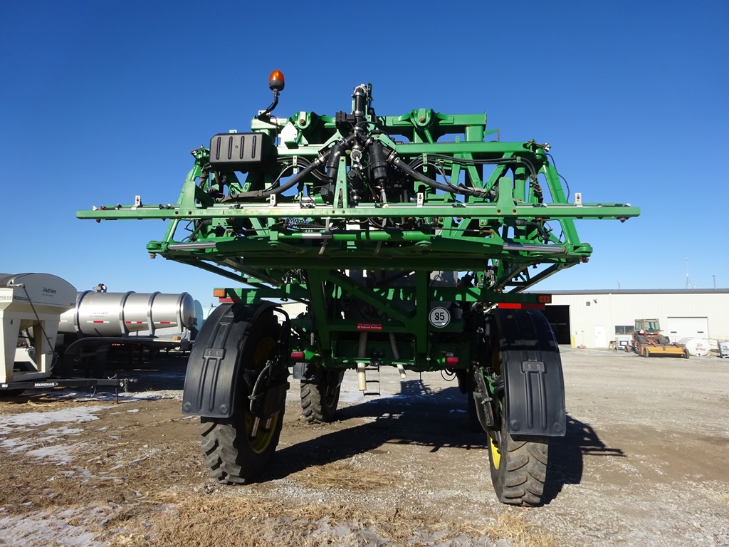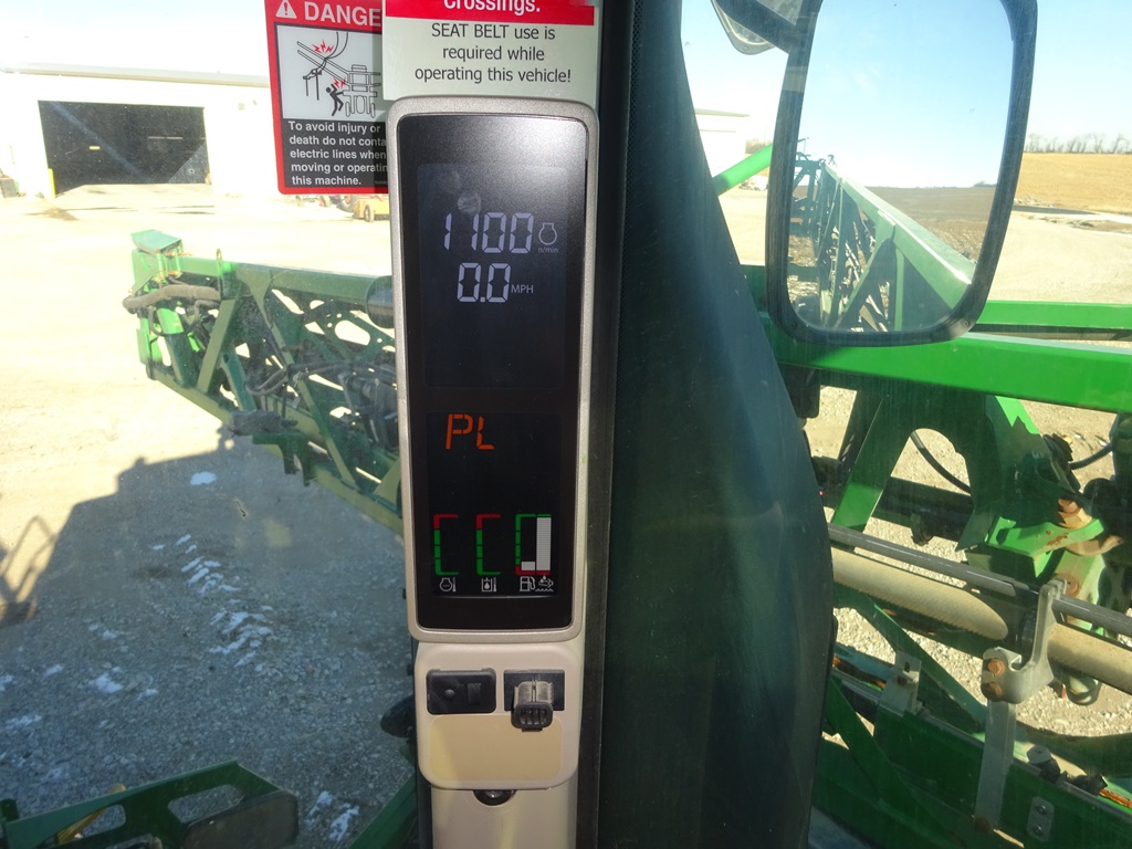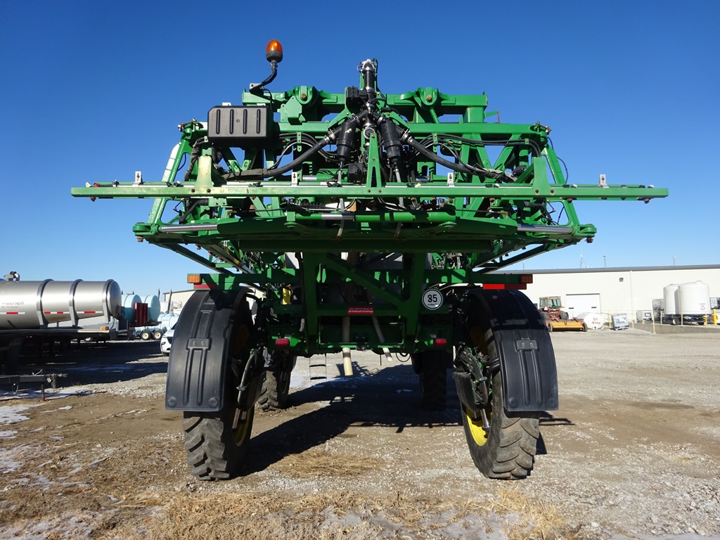 2019 John Deere R4045 Sprayer (PZ10073, Unit 112198), John Deere diesel engine (S/N RG6090U069340), hydrostatic transmission, air conditioning, heat, Am/Fm radio, leather seat, beacon lights, 1200 gallon stainless steel liquid system, 120' boom, automatic solution control, stainless steel chemical inductor, top poly rinse tank, front fill, Firestone Radial All Traction RC IF380/105R50 tires, fenders, shows 2,018 hours.