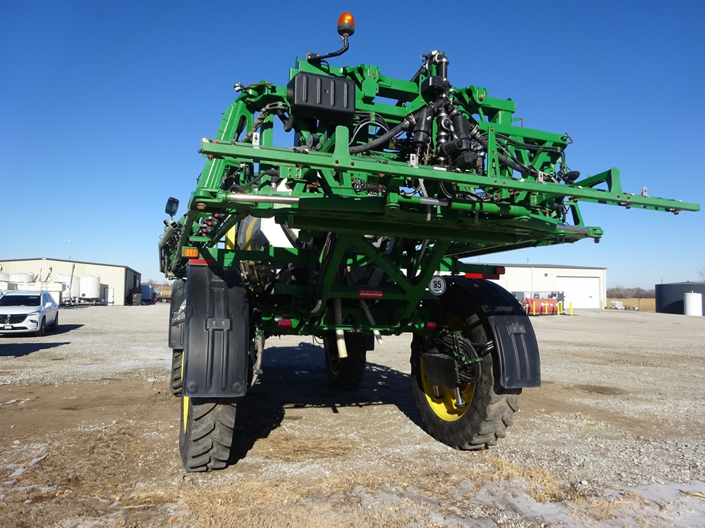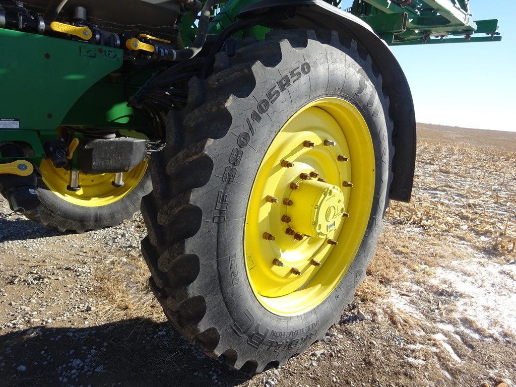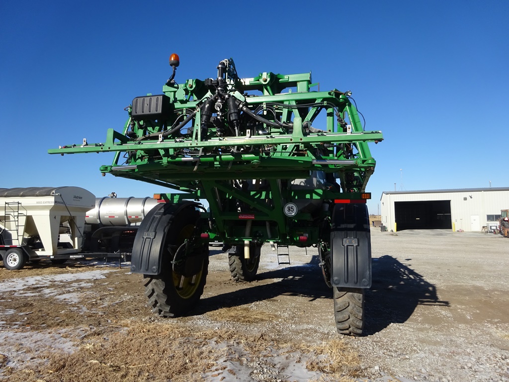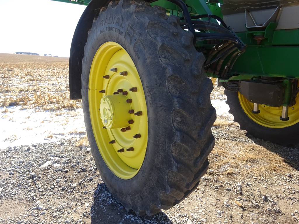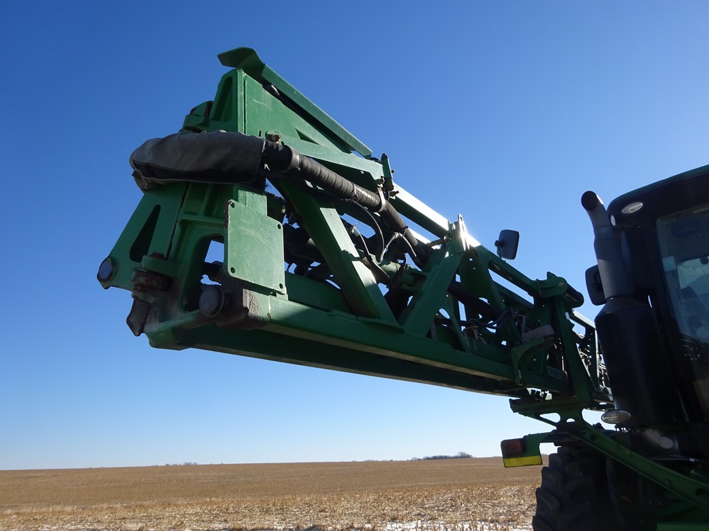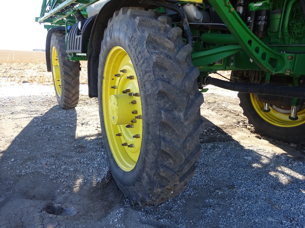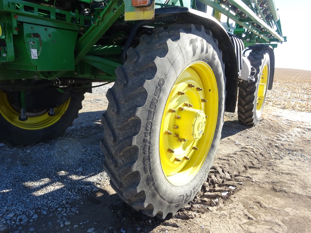 2019 John Deere R4045 Sprayer (PZ10073, Unit 112198), John Deere diesel engine (S/N RG6090U069340), hydrostatic transmission, air conditioning, heat, Am/Fm radio, leather seat, beacon lights, 1200 gallon stainless steel liquid system, 120' boom, automatic solution control, stainless steel chemical inductor, top poly rinse tank, front fill, Firestone Radial All Traction RC IF380/105R50 tires, fenders, shows 2,018 hours.