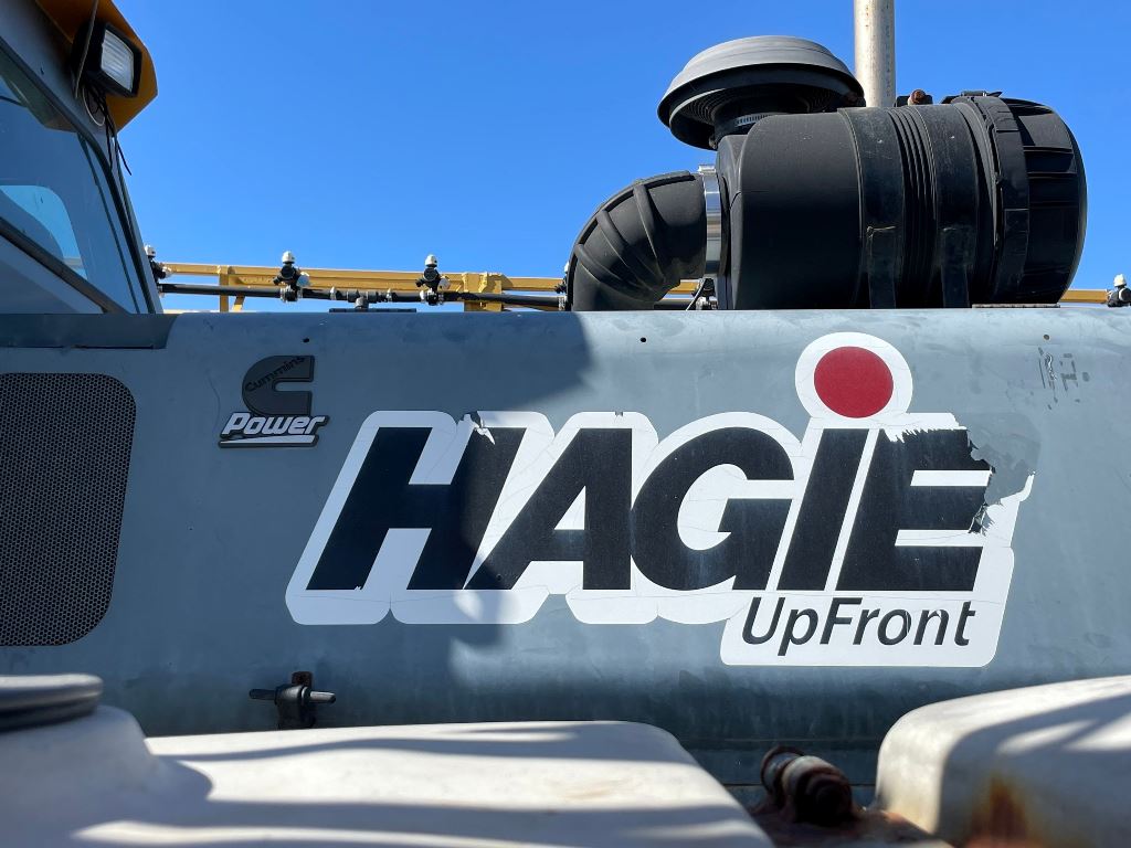 2007 Hagie Sprayer (GP1901, Unit 116069), Cummins 5.9L diesel engine, hydrostatic transmission, air conditioning, heat, Am/Fm radio, 2 - 400 gallon poly liquid tanks, 80' boom, stainless steel foam marker tank, 5 gallon air tank, Firestone Radial 9000 320/85R34 tires, Raven SCS460 monitor, lightbar, shows 3,658 hours.
