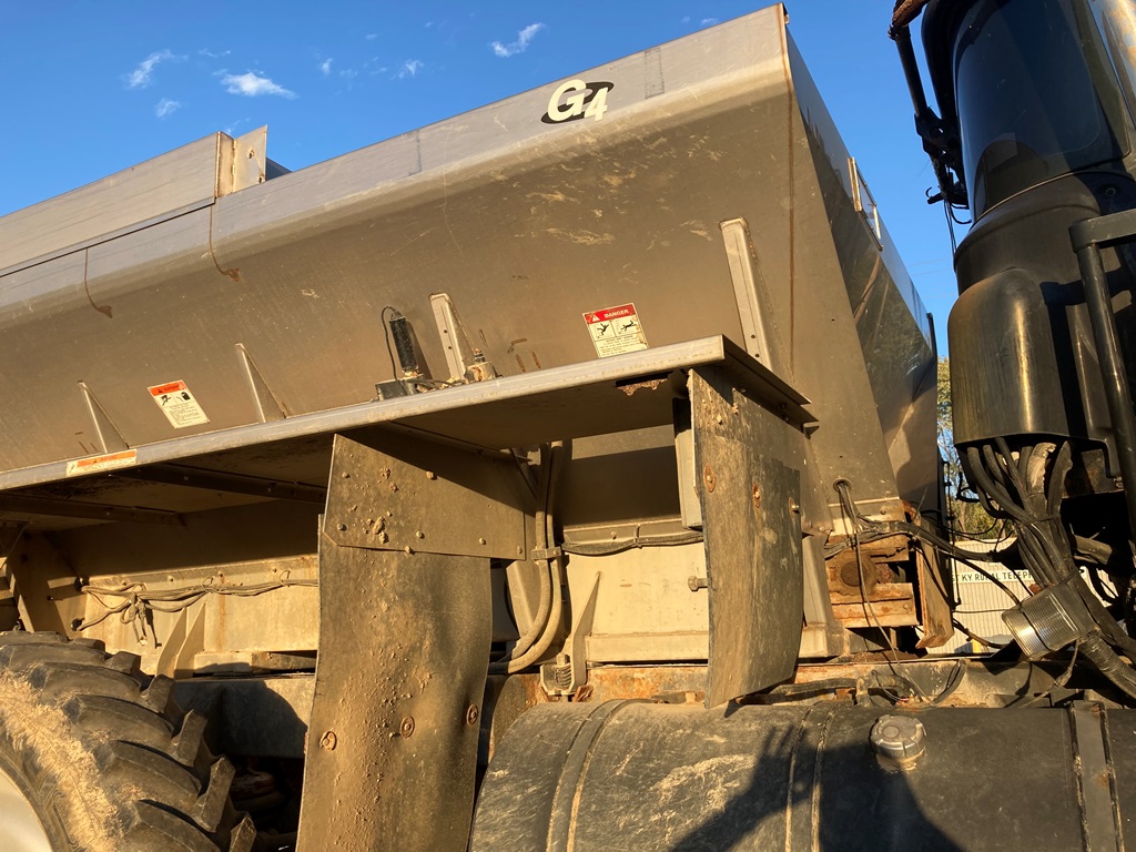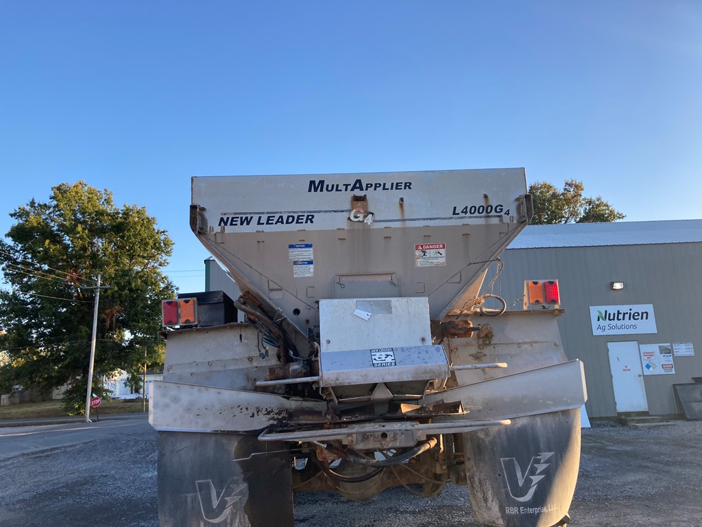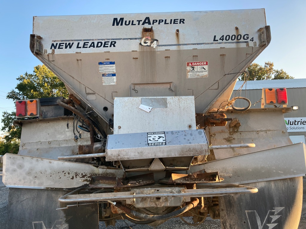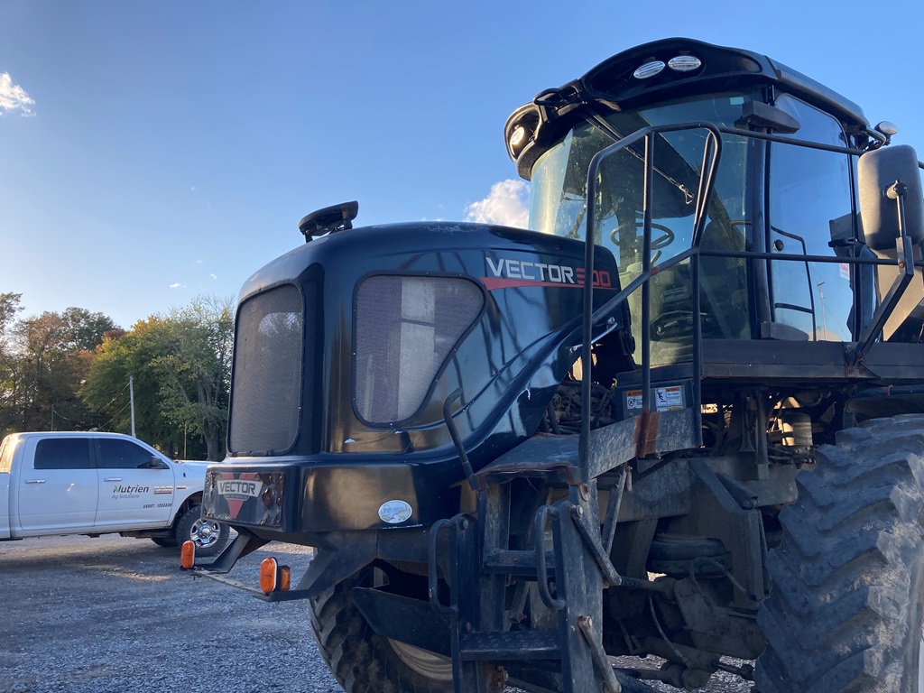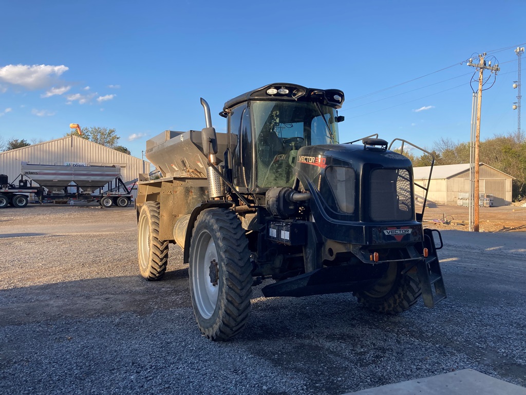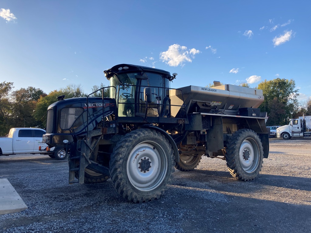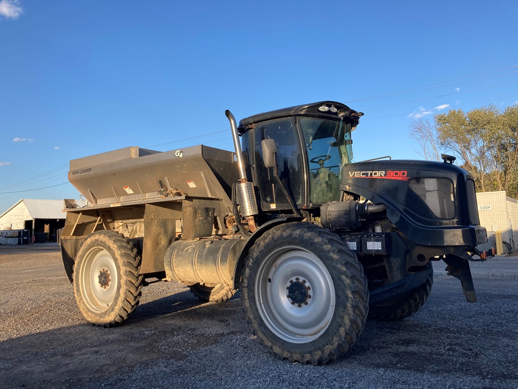 2014 Vector 300 Dry Machine (JY0348, Unit 31681), Cummins diesel engine, Allison automatic transmission, air conditioning, heat, Am/Fm CD radio, New Leader L4000 G4 - 13' MultApplier stainless steel dry spreader box (S/N 138357), twin spinner, all hydraulic, New Leader stainless steel insert (Insert is not hooked up), Michelin Spraybib VF380/90R46 tires, fenders, Cab camera, lightbar, Raven Viper Pro monitor, auto steer, shows 4,500 hours.