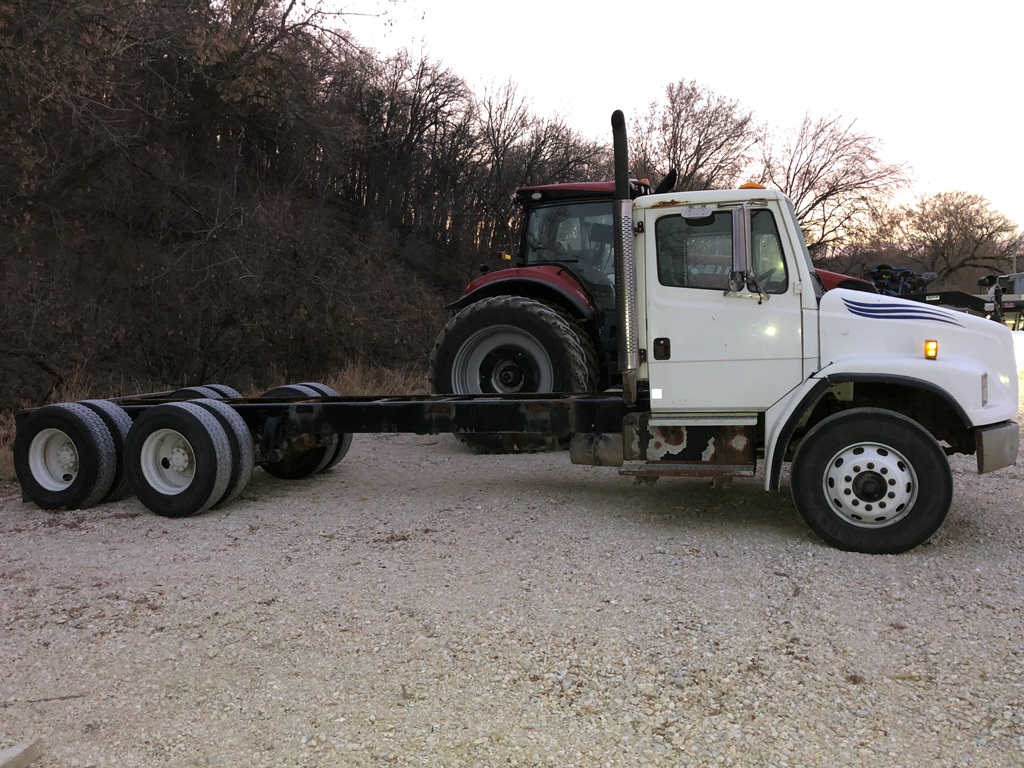 2001 Freightliner FL80 Truck (PZ10090, Unit 64), Cummins 285 hp diesel engine, Eaton Fuller 10 speed transmission, air condtioning, heat, Am/Fm radio, tandem axle, full screw, air ride suspension, 18,000 lb front axle, 40,000 lb rear axle, 4.88 ratio, double frame, Chelsea PTO, approx. 387,000 miles.