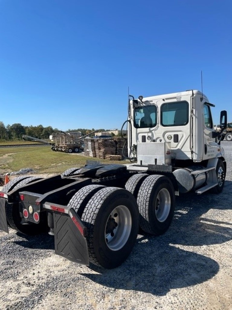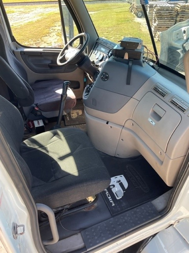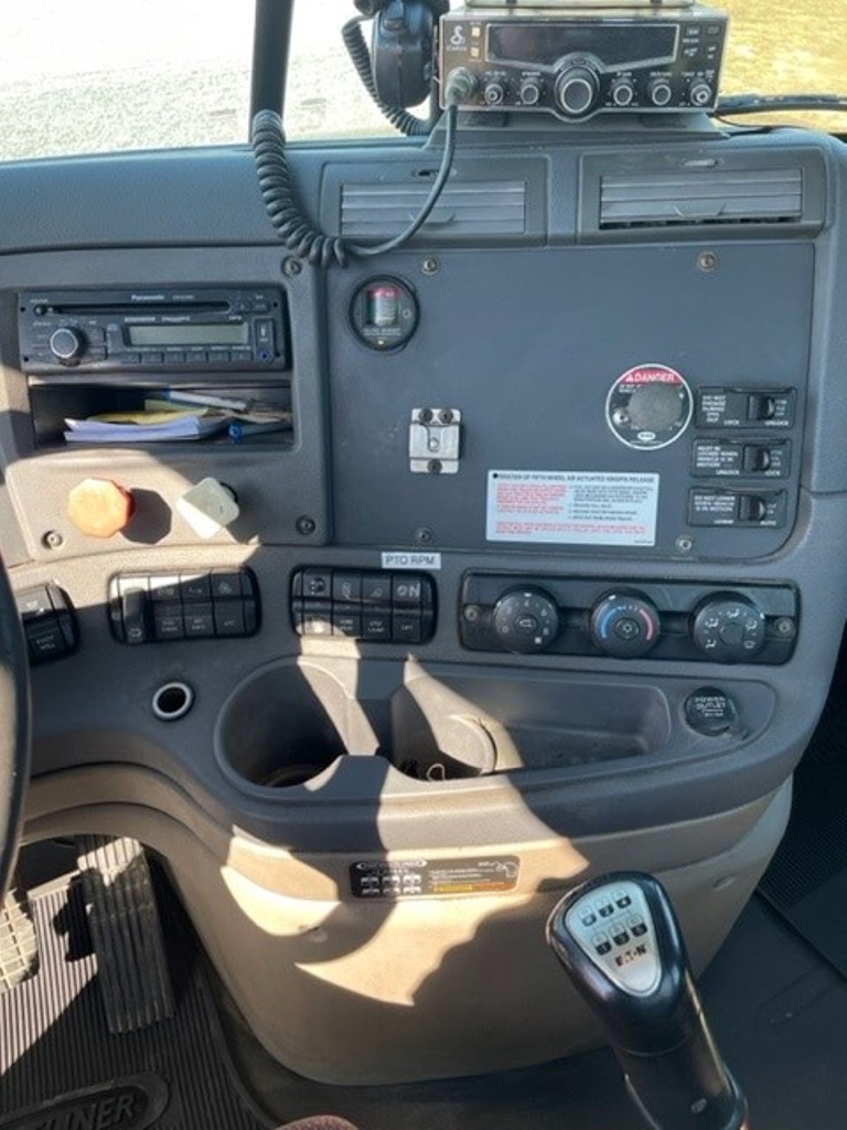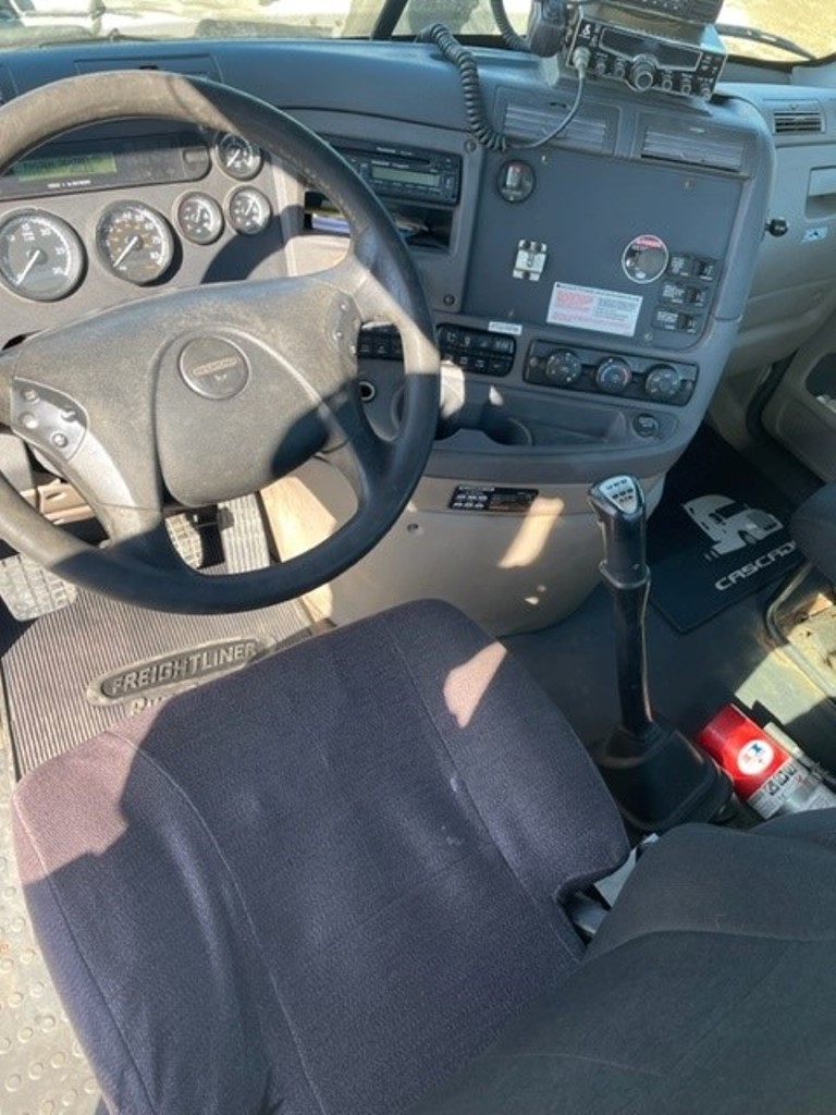 2010 Freightliner Cascadia Day Cab Truck (PZ10097, Unit 101809), Detroit DD13 diesel engine, Eaton Fuller 10 speed transmission, air conditioning, heat, Am/Fm CD radio, cruise control, engine brake, tandem axle, full screw, air ride suspension, 5th wheel, wet kit, aluminum rims, shows 645,882 miles.
