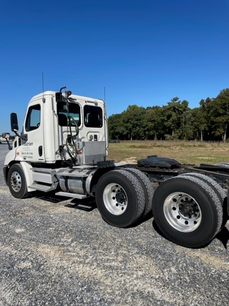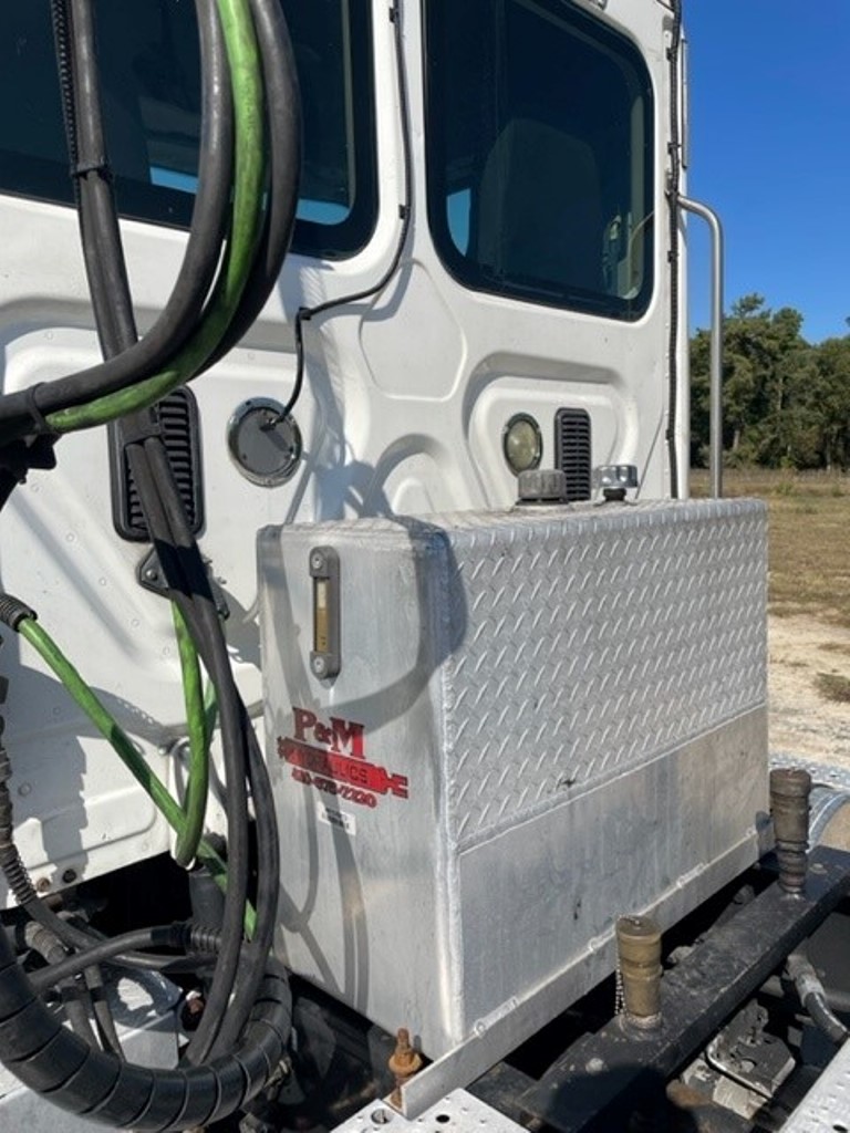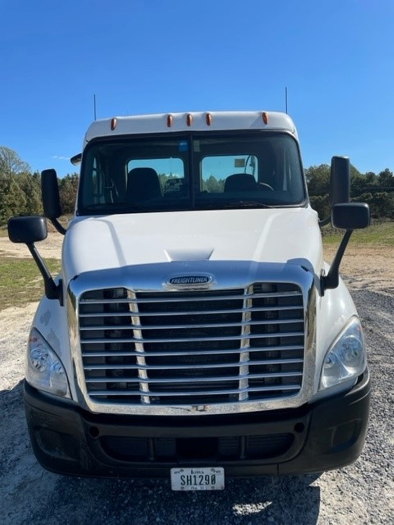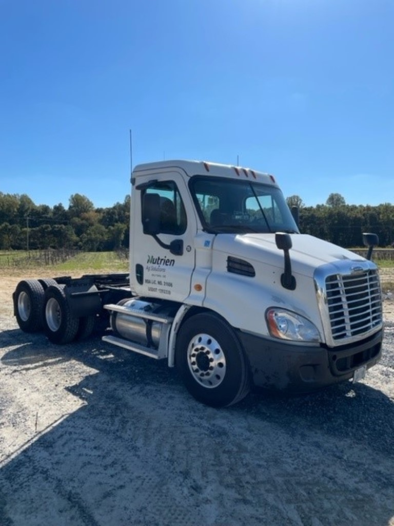 2010 Freightliner Cascadia Day Cab Truck (PZ10097, Unit 101809), Detroit DD13 diesel engine, Eaton Fuller 10 speed transmission, air conditioning, heat, Am/Fm CD radio, cruise control, engine brake, tandem axle, full screw, air ride suspension, 5th wheel, wet kit, aluminum rims, shows 645,882 miles.