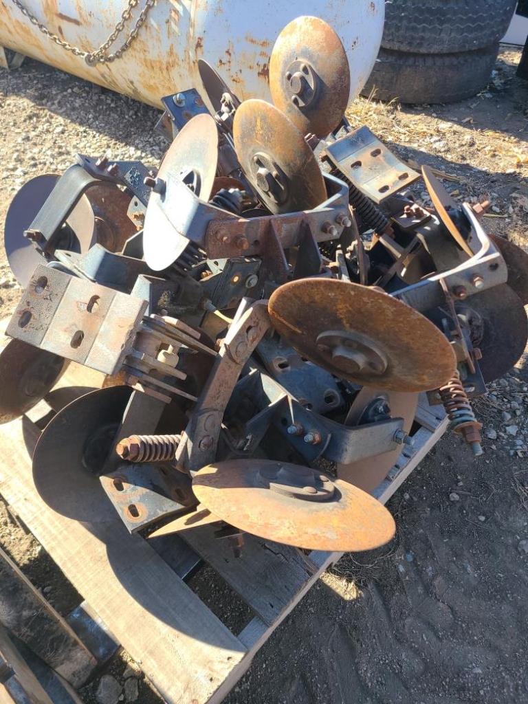 Tool Bar Closers (DR3599), pallet lot of (13) Yetter Nh3 tool bar closing discs, notched and smooth double disc sealers.