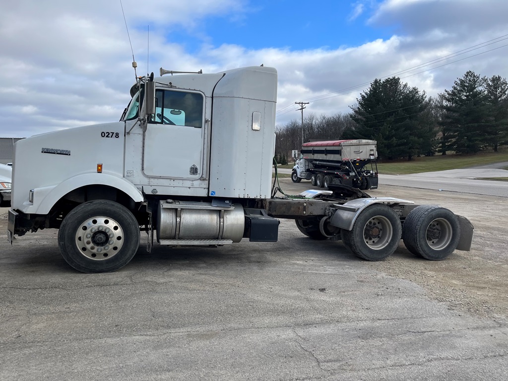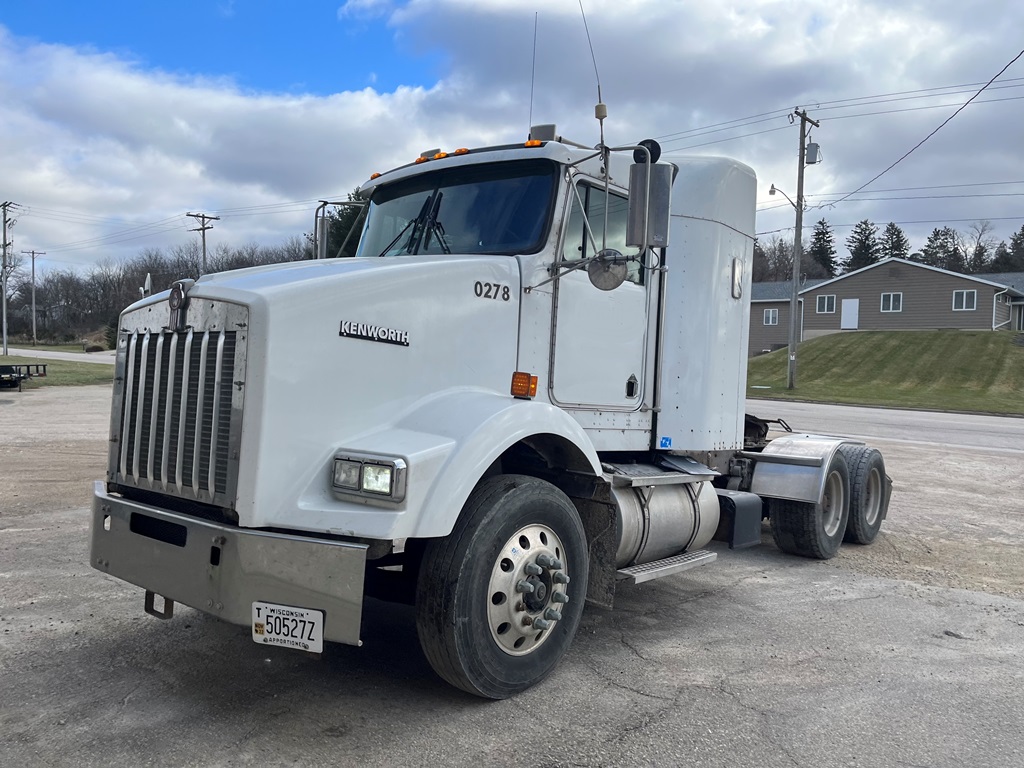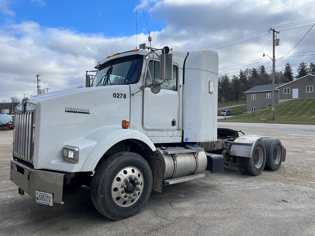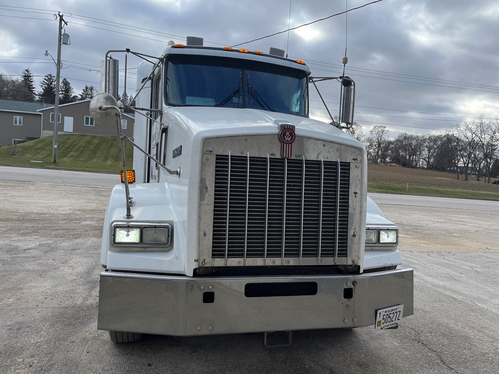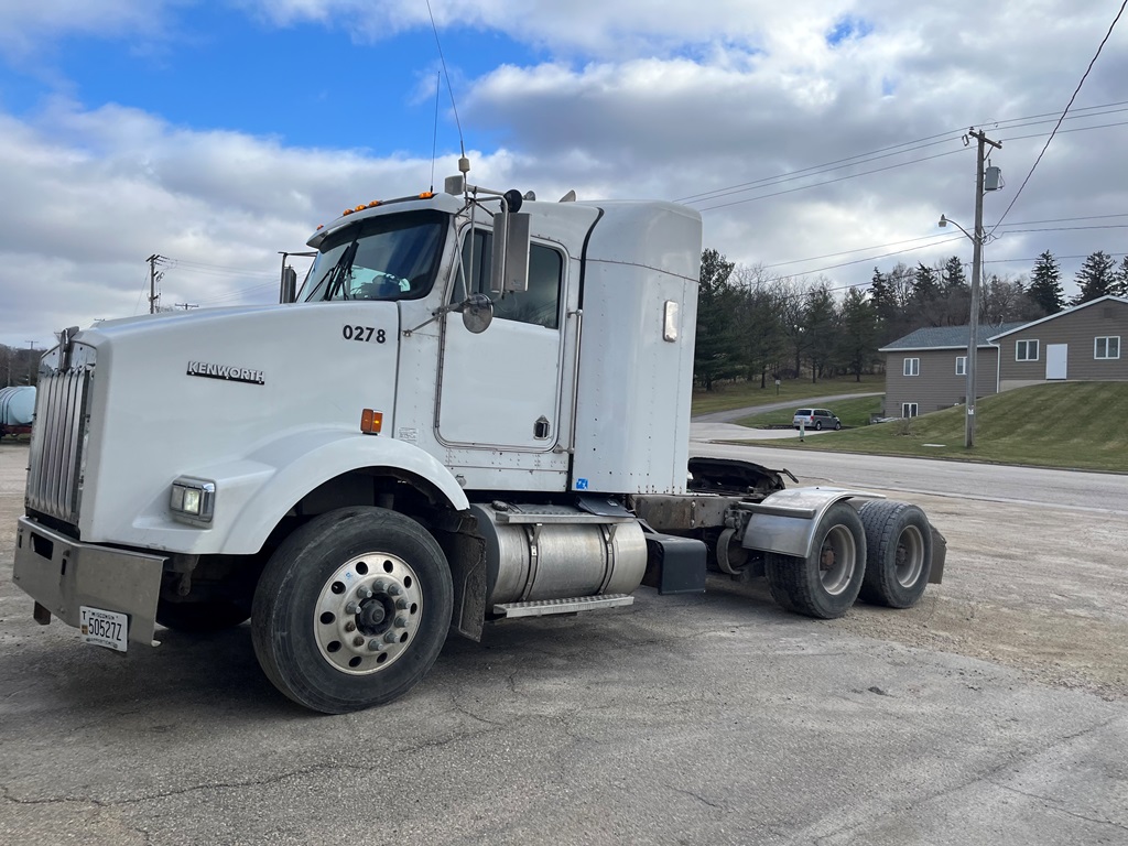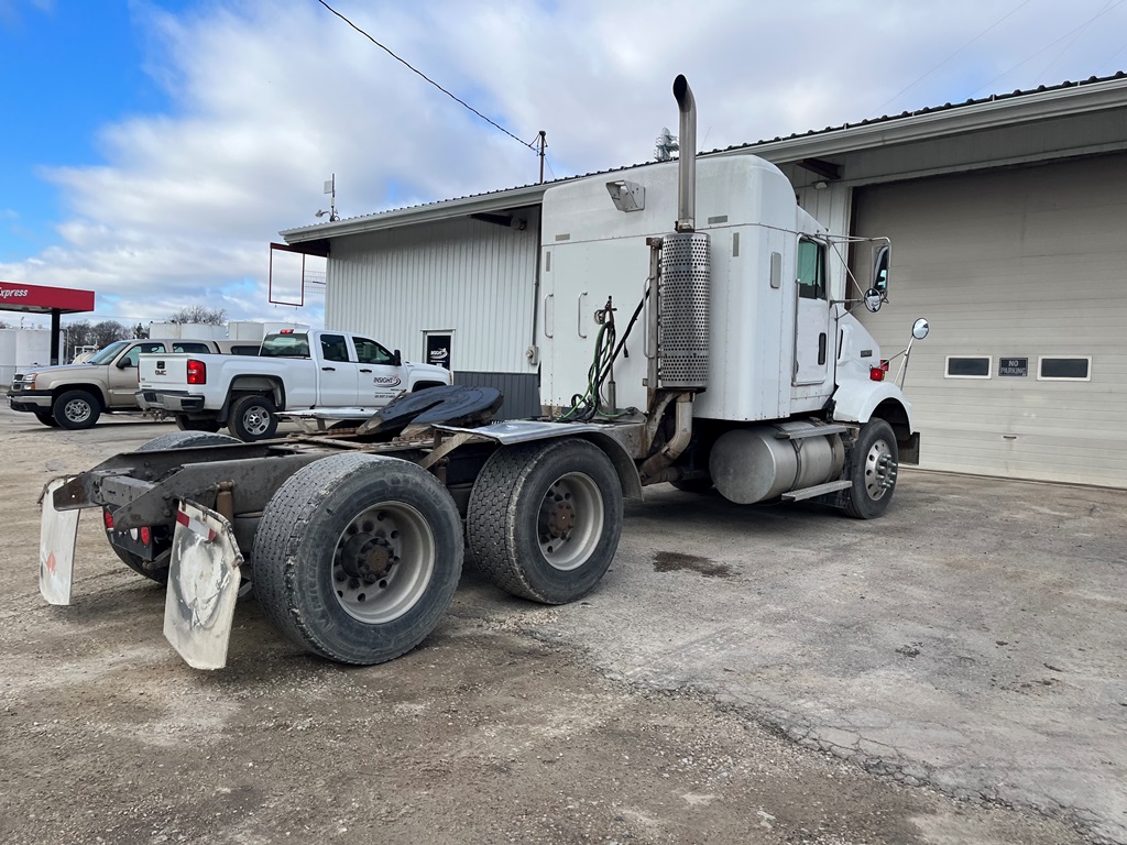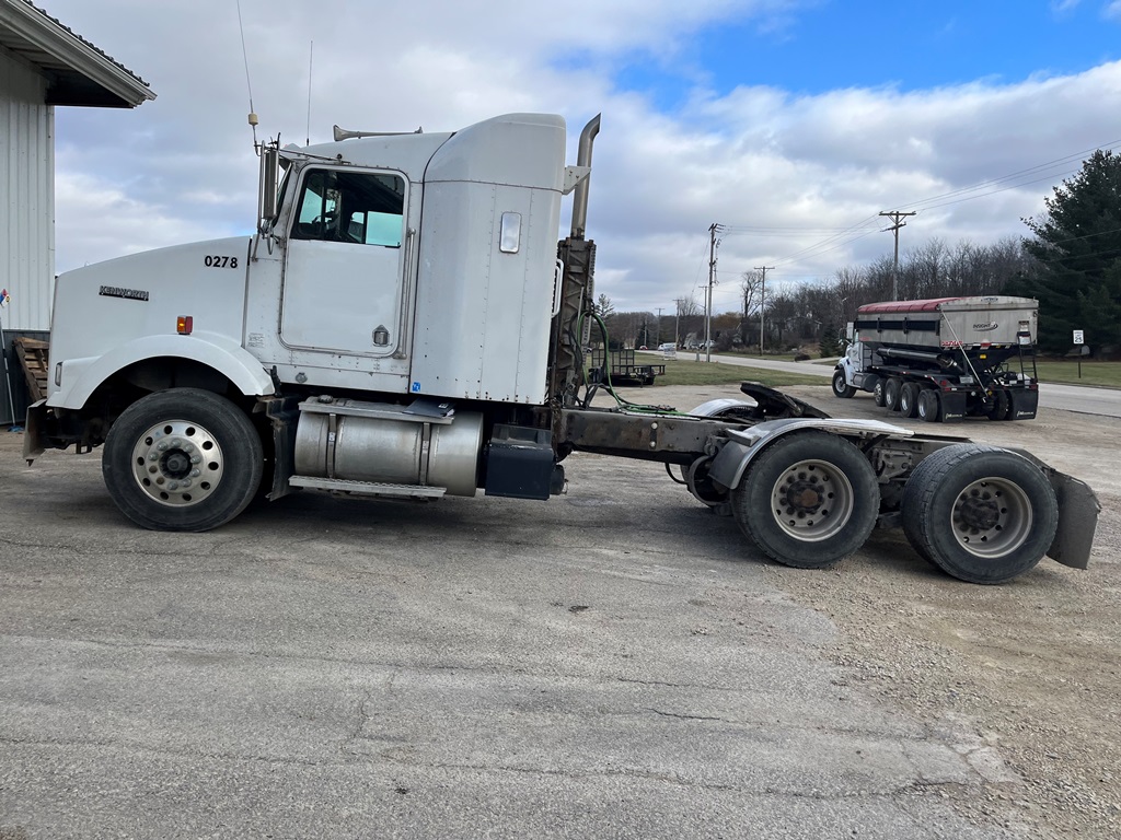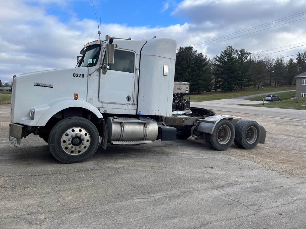 2005 Kenworth T800 Truck (DR3567 Unit 0278), Cat diesel engine, 10 speed transmission, tandem axle full screw, air ride suspension, short bunk mid roof sleeper, air slide 5th wheel plate, stainless steel quarter fenders, dual aluminum fuel tanks, engine brake, cruise control, 445/50R22.5 super single tires, aluminum wheels, shows 305,787 miles.