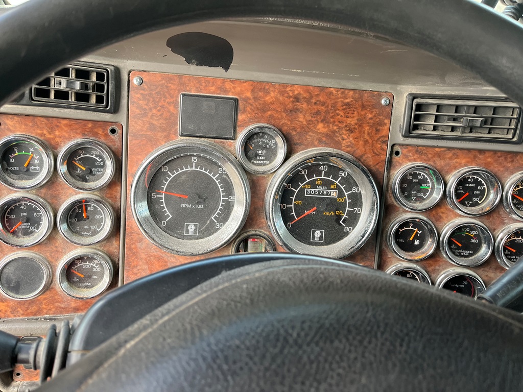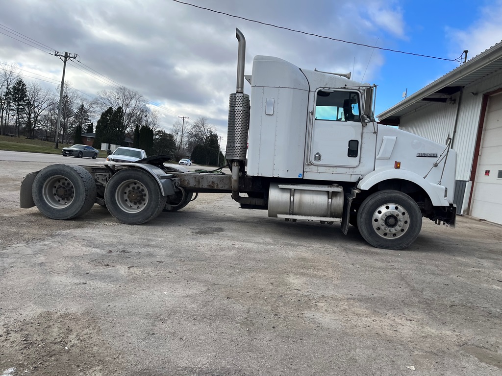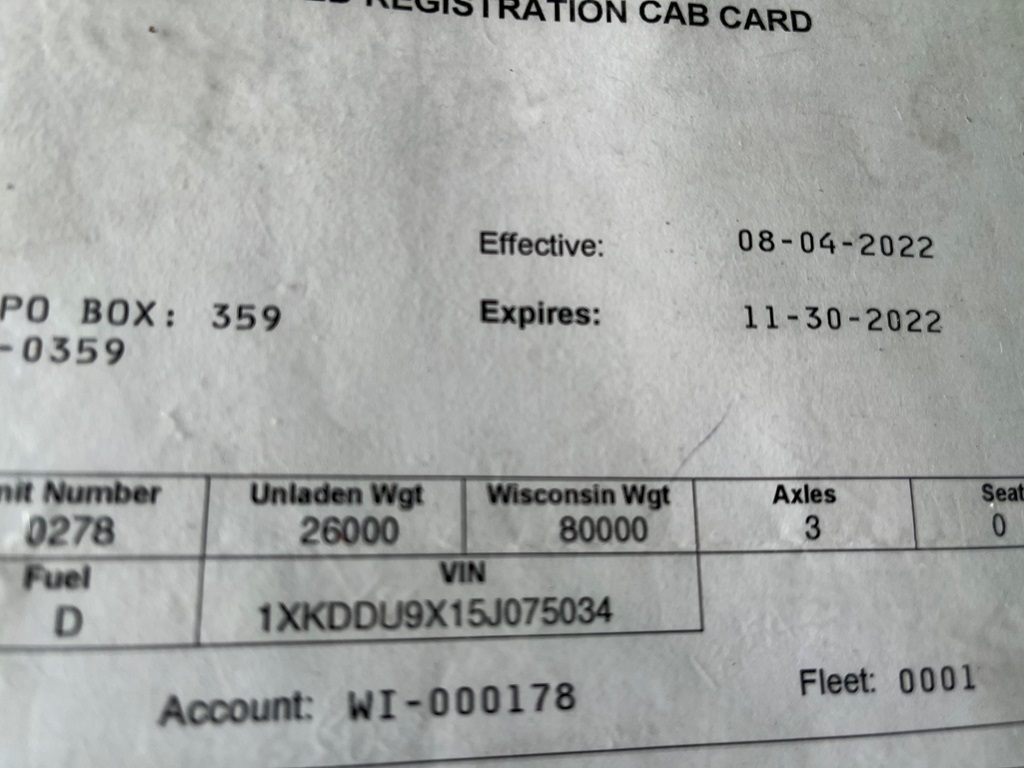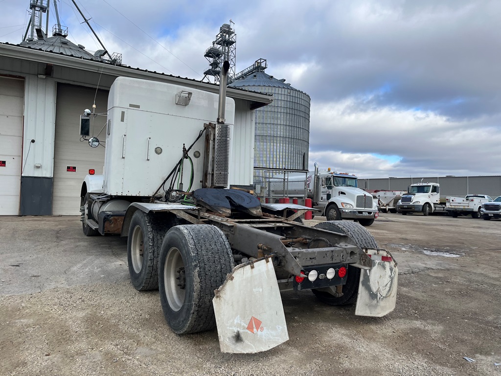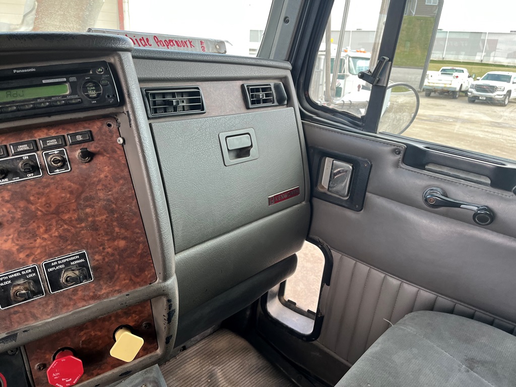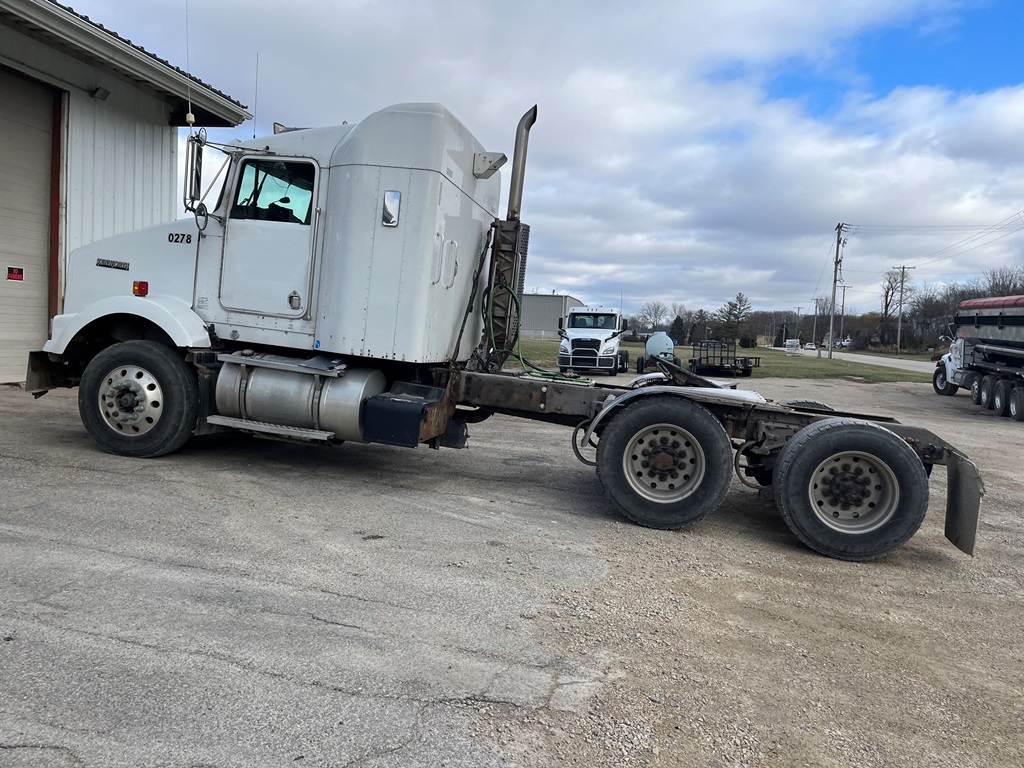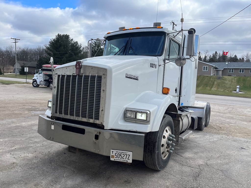 2005 Kenworth T800 Truck (DR3567 Unit 0278), Cat diesel engine, 10 speed transmission, tandem axle full screw, air ride suspension, short bunk mid roof sleeper, air slide 5th wheel plate, stainless steel quarter fenders, dual aluminum fuel tanks, engine brake, cruise control, 445/50R22.5 super single tires, aluminum wheels, shows 305,787 miles.
