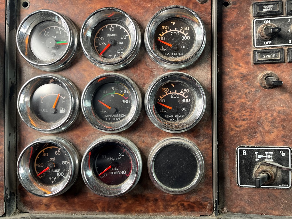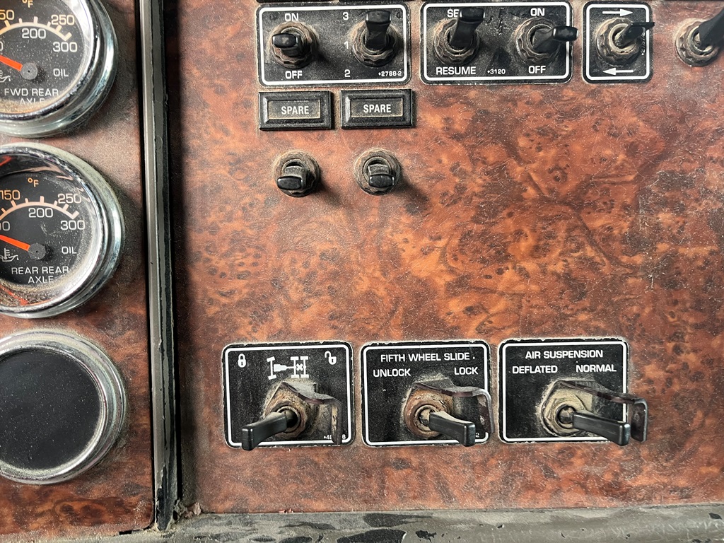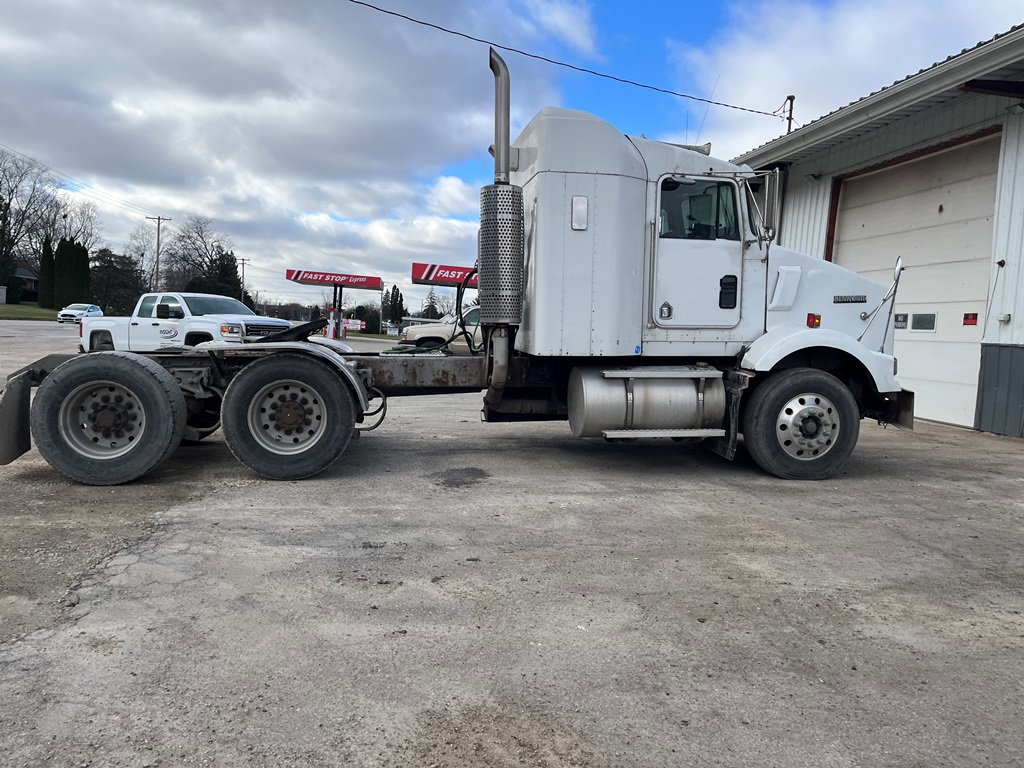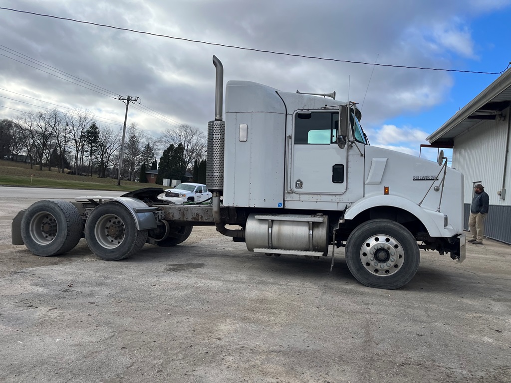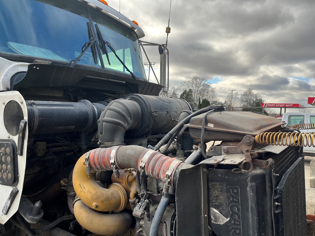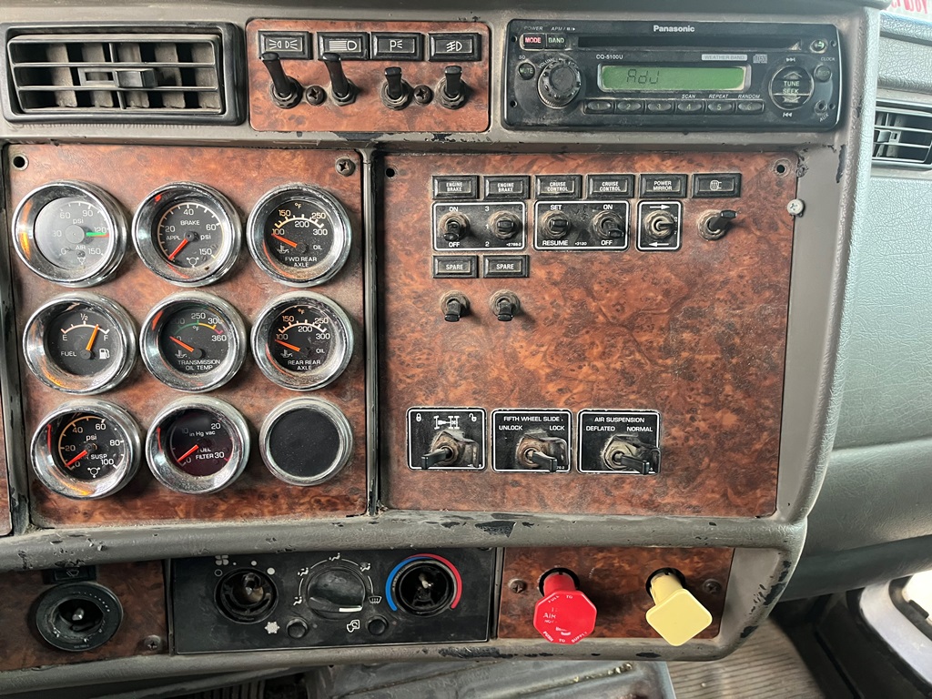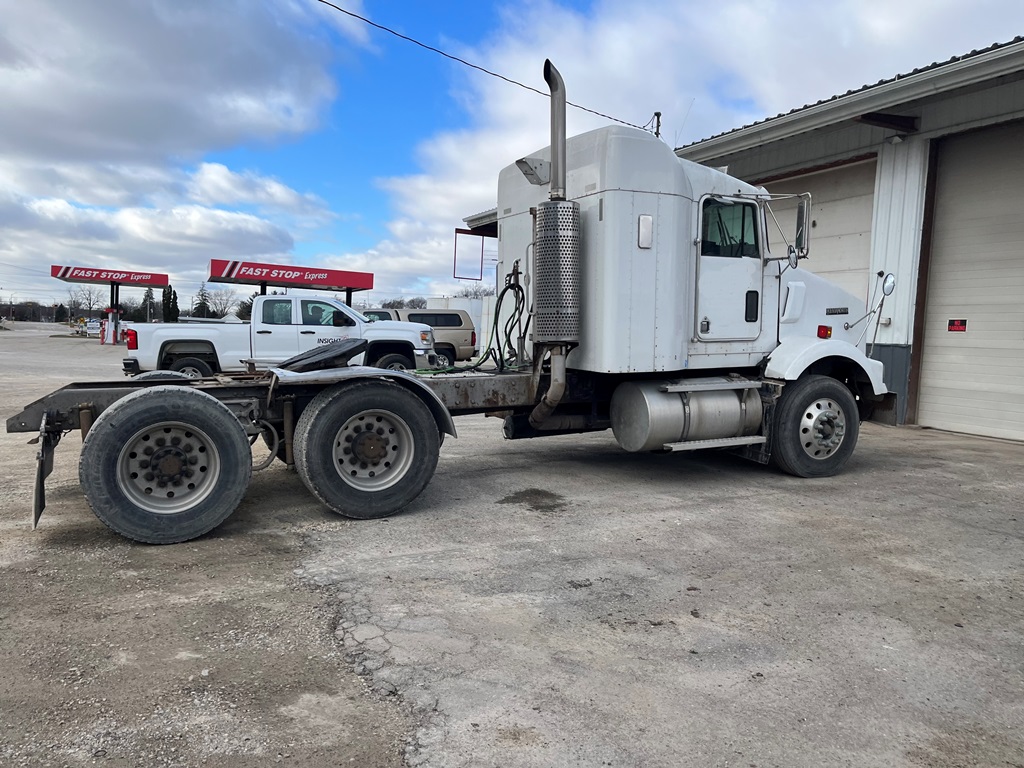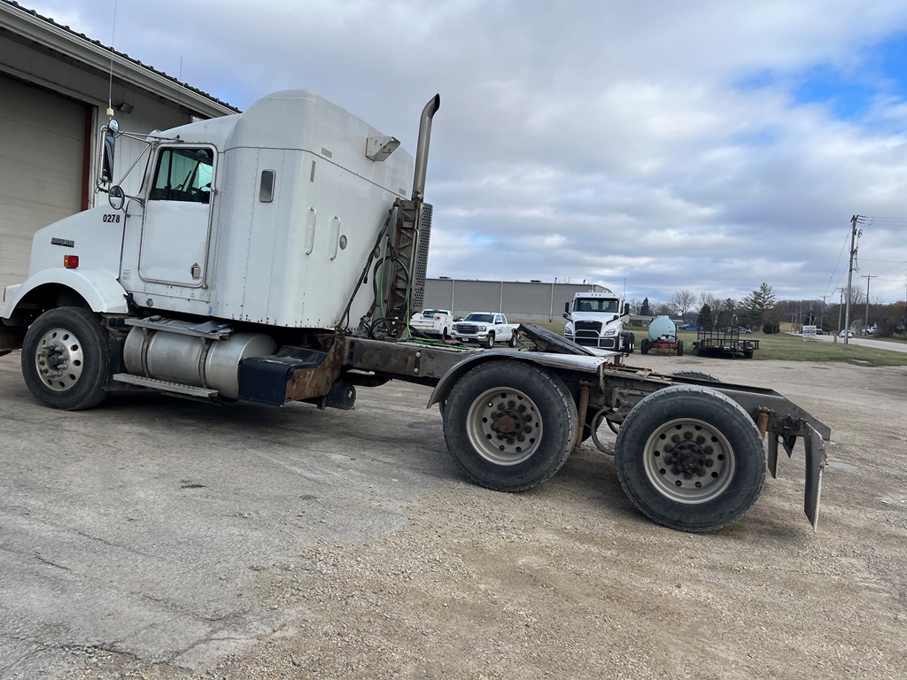 2005 Kenworth T800 Truck (DR3567 Unit 0278), Cat diesel engine, 10 speed transmission, tandem axle full screw, air ride suspension, short bunk mid roof sleeper, air slide 5th wheel plate, stainless steel quarter fenders, dual aluminum fuel tanks, engine brake, cruise control, 445/50R22.5 super single tires, aluminum wheels, shows 305,787 miles.