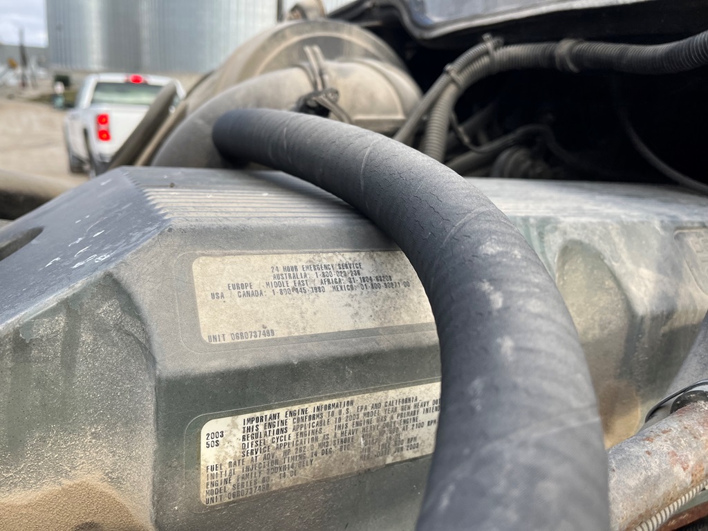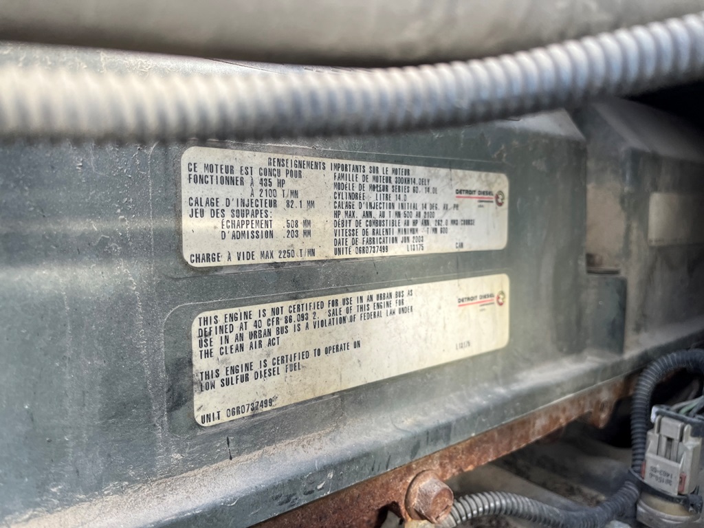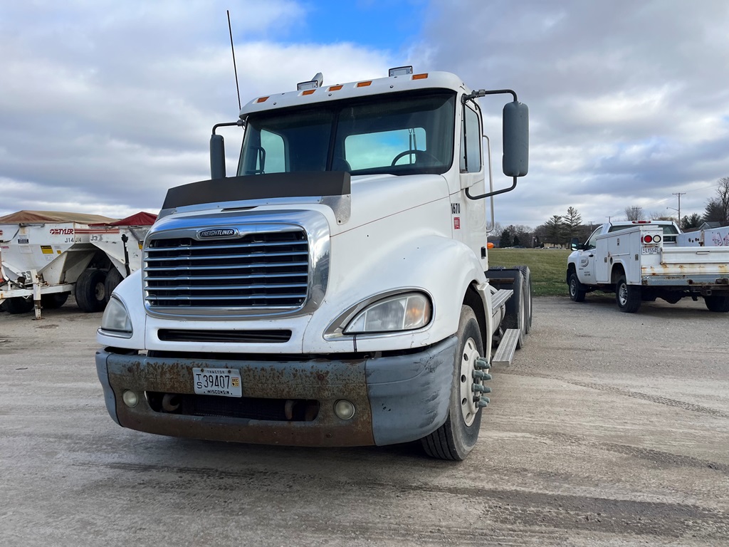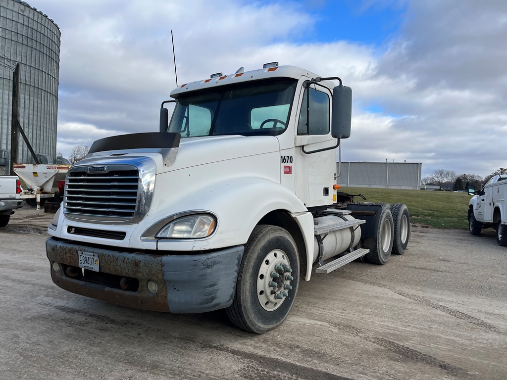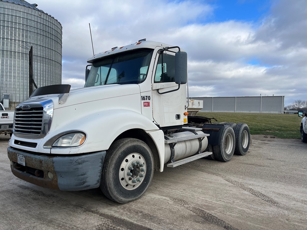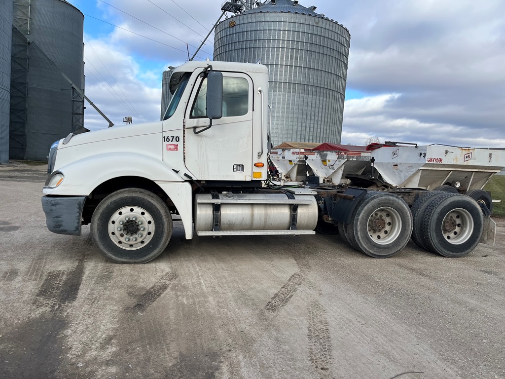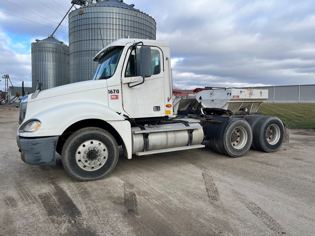 2004 Freightliner Truck (DR3568 Unit 1670), Detroit diesel engine, 10 speed transmission, tandem axle full screw, air ride suspension, air slide 5th wheel plate, day cab, engine brake, air dump valve, heat/air conditioning, 22.5 tires all aluminum wheels, shows 899,146 miles.